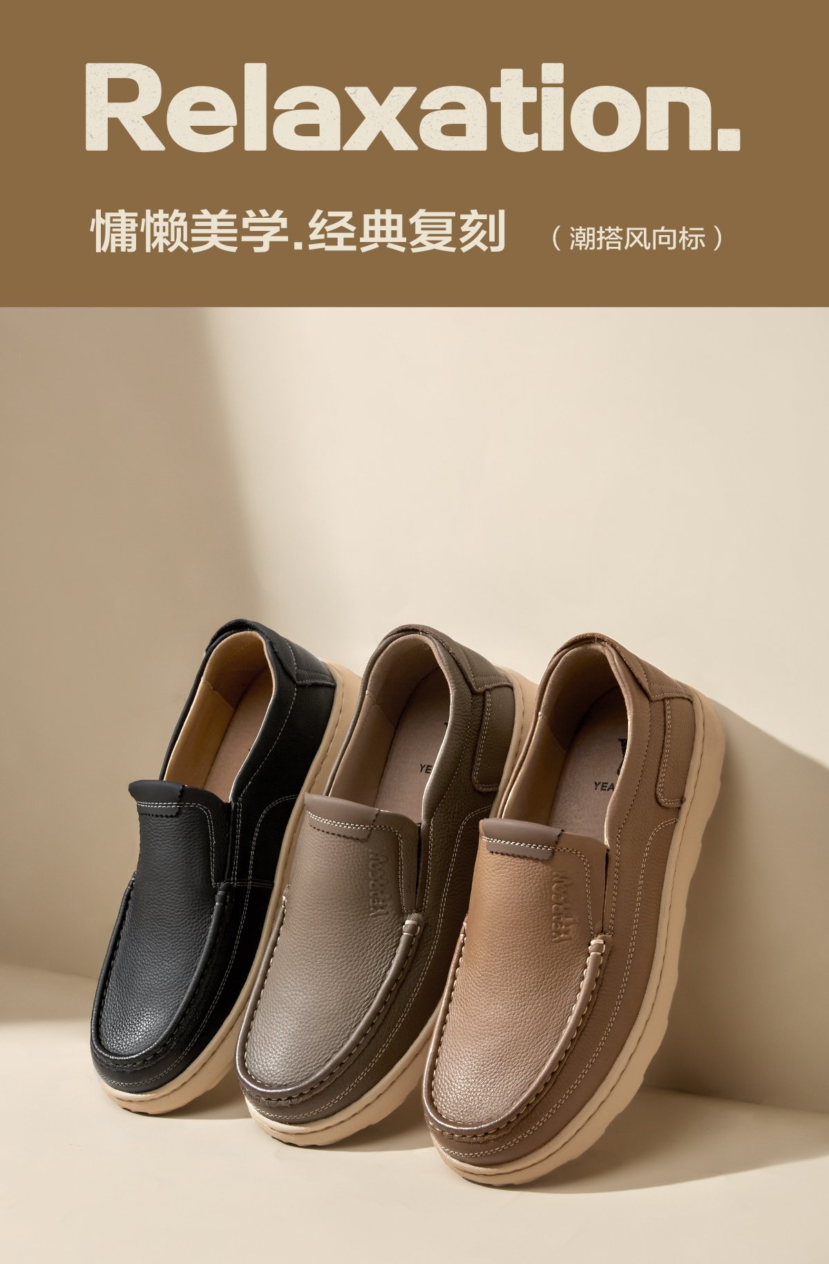 Yierkang Men's Leather Shoes 2025 Autumn New Genuine Leather Casual Loafers Business Slip-On Dad Shoes