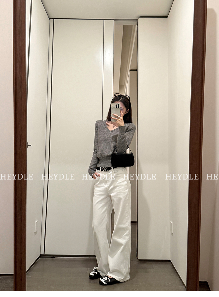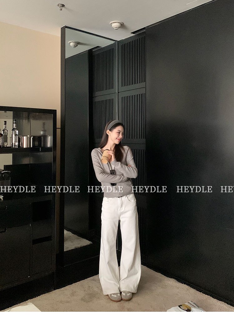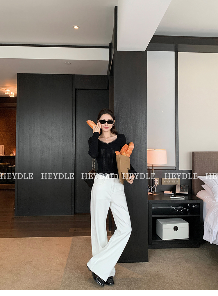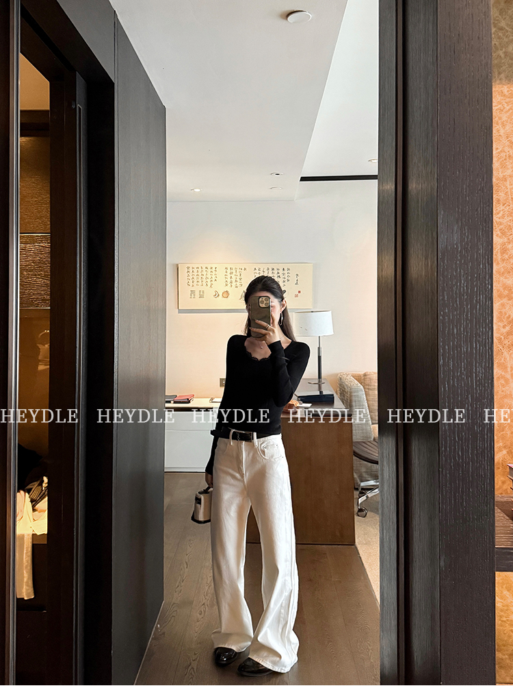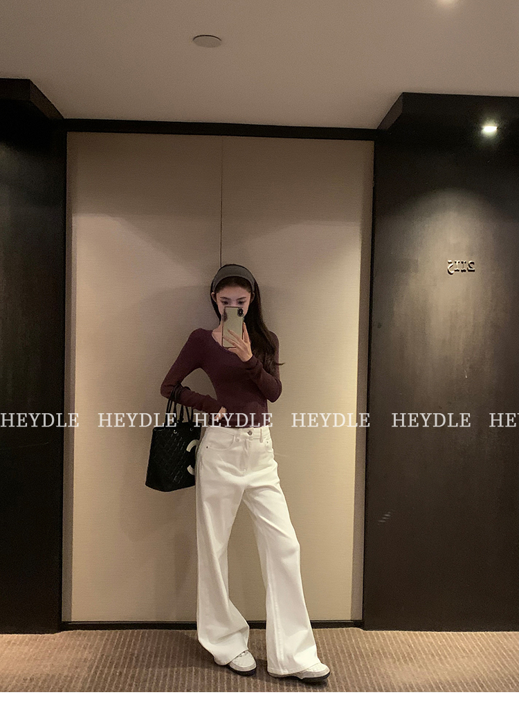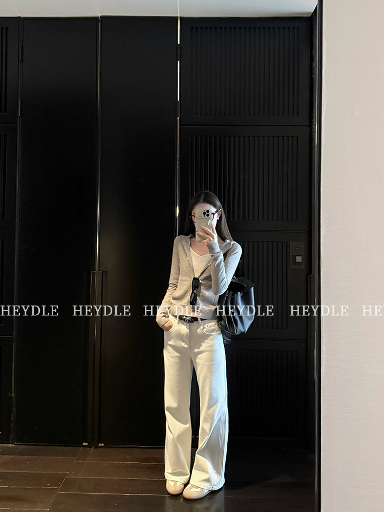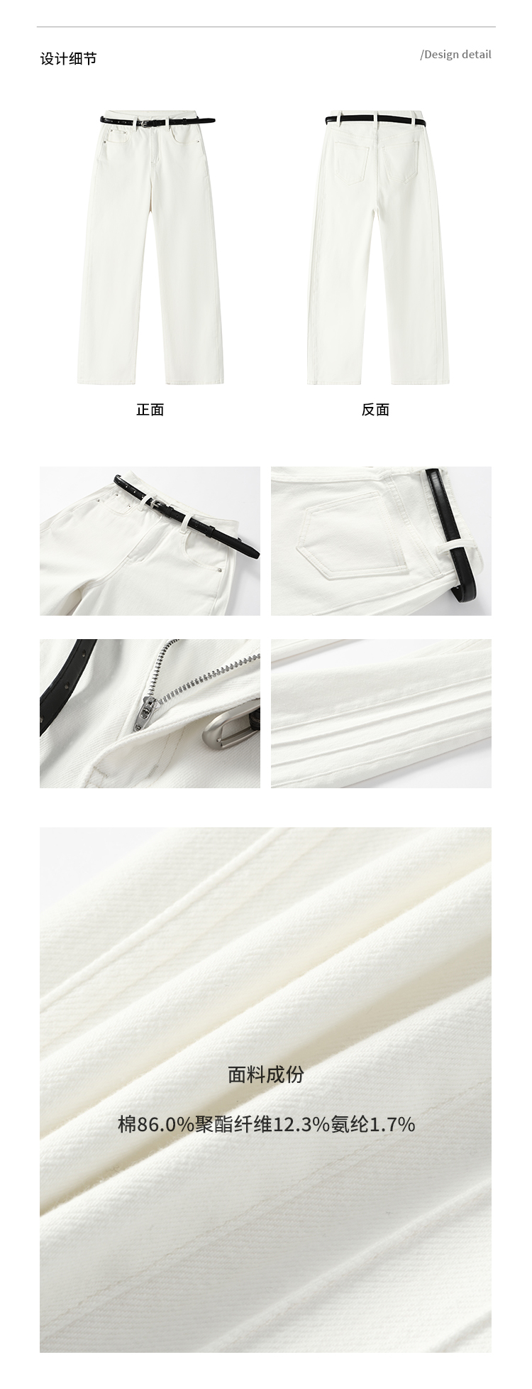 Black Bean Hum Hum Prefers Vibe* Split-Line White Denim Pants for Women, Summer Mid-Waist Straight-Leg Pants, Versatile Wide-Leg Pants