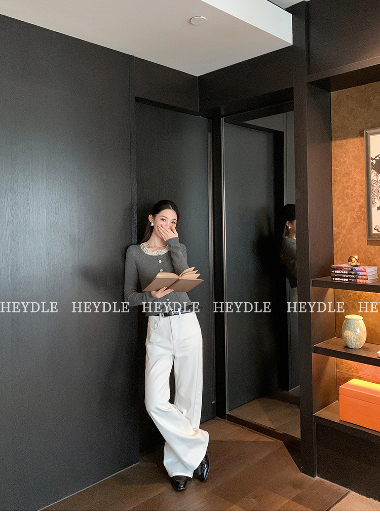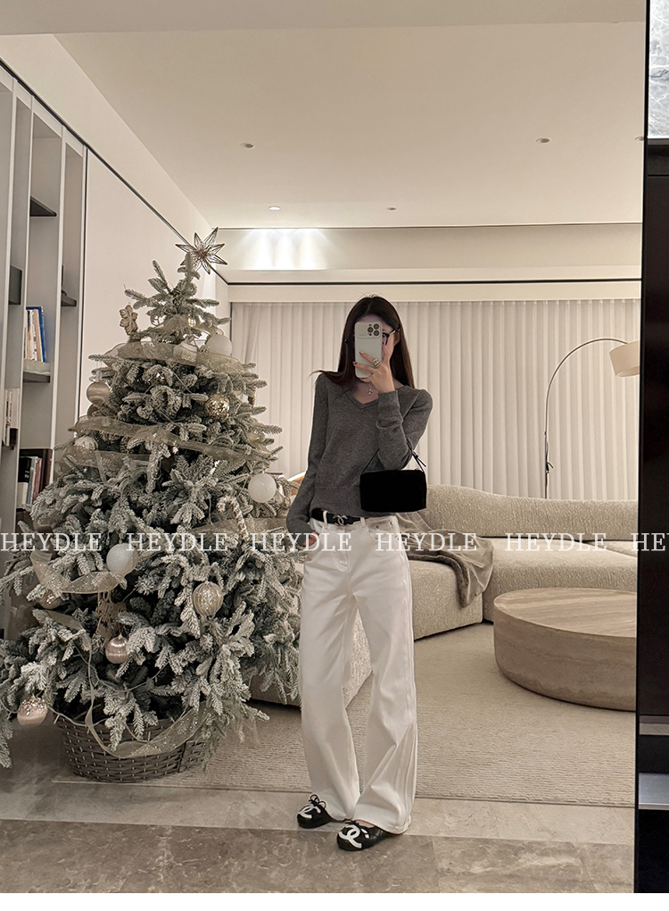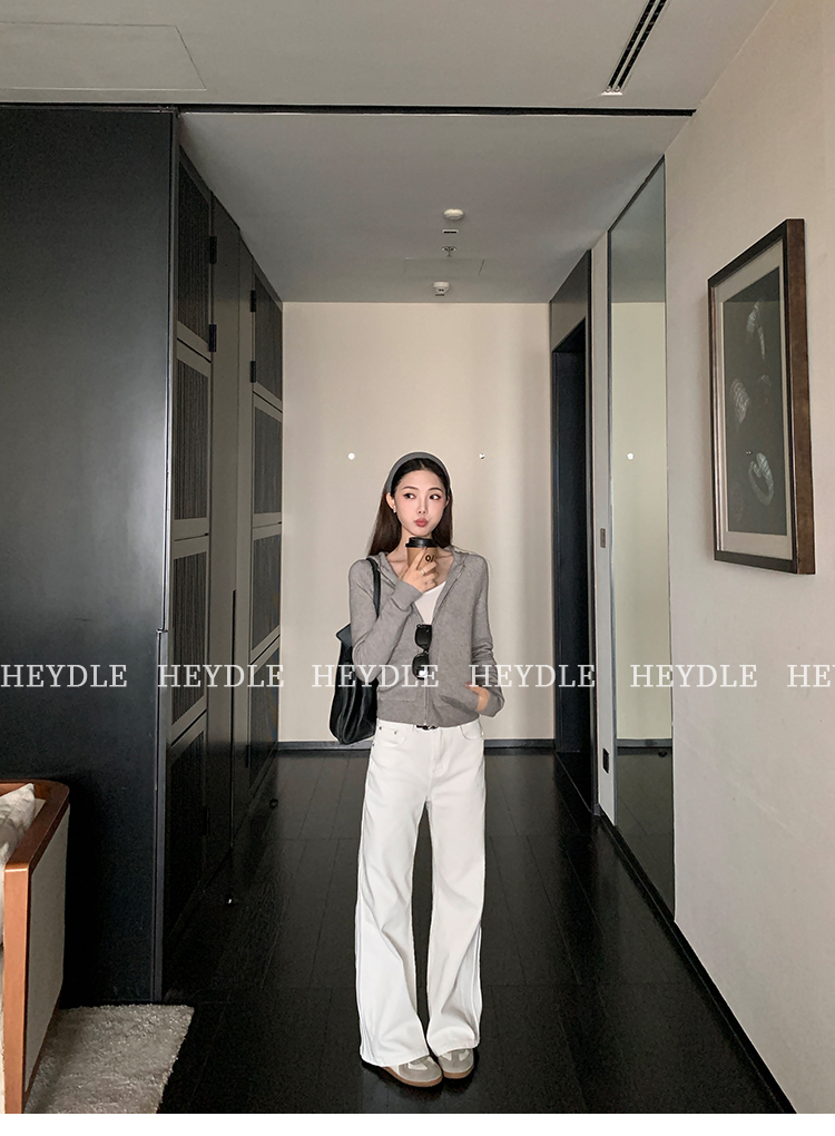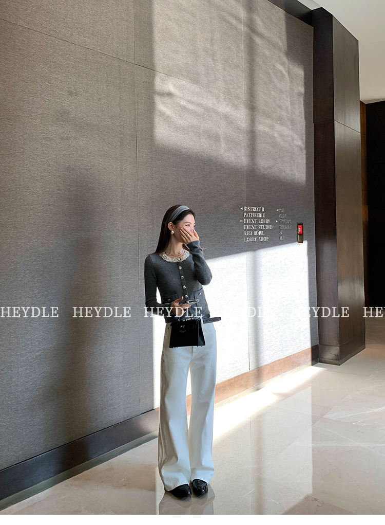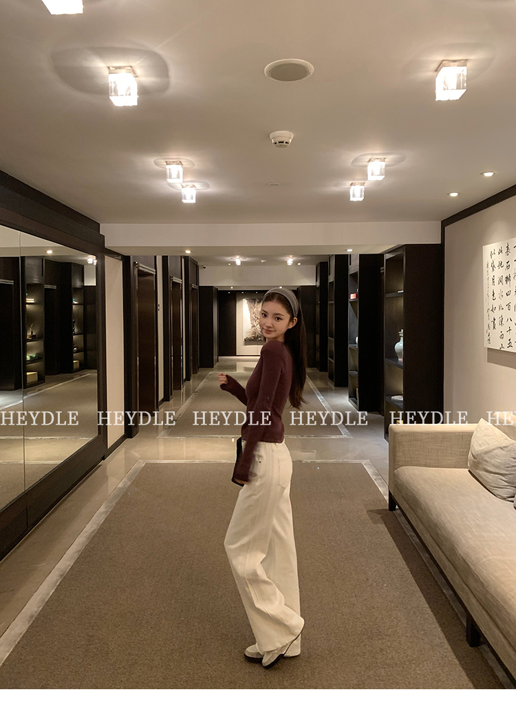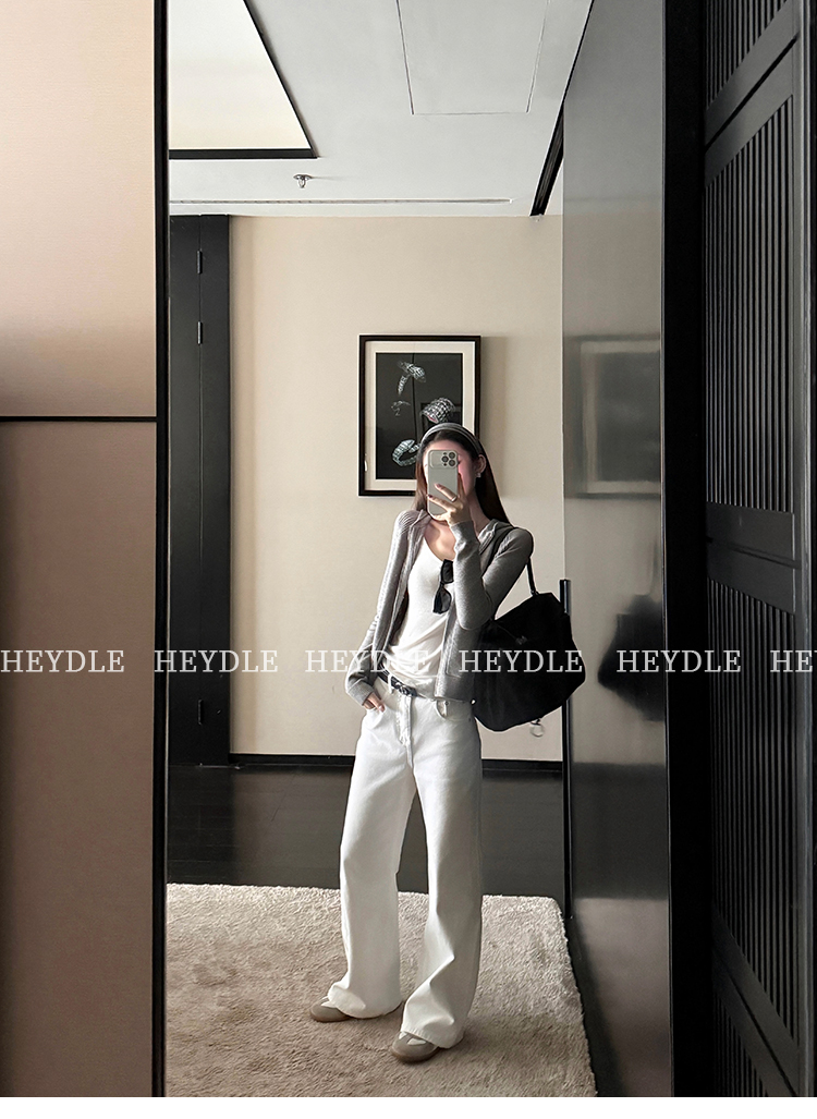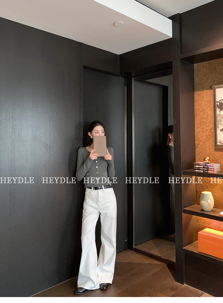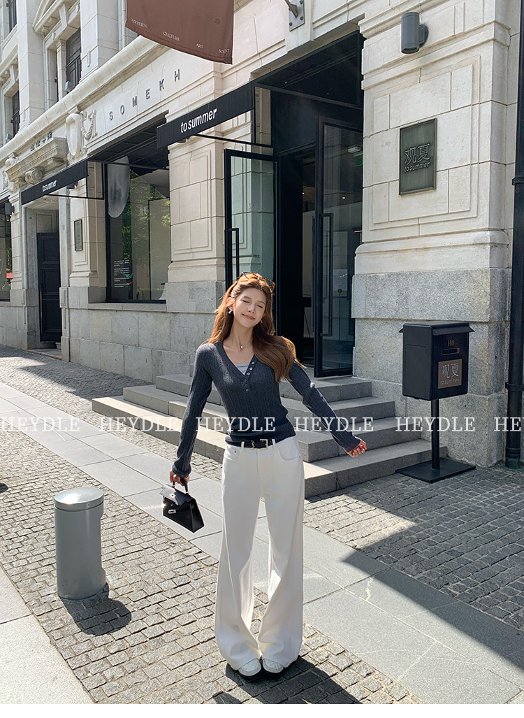 Black Bean Hum Hum Prefers Vibe* Split-Line White Denim Pants for Women, Summer Mid-Waist Straight-Leg Pants, Versatile Wide-Leg Pants