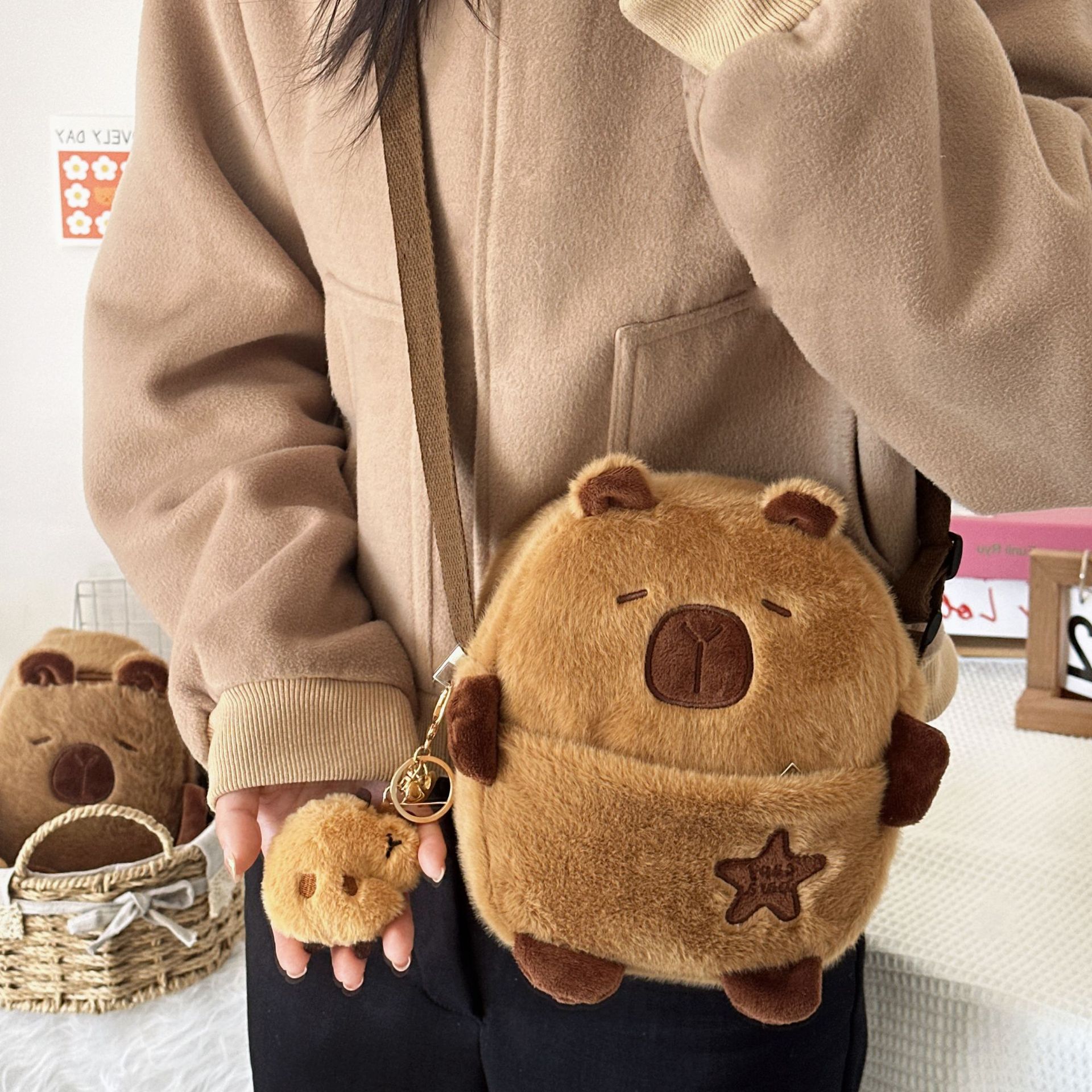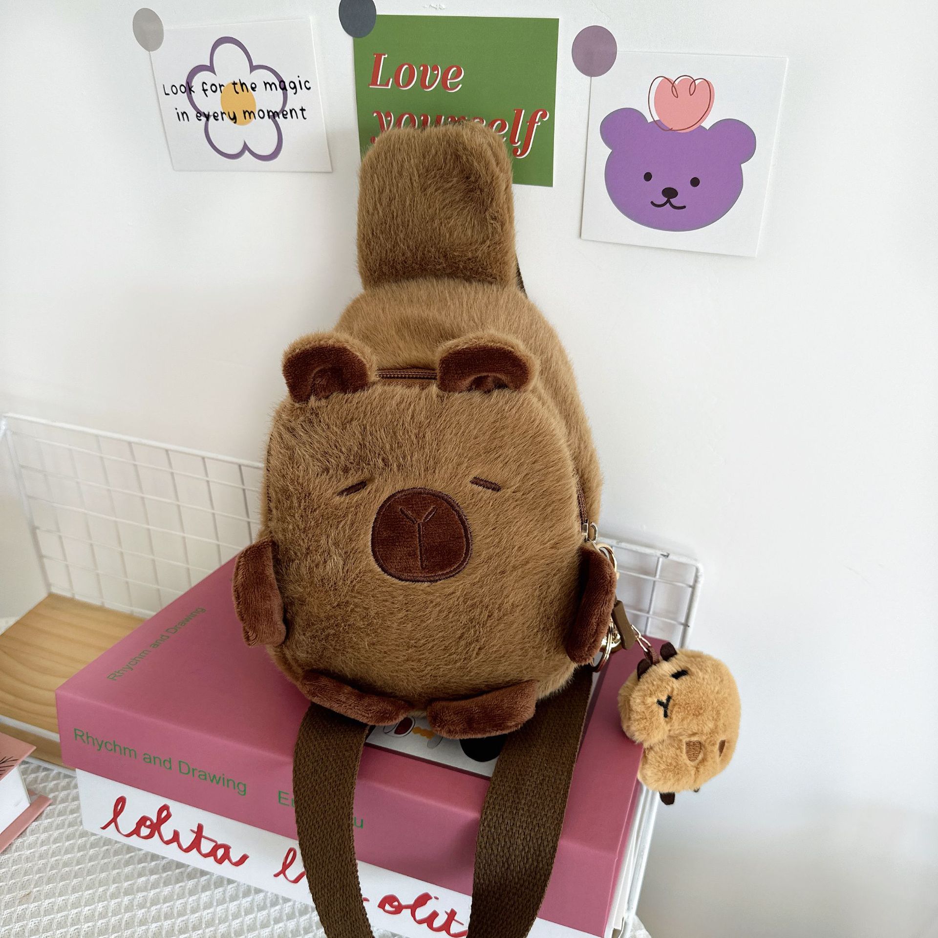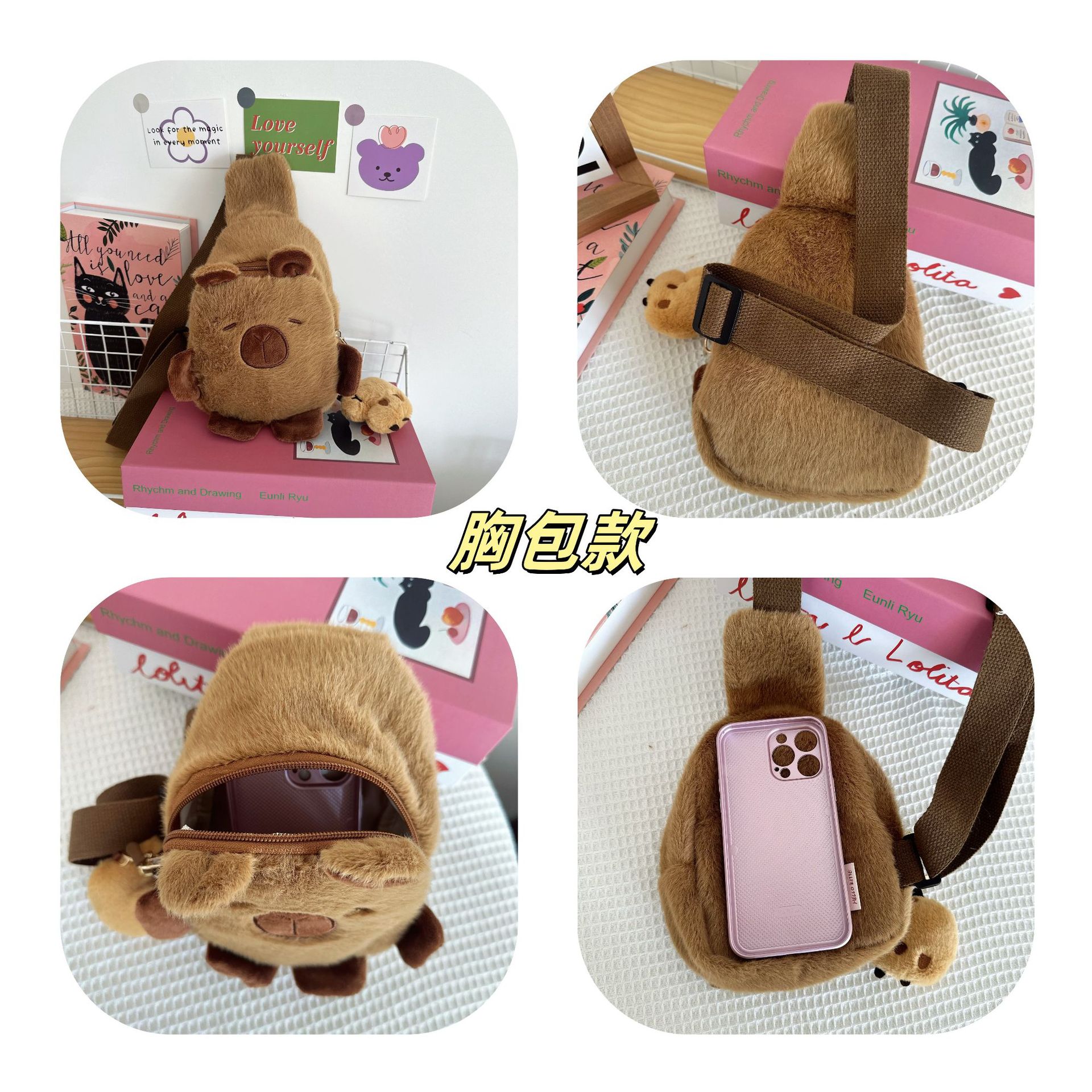 Cute Plush Capybara Small Crossbody Bag Cartoon Adorable Capybara Storage Phone Bag Girl Crossbody Small Chest Bag