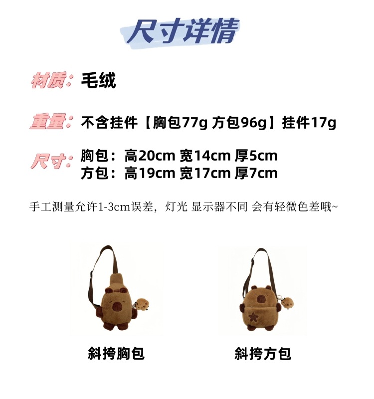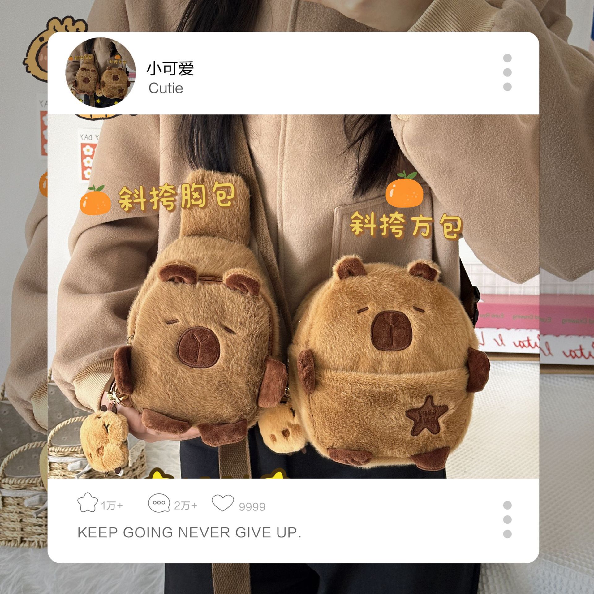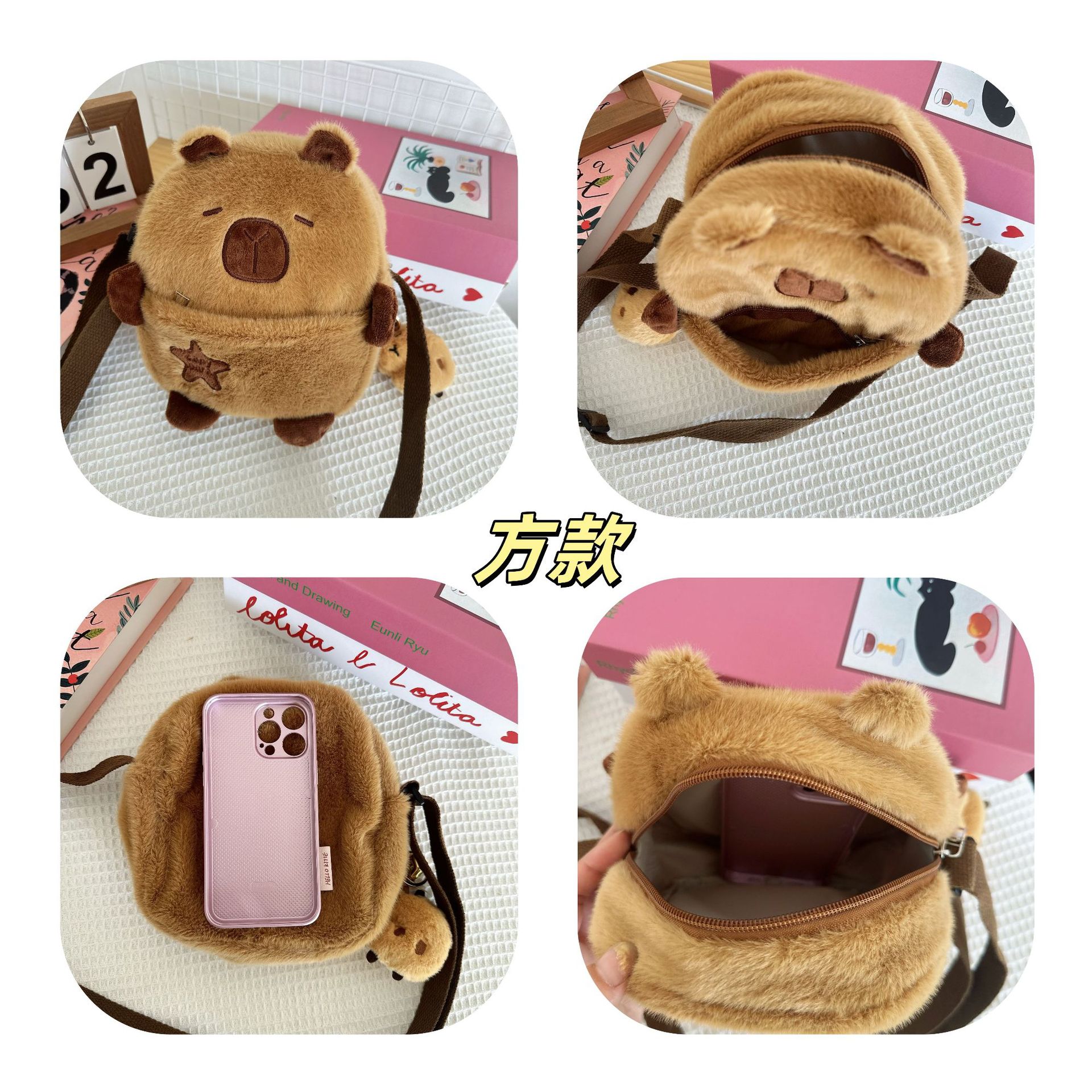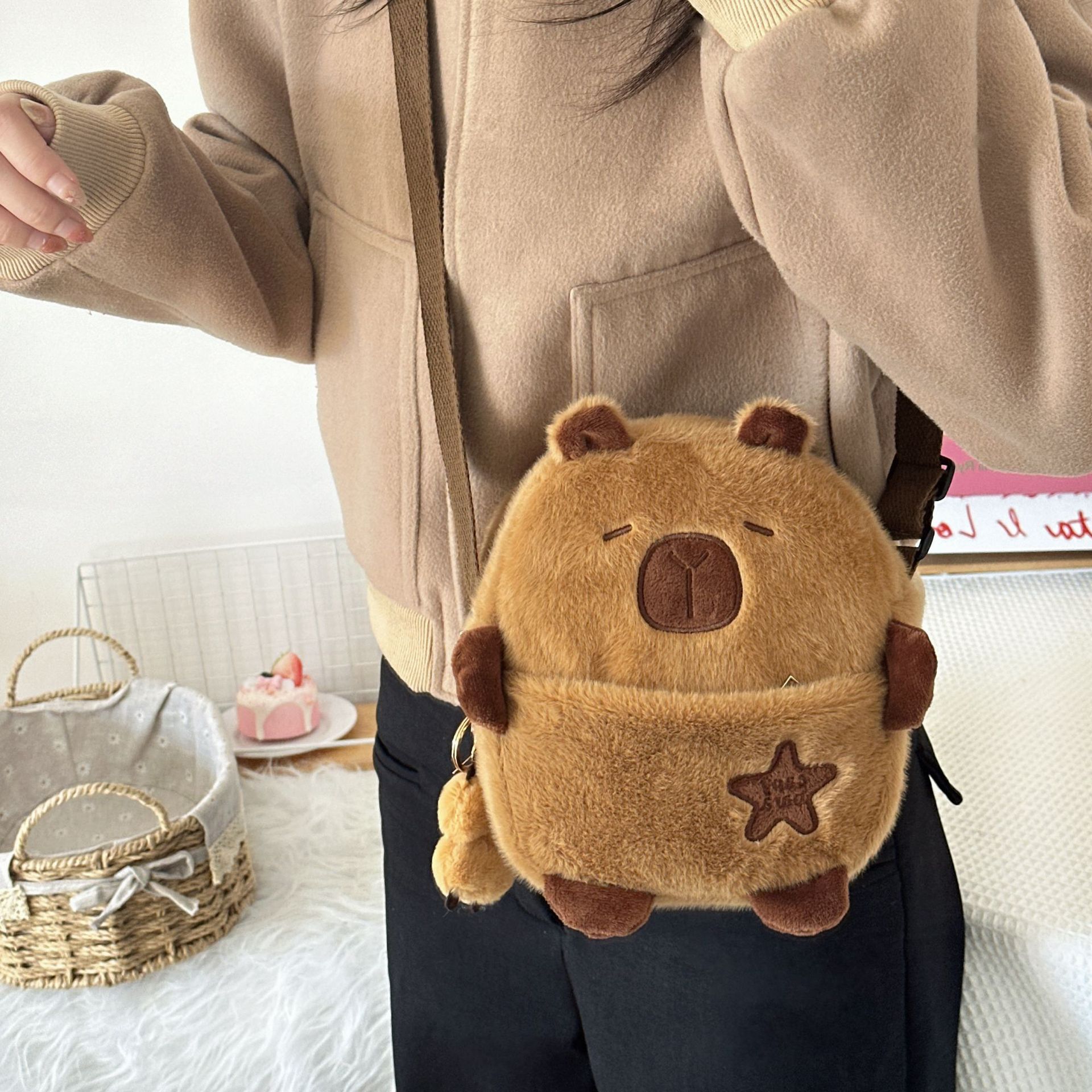 Cute Plush Capybara Small Crossbody Bag Cartoon Adorable Capybara Storage Phone Bag Girl Crossbody Small Chest Bag