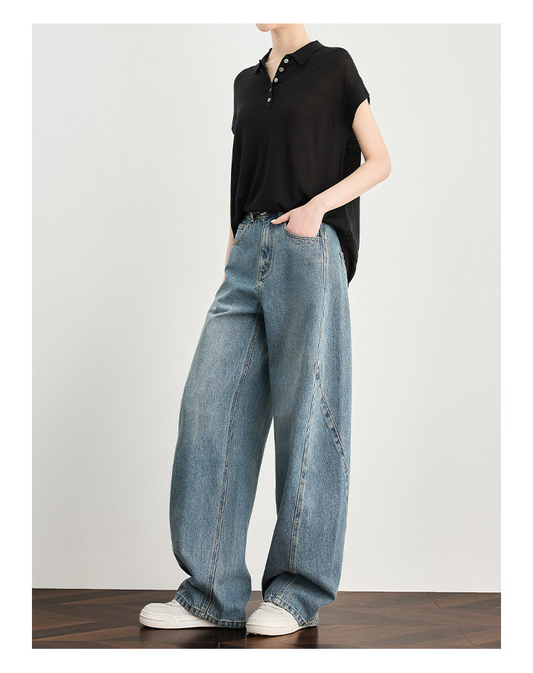 Faesslin【Pear-Shaped Savior】Scimitar Jeans for Women, Spring and Autumn, Extra Long, Loose, Casual Wide-Leg Pants, Scythe Pants