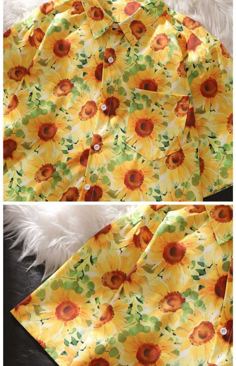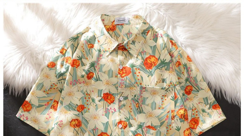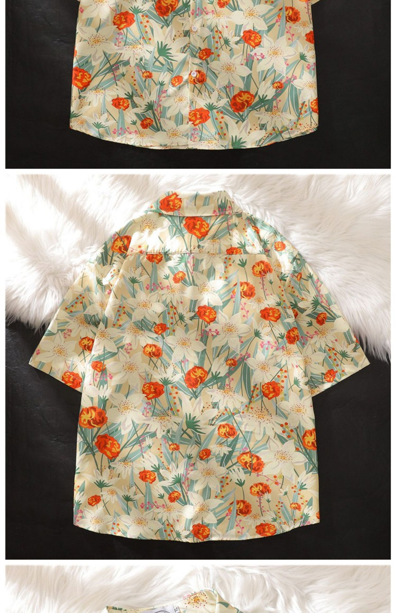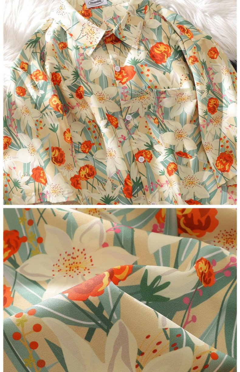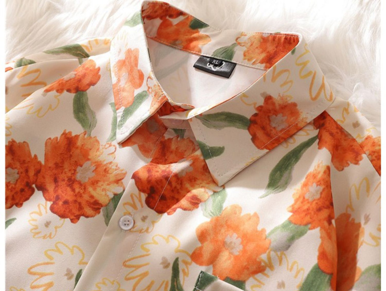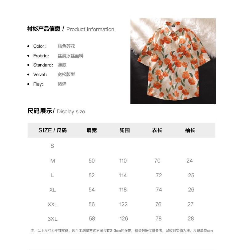 Dopamine Style Summer Orange Floral Ice Silk Shirt Men's Short-Sleeved Shorts High-End Cool Beach Outfit