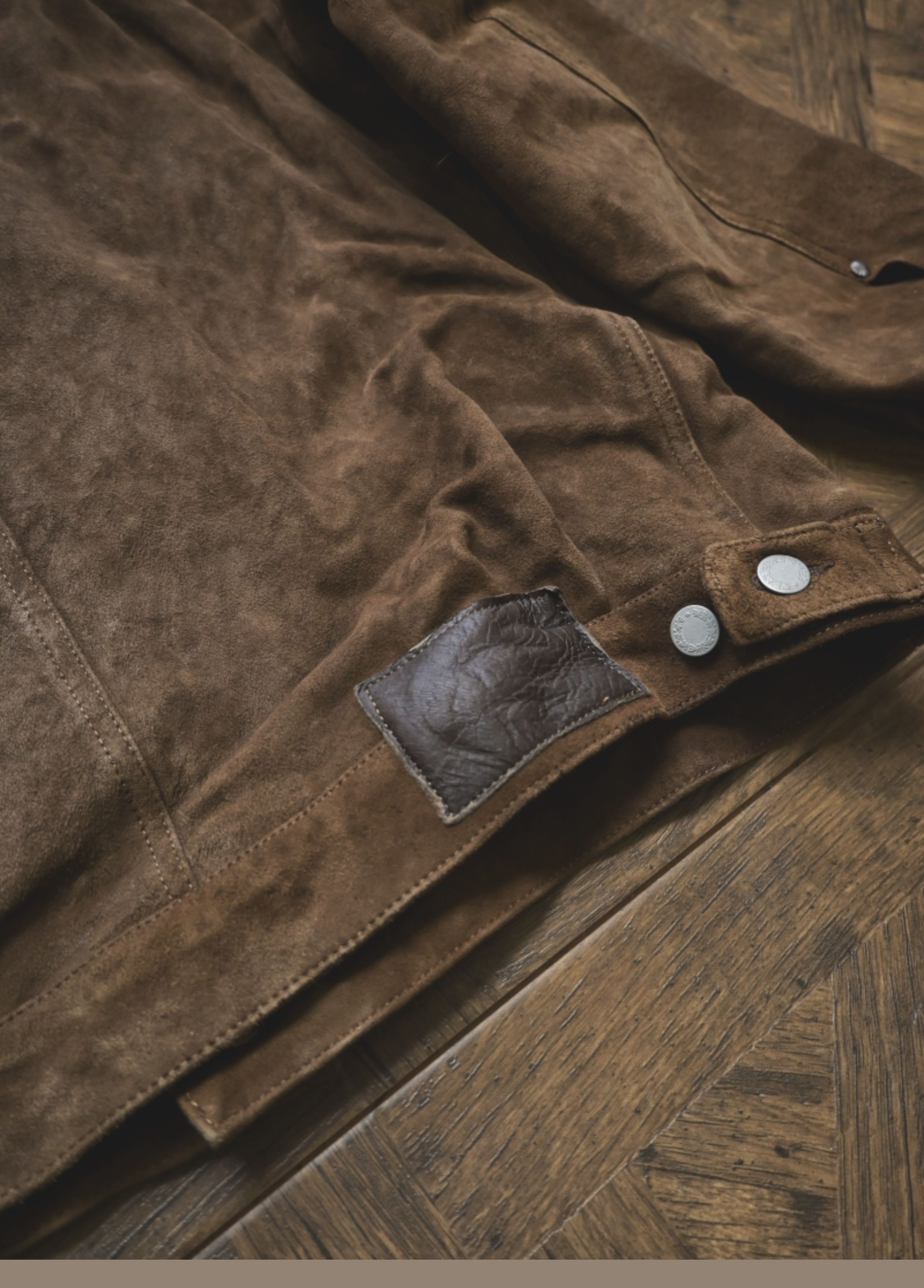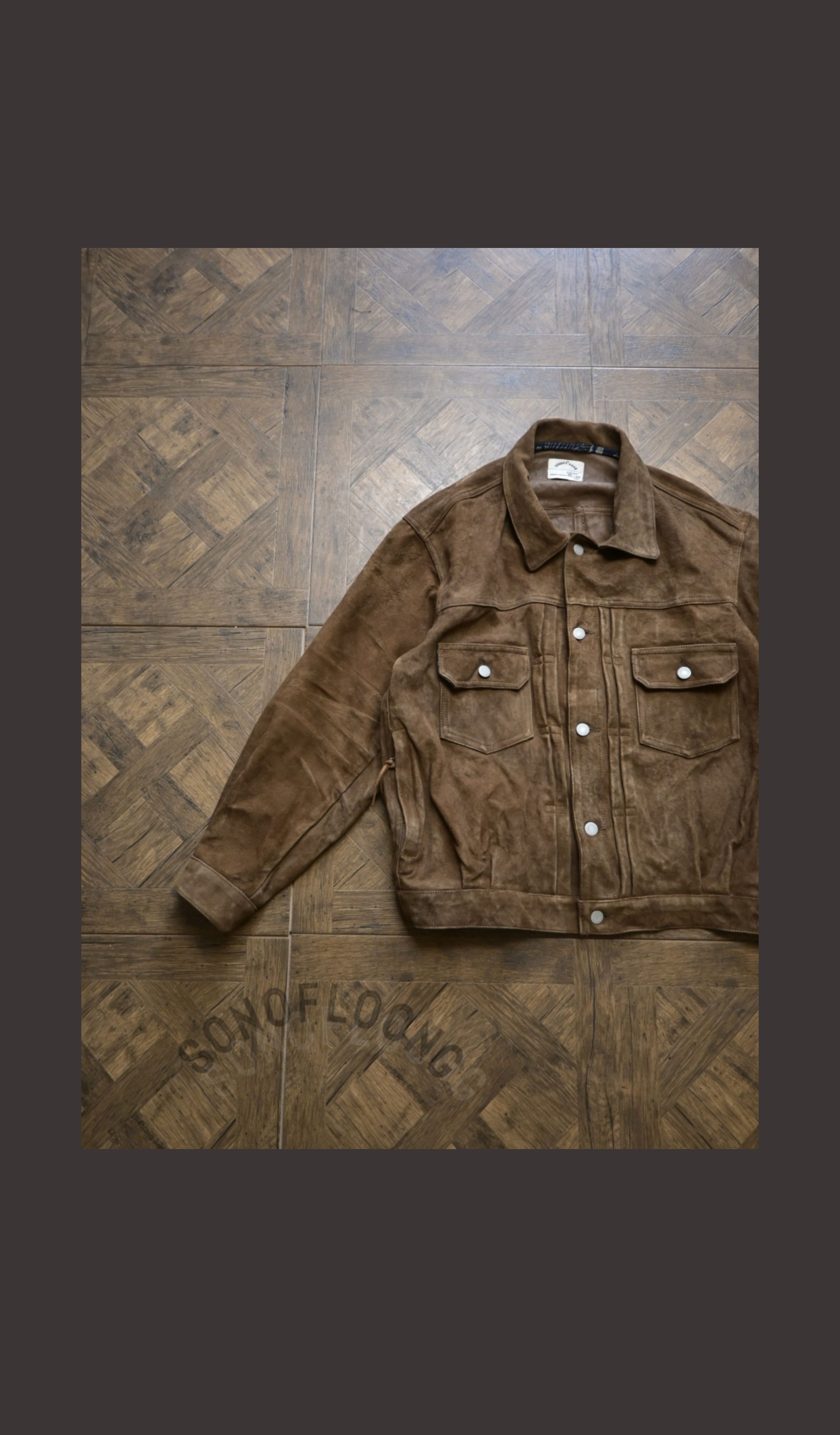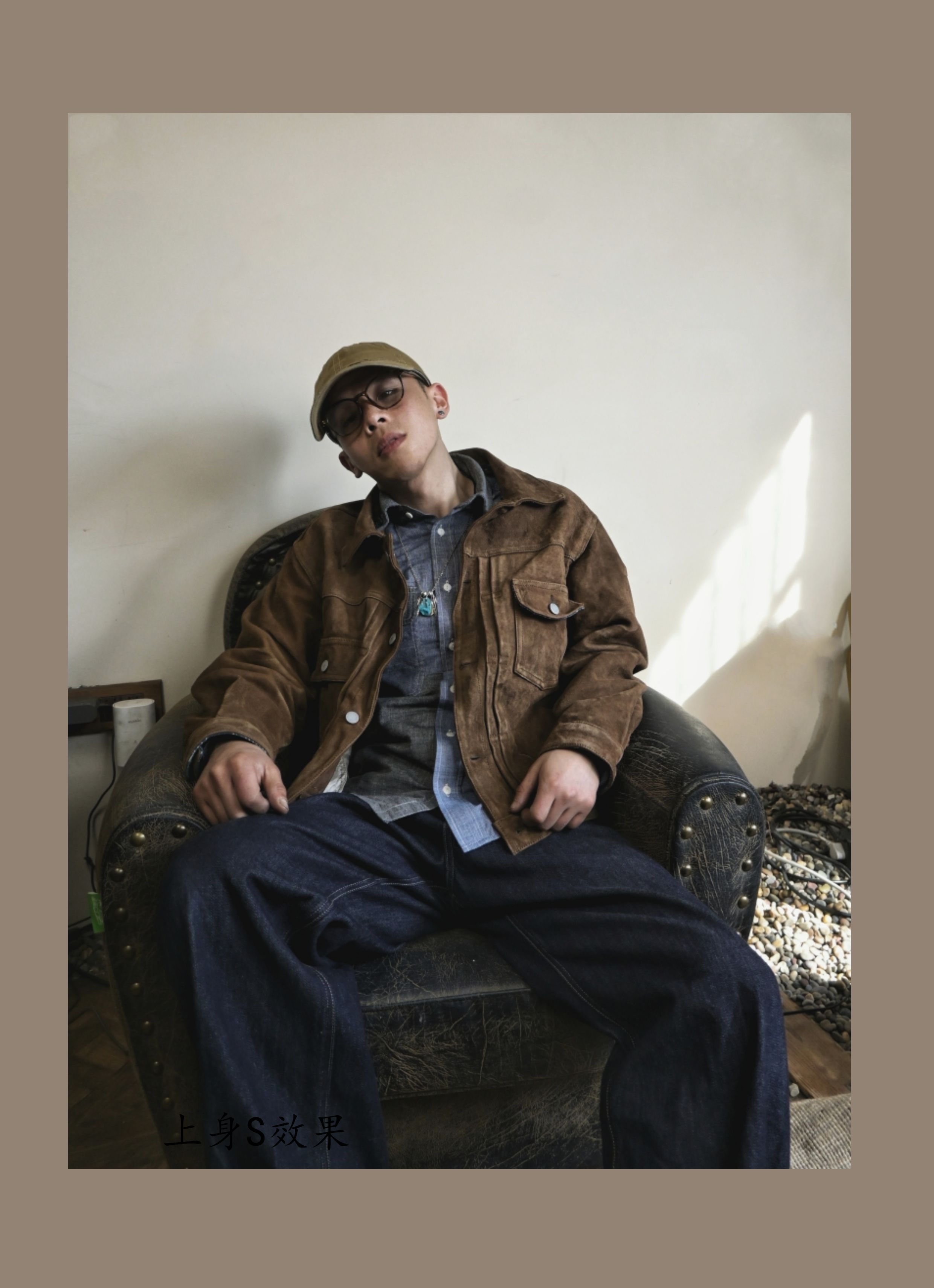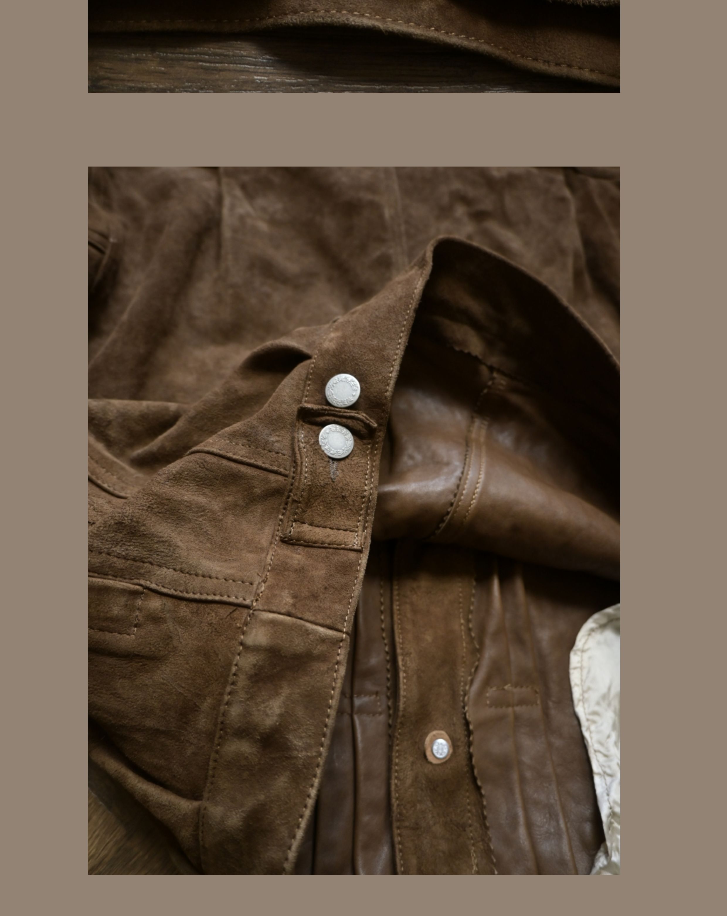 Sonofloong Vintage Washed Distressed Goatskin Leather Jacket, First Layer Loose Suede Leather Jacket 101Jkt American Style Trendy