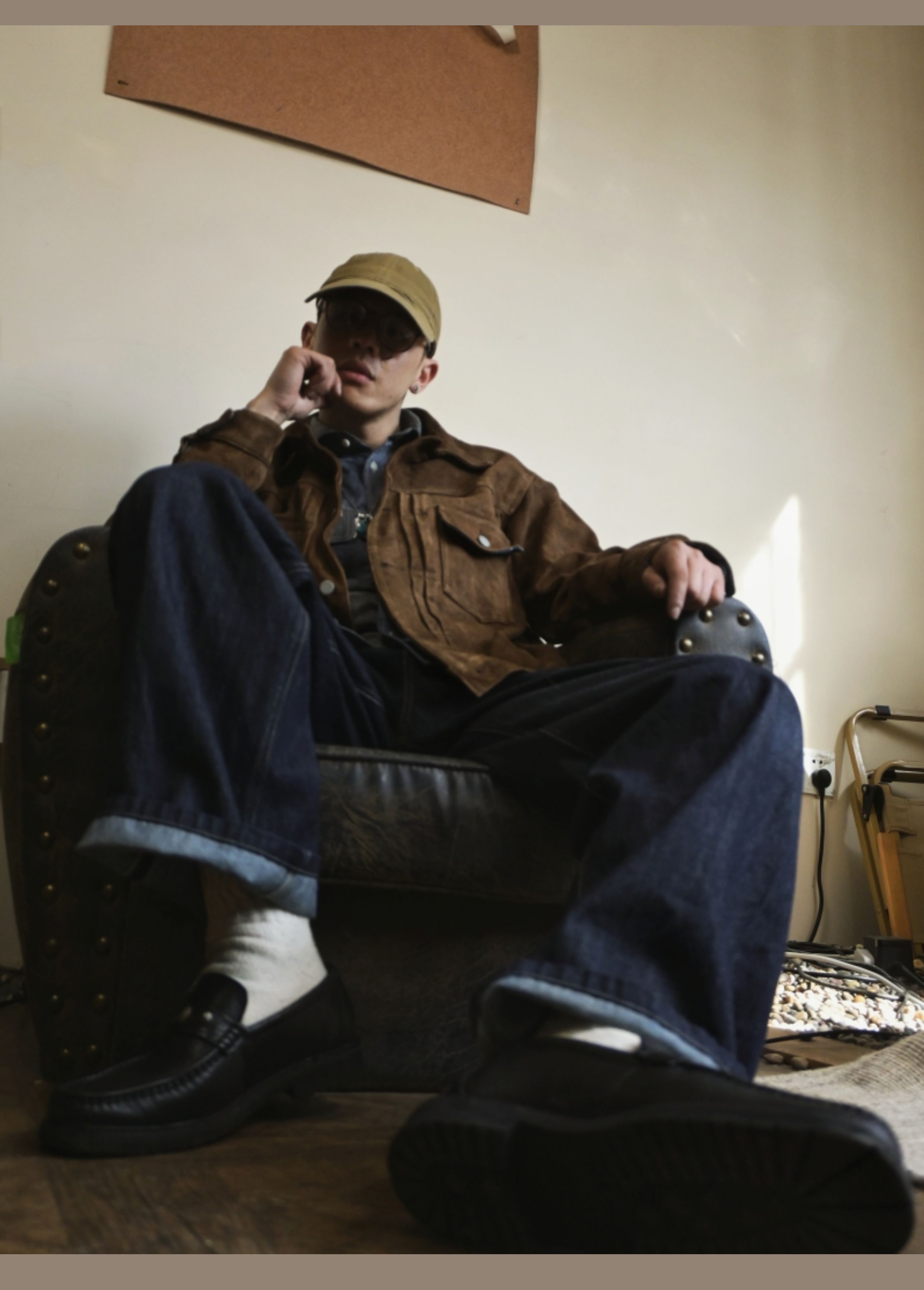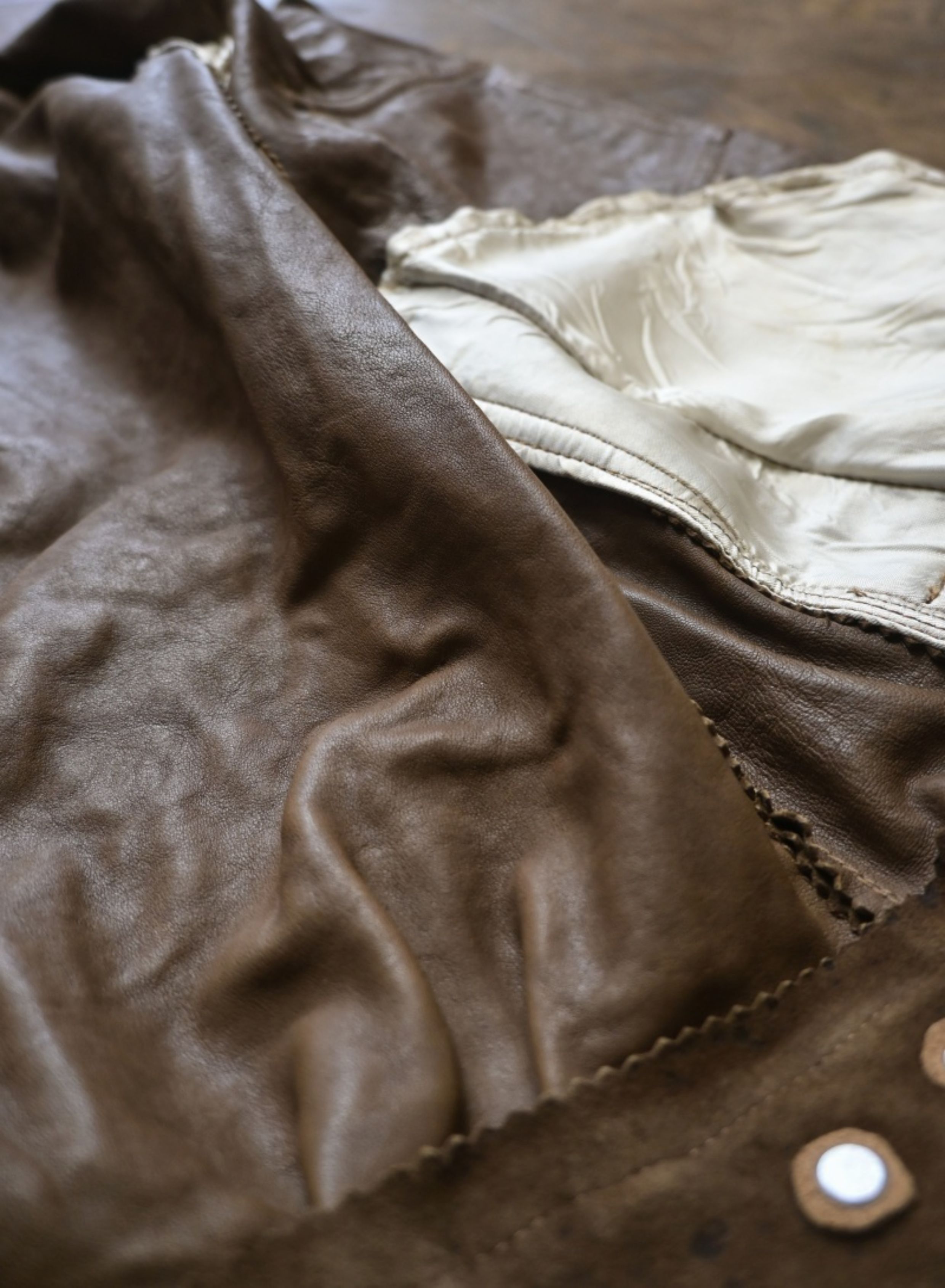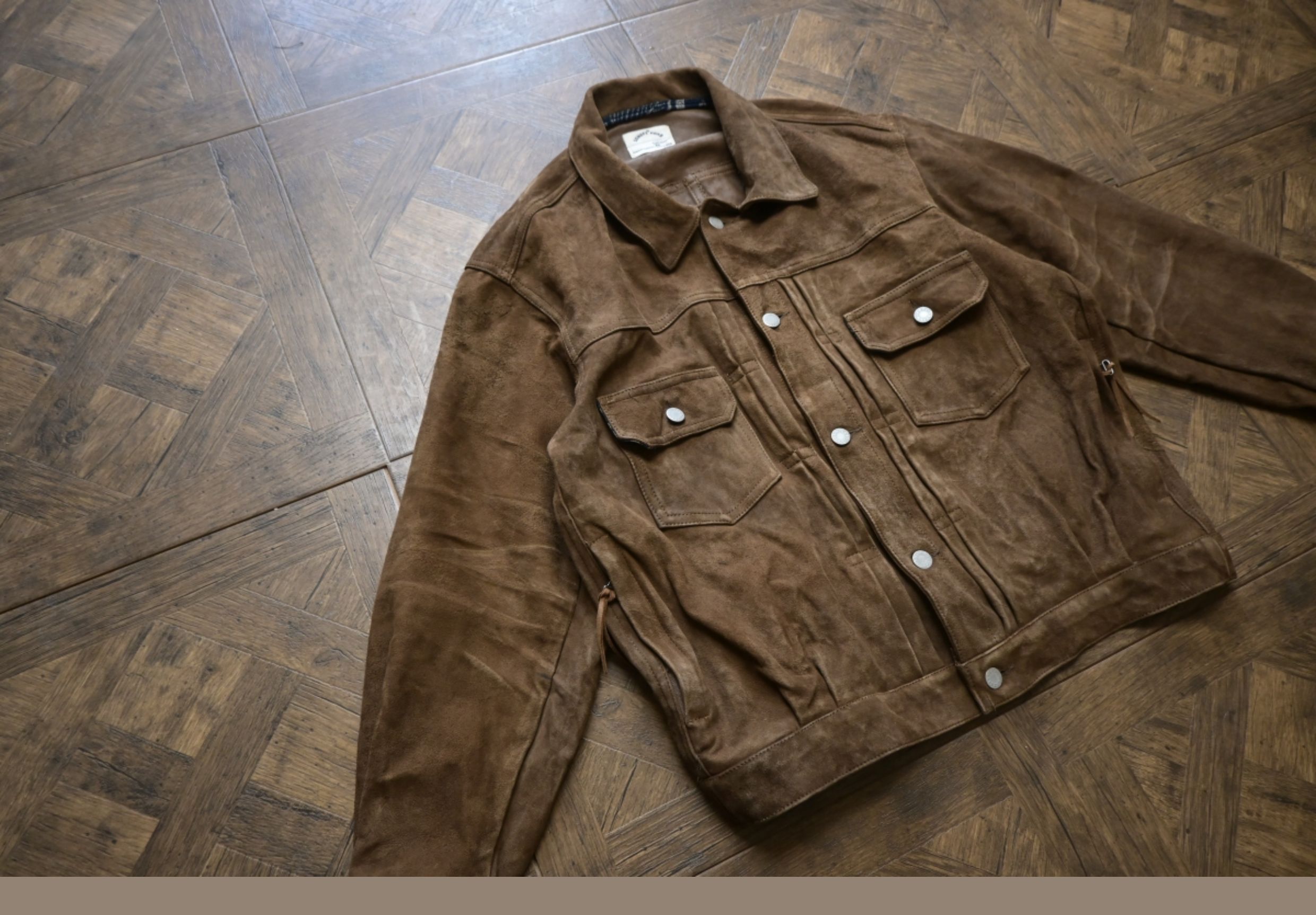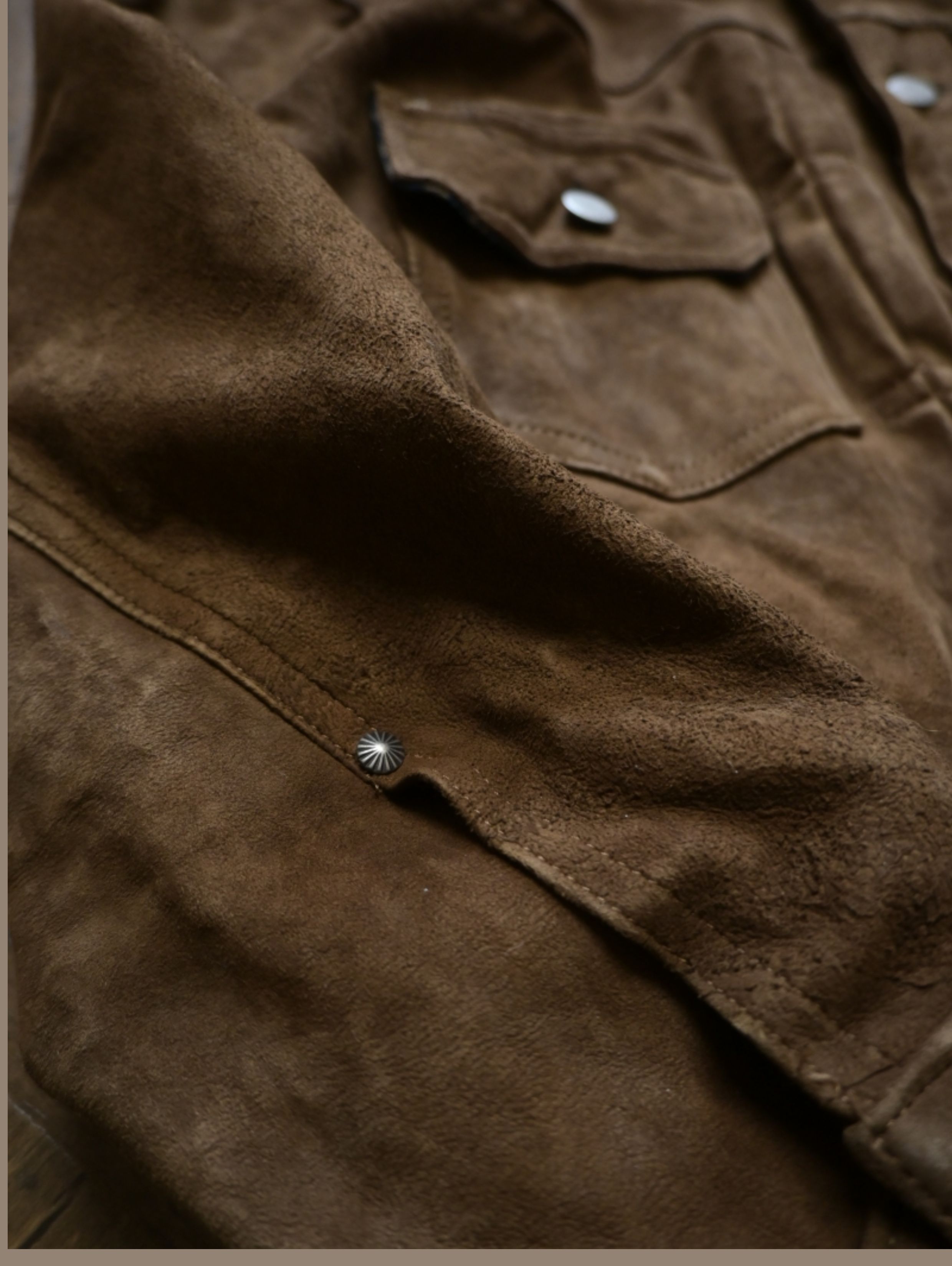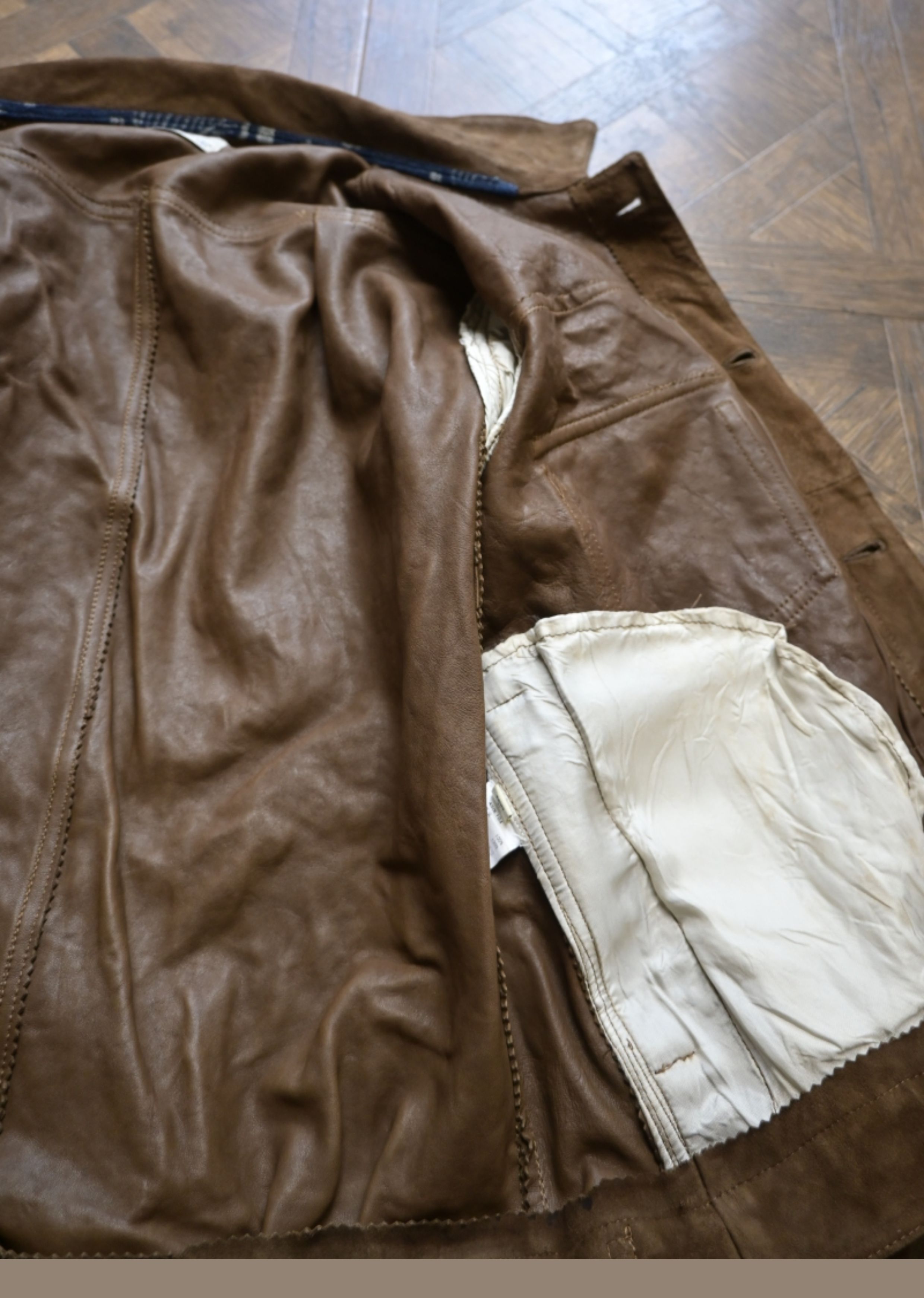 Sonofloong Vintage Washed Distressed Goatskin Leather Jacket, First Layer Loose Suede Leather Jacket 101Jkt American Style Trendy