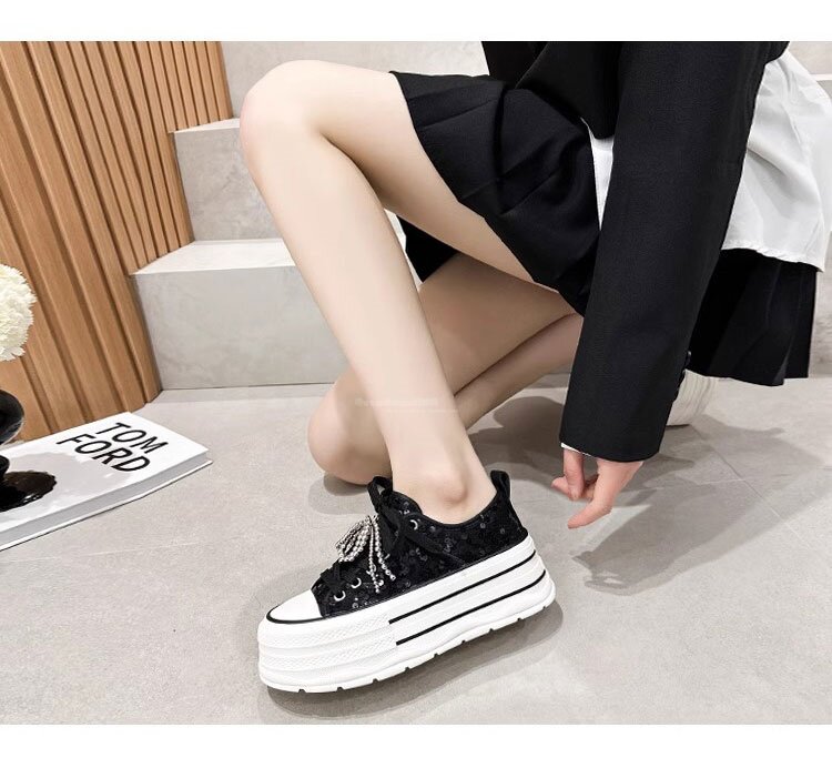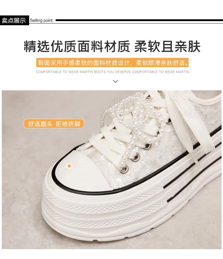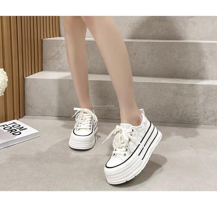 Hong Kong Versatile Breathable Platform Thick-Soled Canvas Shoes for Women 2026 Spring and Autumn New Style Height-Increasing Casual White Shoes for Petite Individuals