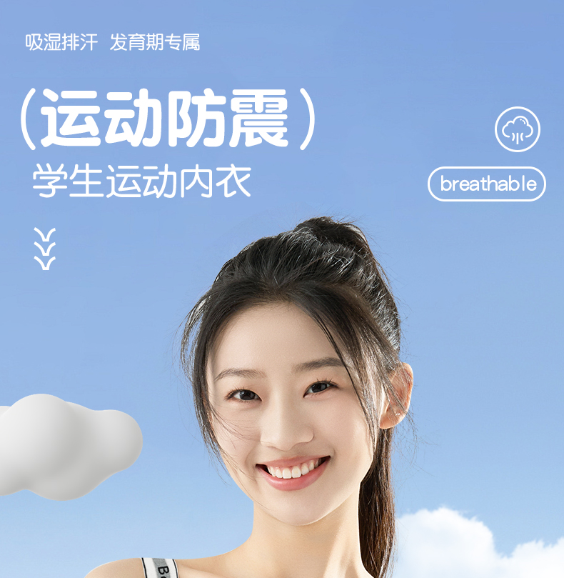 Girls' Intimates Bra for the Second and Third Stages of Development, High School Students, Junior High School Students, Girls, Thin Shock-Proof Sports Vest