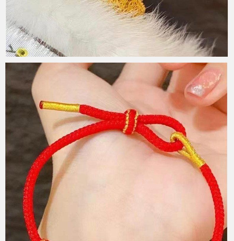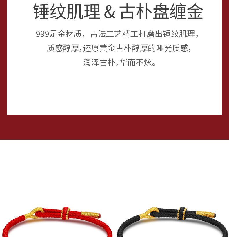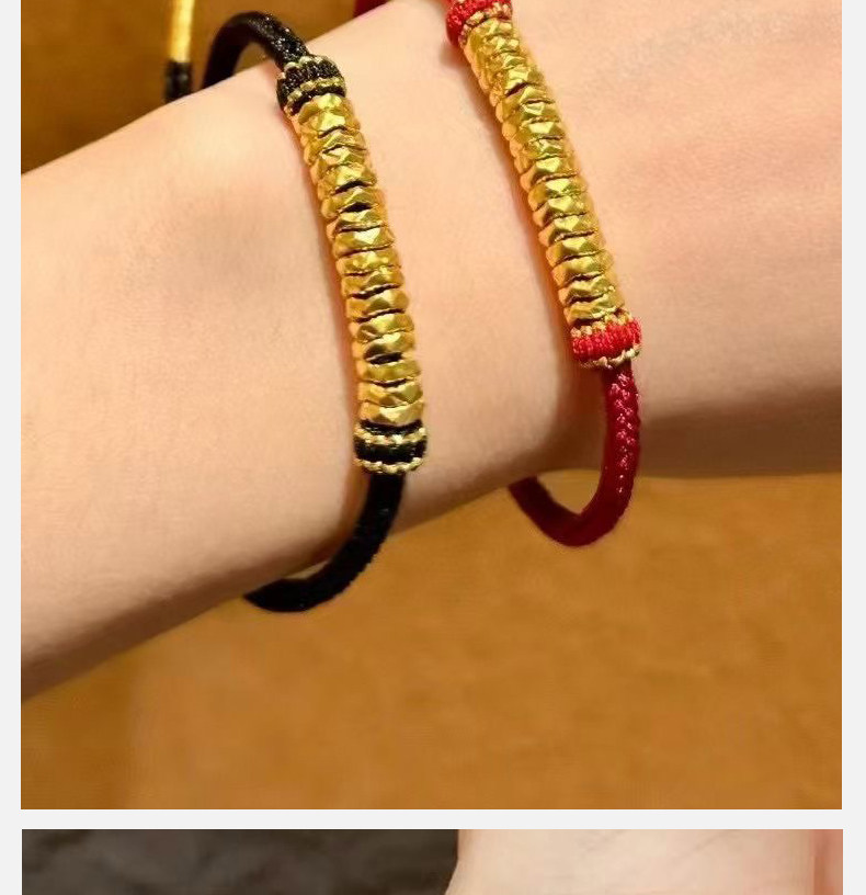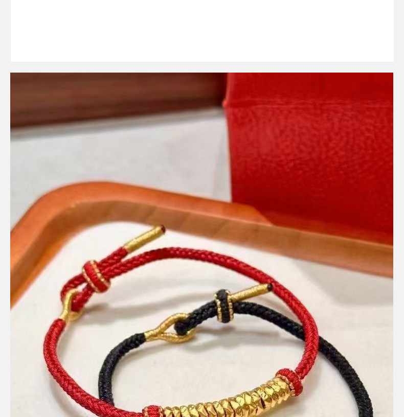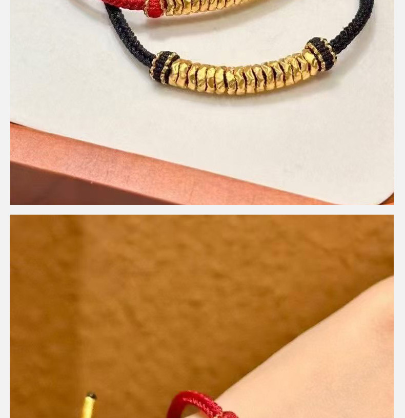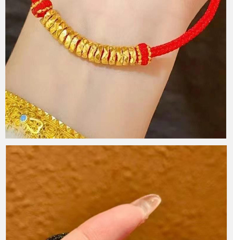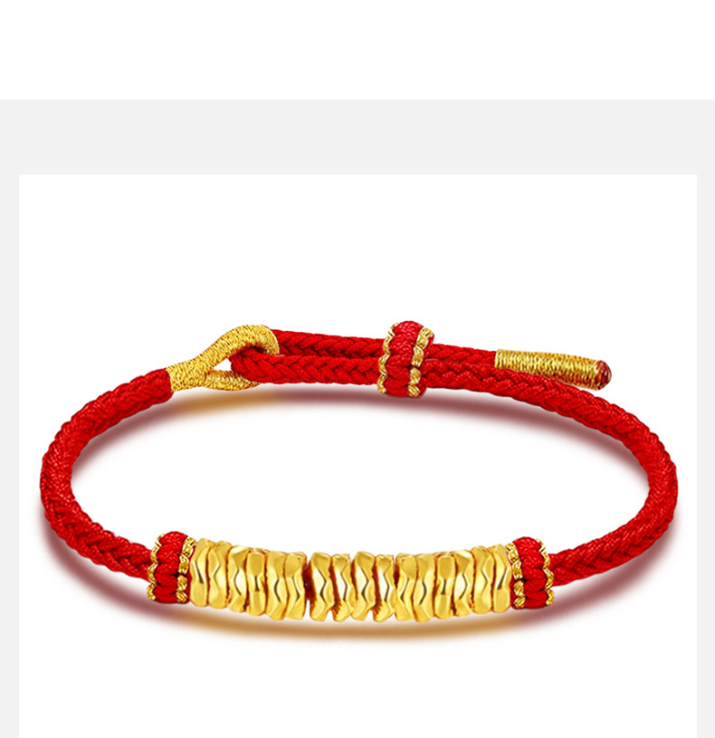 Gold Coiled Bracelet with Pure 999 Gold Fortune Beads and Crushed Gold Pieces, Red String Bracelet for Couples' Zodiac Year, Gift for Boyfriend or Girlfriend
