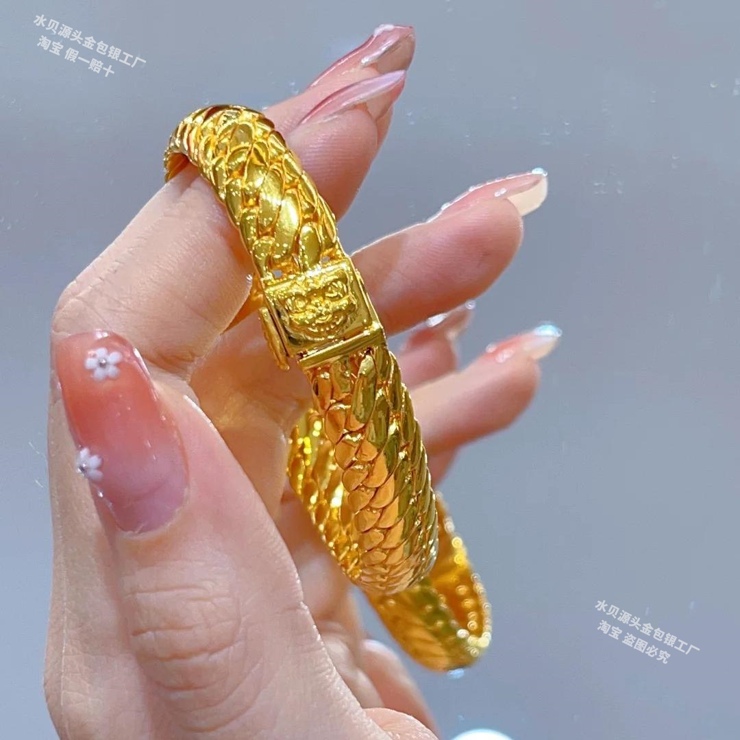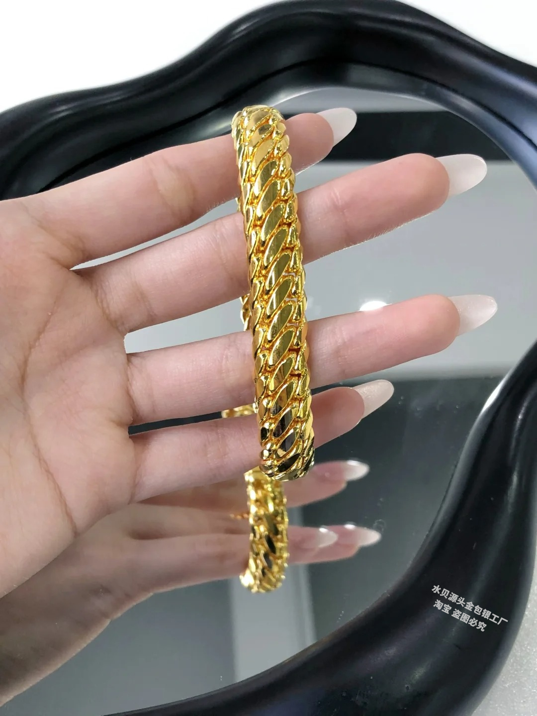 Popular Three-Horsewhip Bracelet for Men, Gold Cuban Boss Bracelet, Gold-Plated Silver, Large, Thick, Bold Bracelet, Gift for Boyfriend
