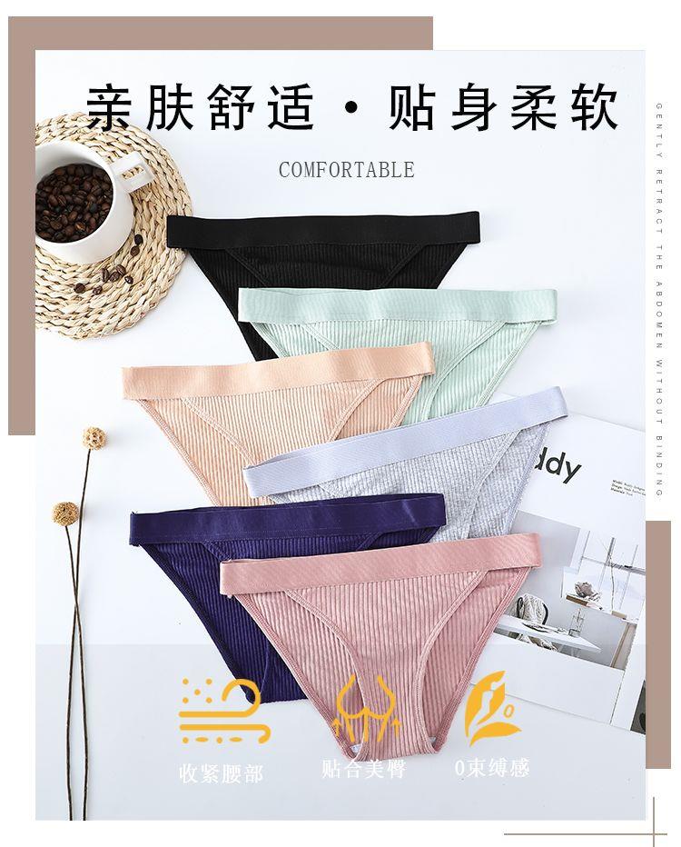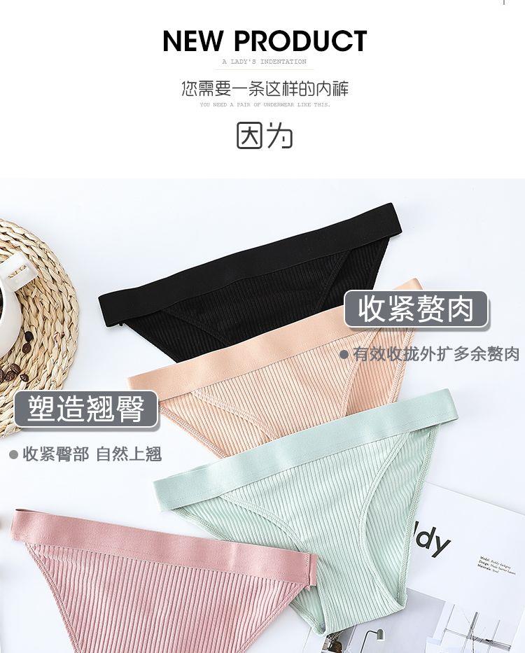 Threaded Cotton Underwear, Feminine and Charming, Pure Cotton Crotch, Korean Style, Girls and Students, Large Size, Low-Waist Women's Briefs
