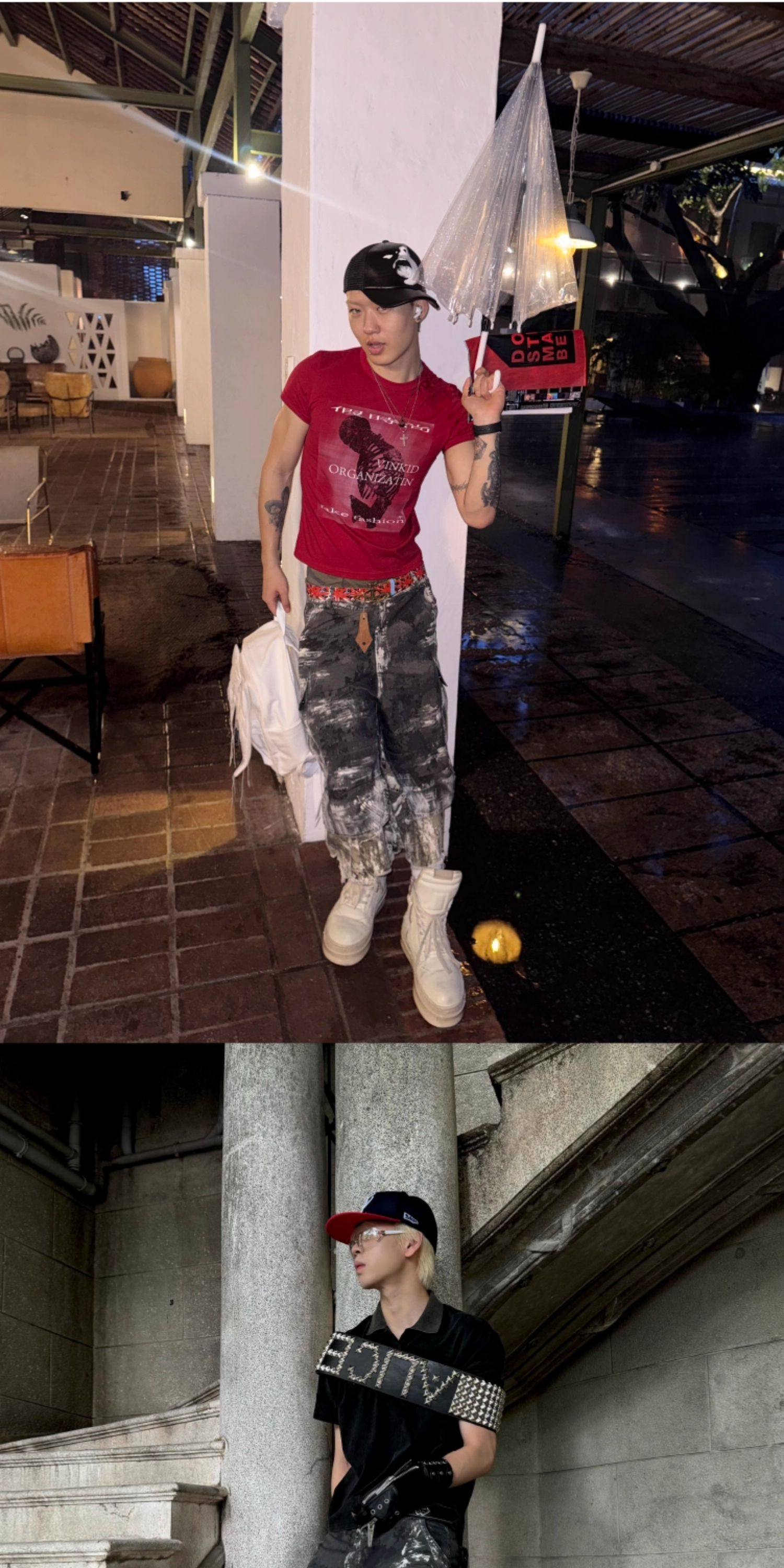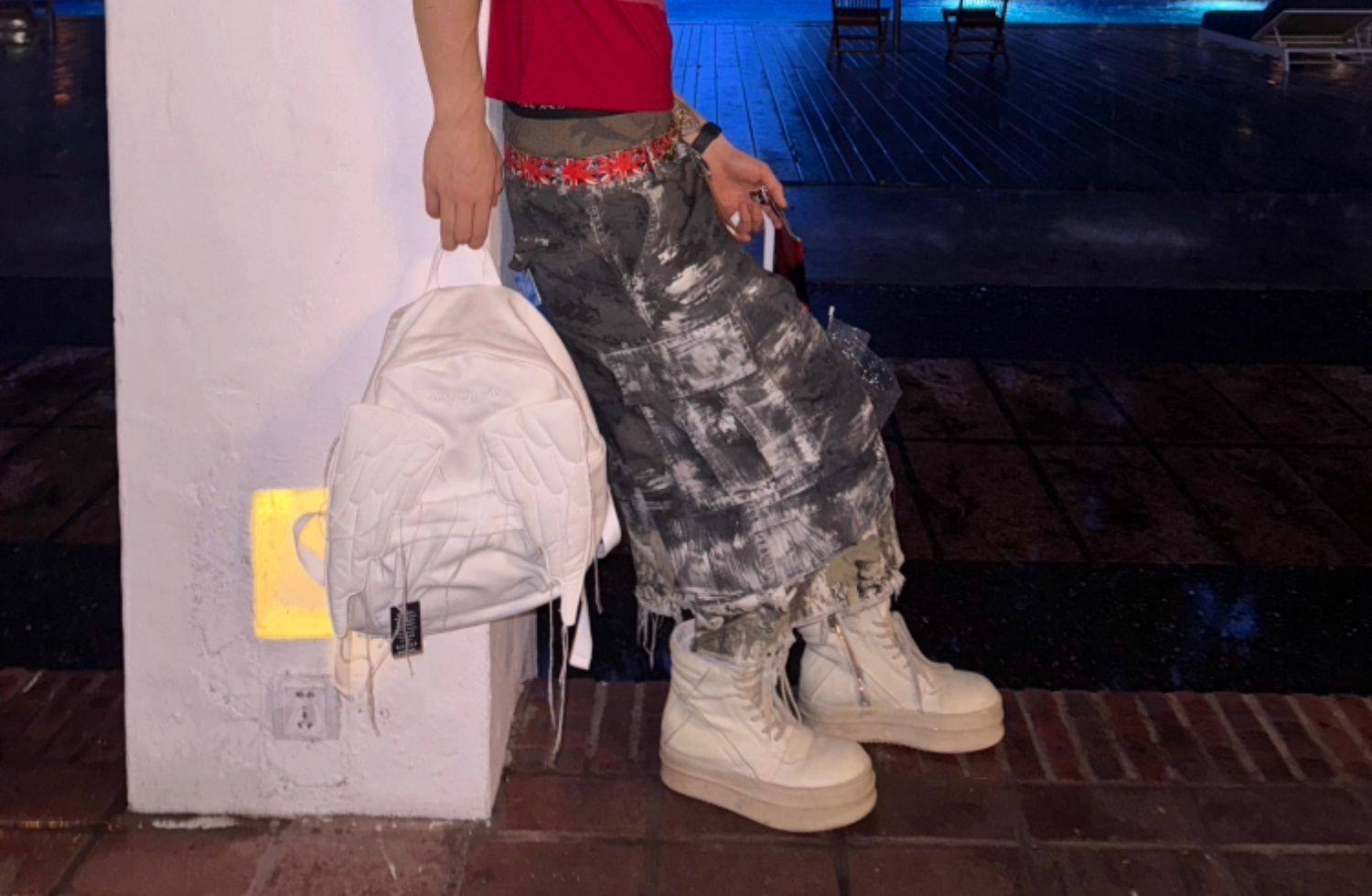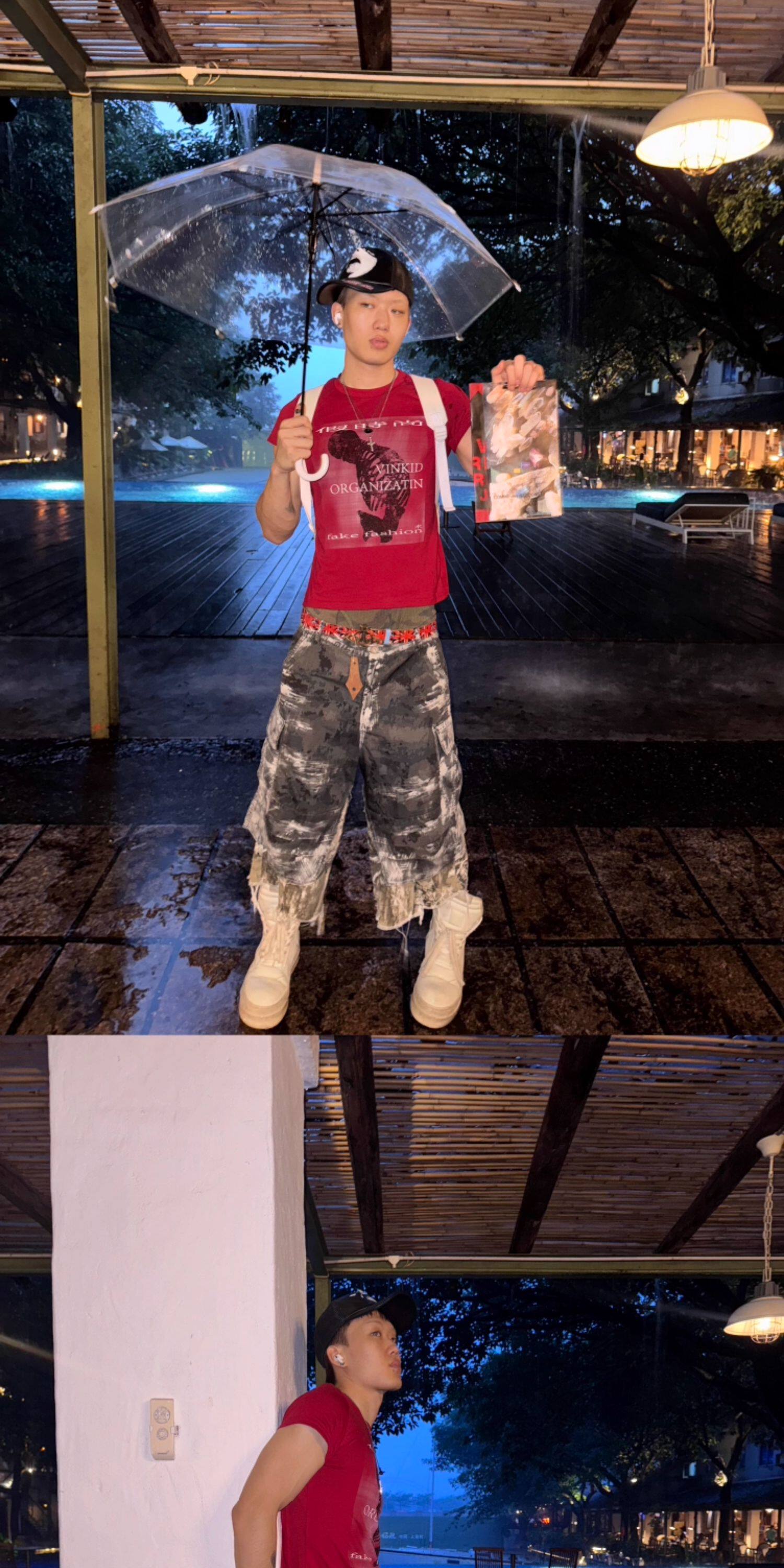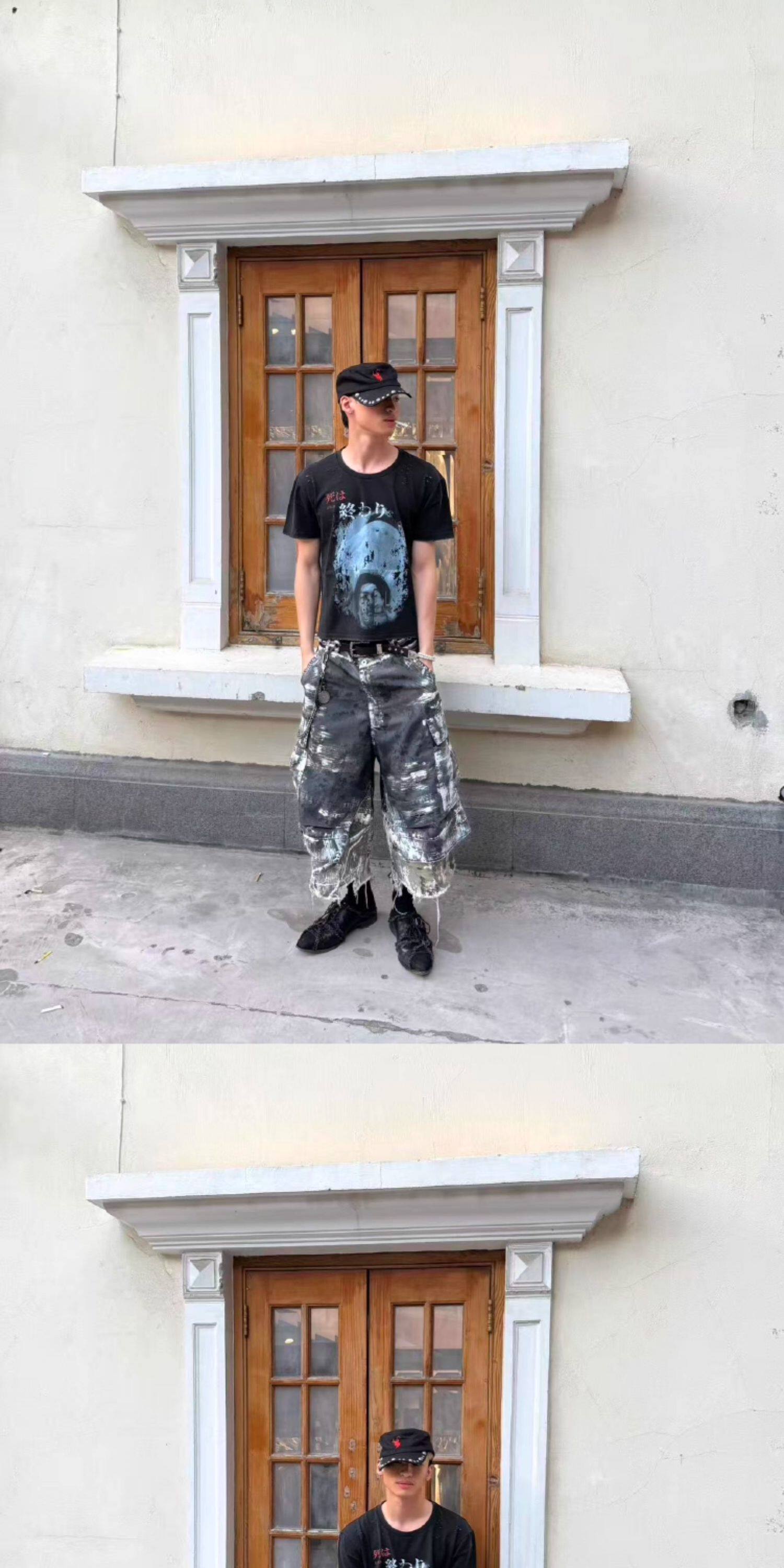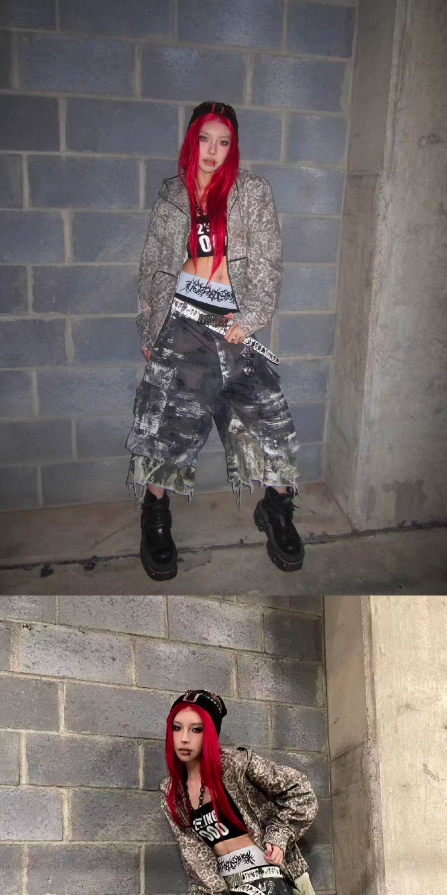 Gojoyjinni Thome Same Style Dirty-Washed Camouflage Patch Pocket Distressed Ripped Faux Two-Piece Shorts Cropped Pants