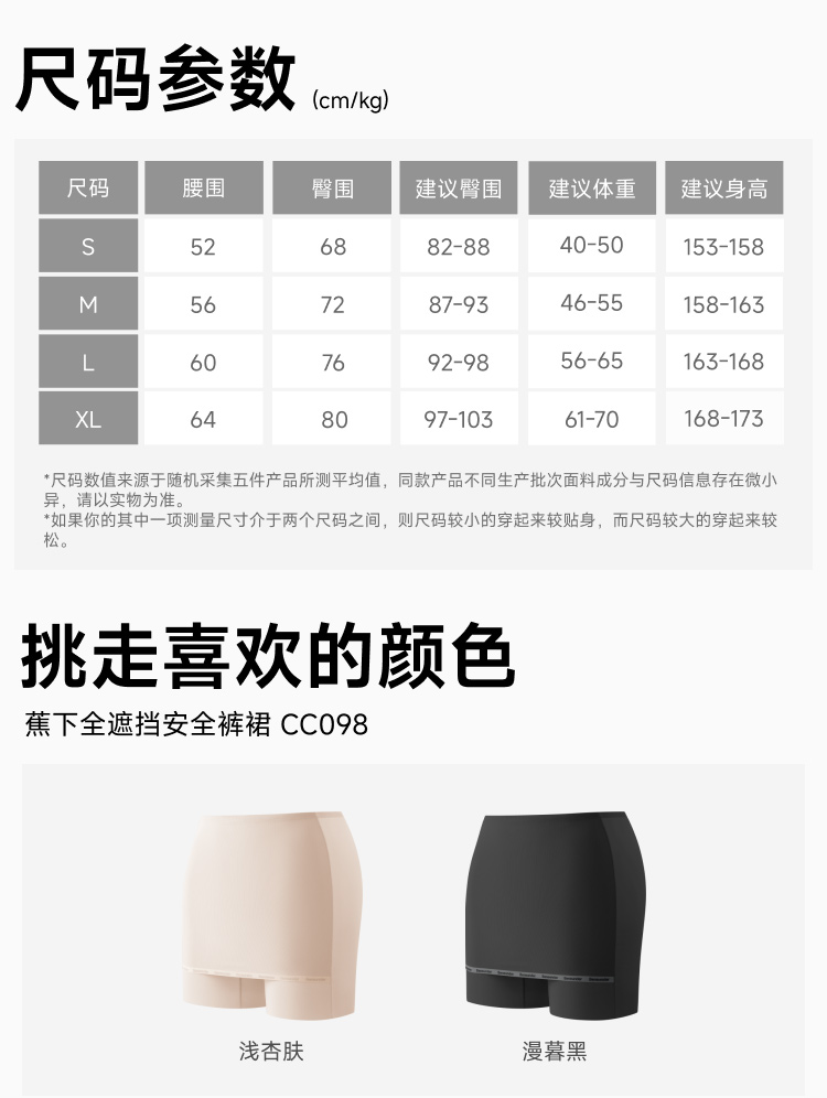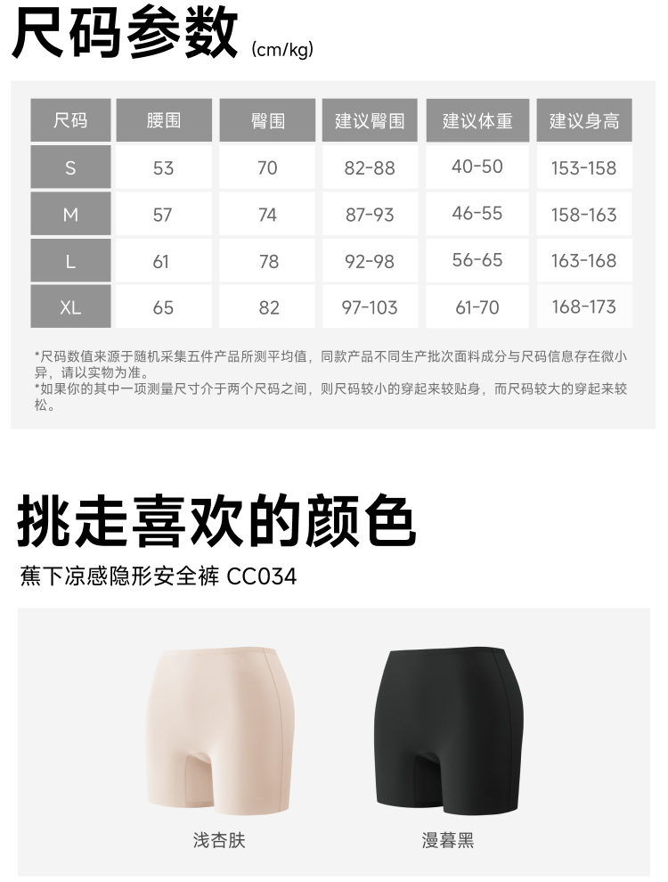 Banana Cool Invisible Safety Shorts for Women, Tummy Control, Butt Lifting, Flesh-Colored Underwear Shorts 2-in-1 Anti-Exposure Cc034