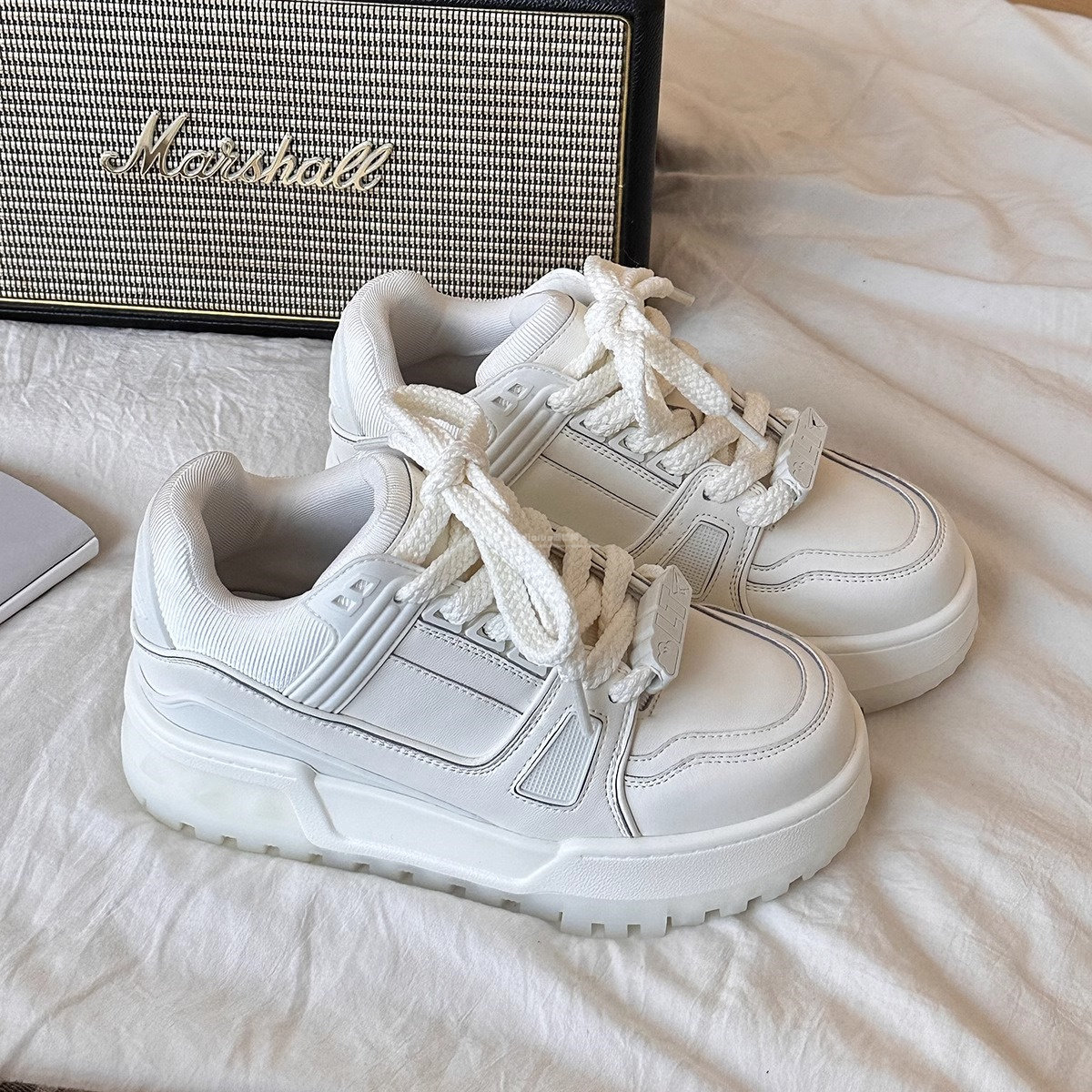 Hong Kong Genuine Leather Thick-Soled Height-Increasing Sneakers for Women 2026 Spring and Autumn New Versatile Loafers Casual Sports White Shoes