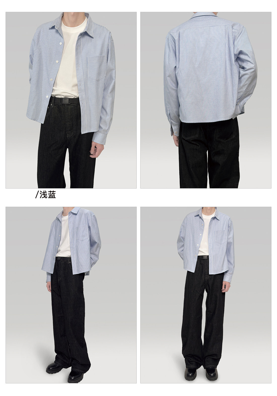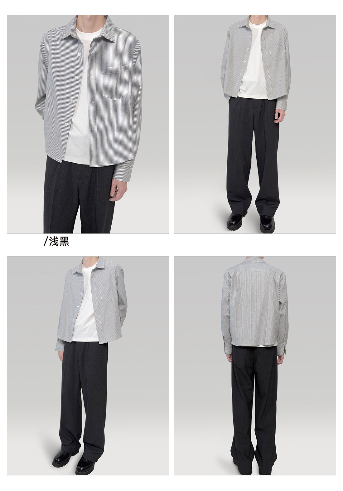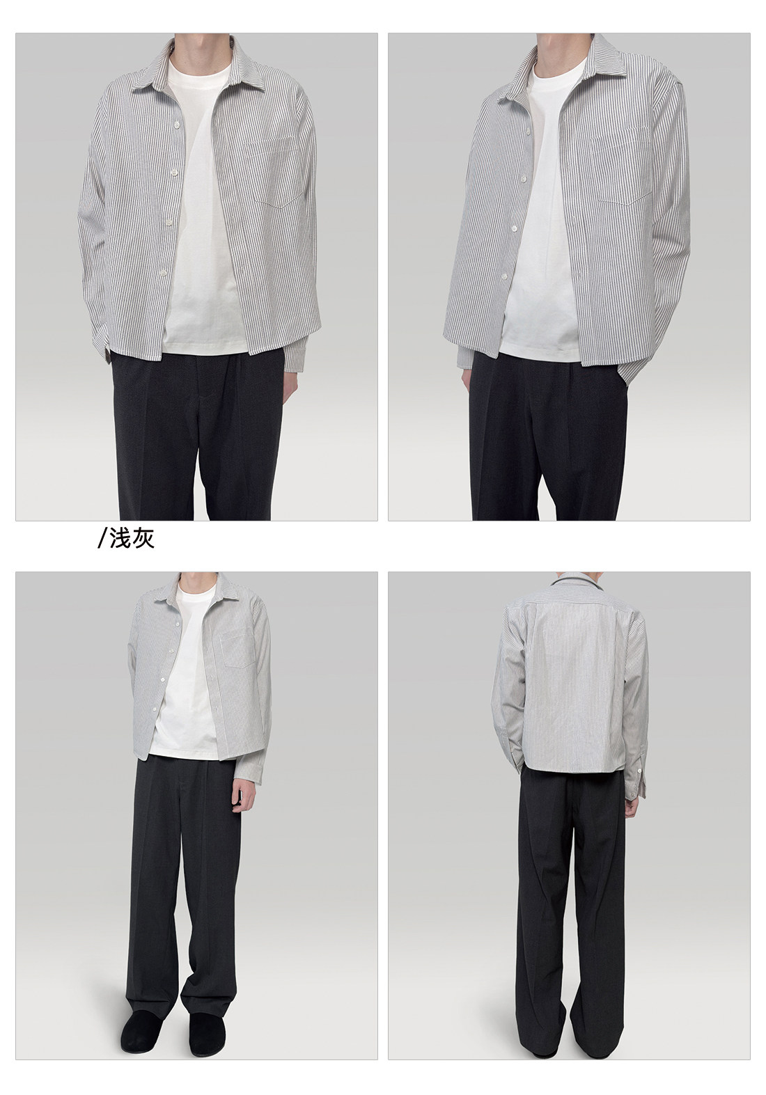 〔 Plus No Logo 〕25Ss Striped Regular Shoulder Shirt, Short and Wide Boxy Fit, Layered Look