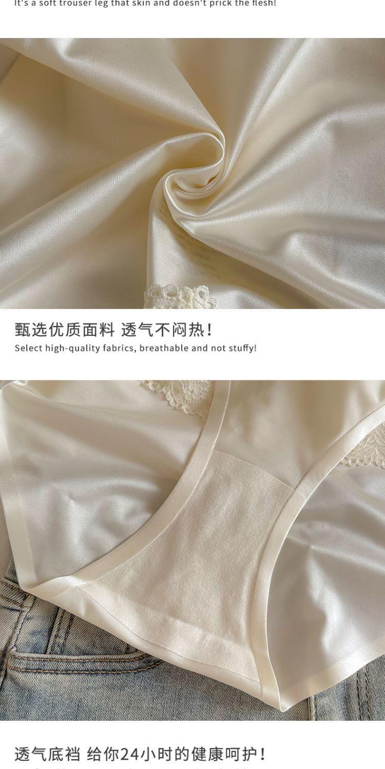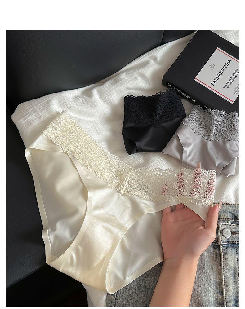 Sexy Lace Embroidered Panties for Women, Satin Seamless Pure Cotton Antibacterial Crotch, Large Size, High Waist, Comfortable, Nude Feel, Pure Desire, Breathable