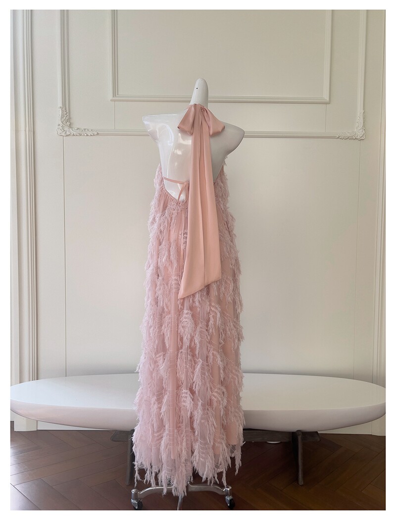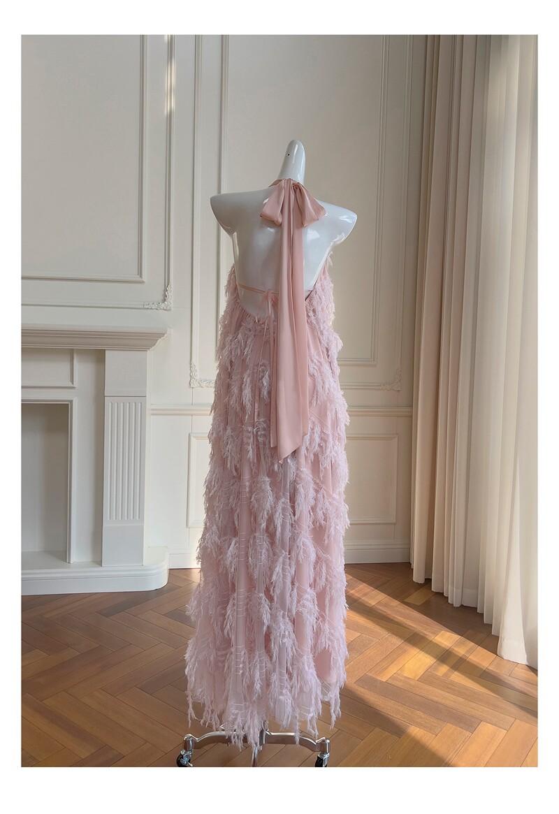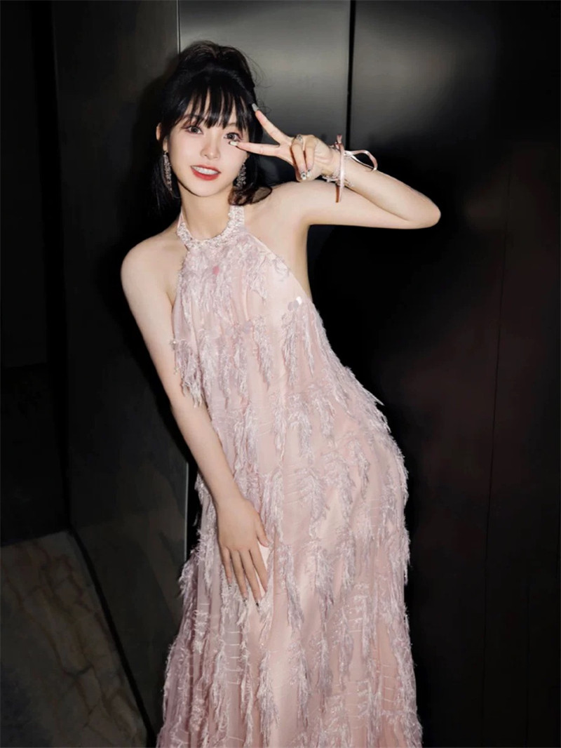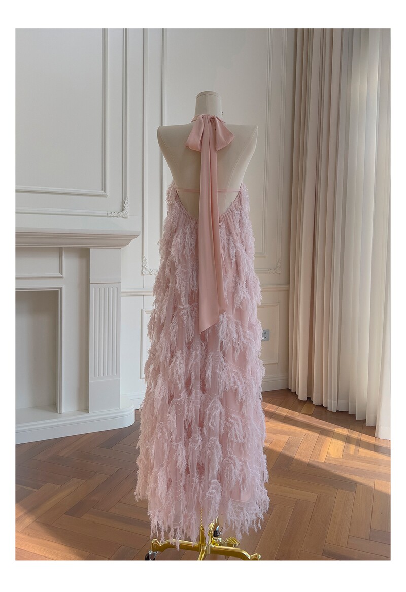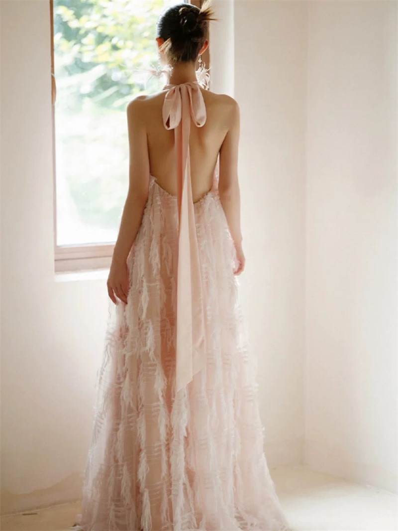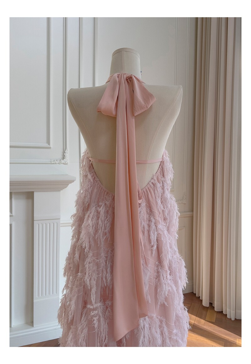 Goddess Morning Robe Pink Halter Neck Sexy Backless Dress French Elegant Temperament Socialite Daughter Vacation Dress Summer