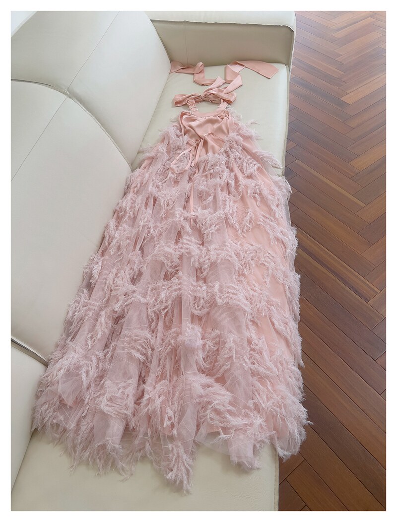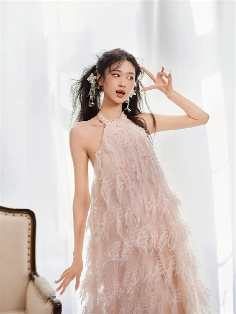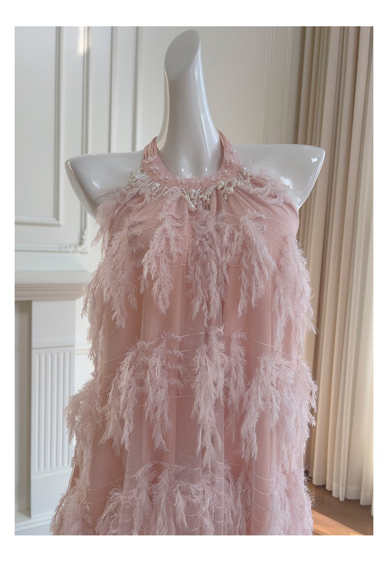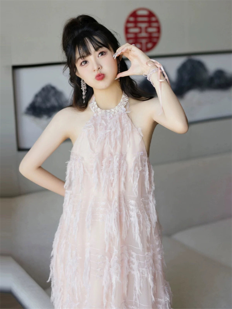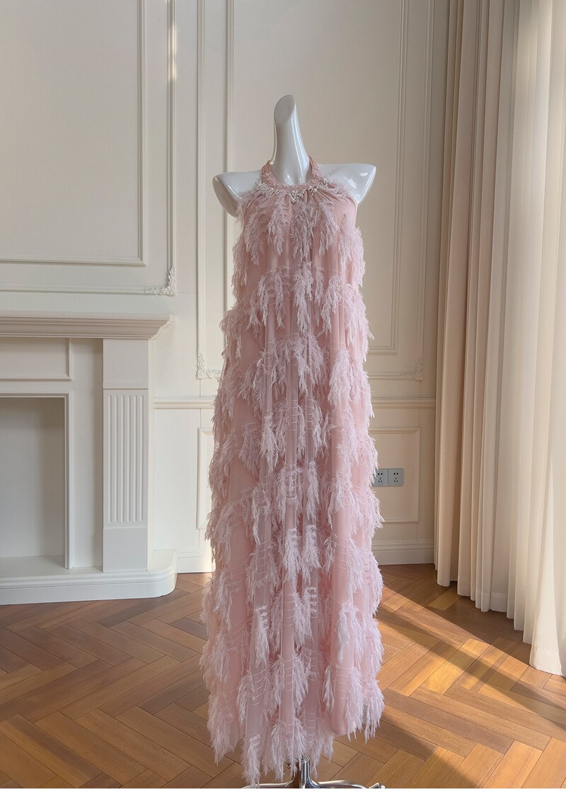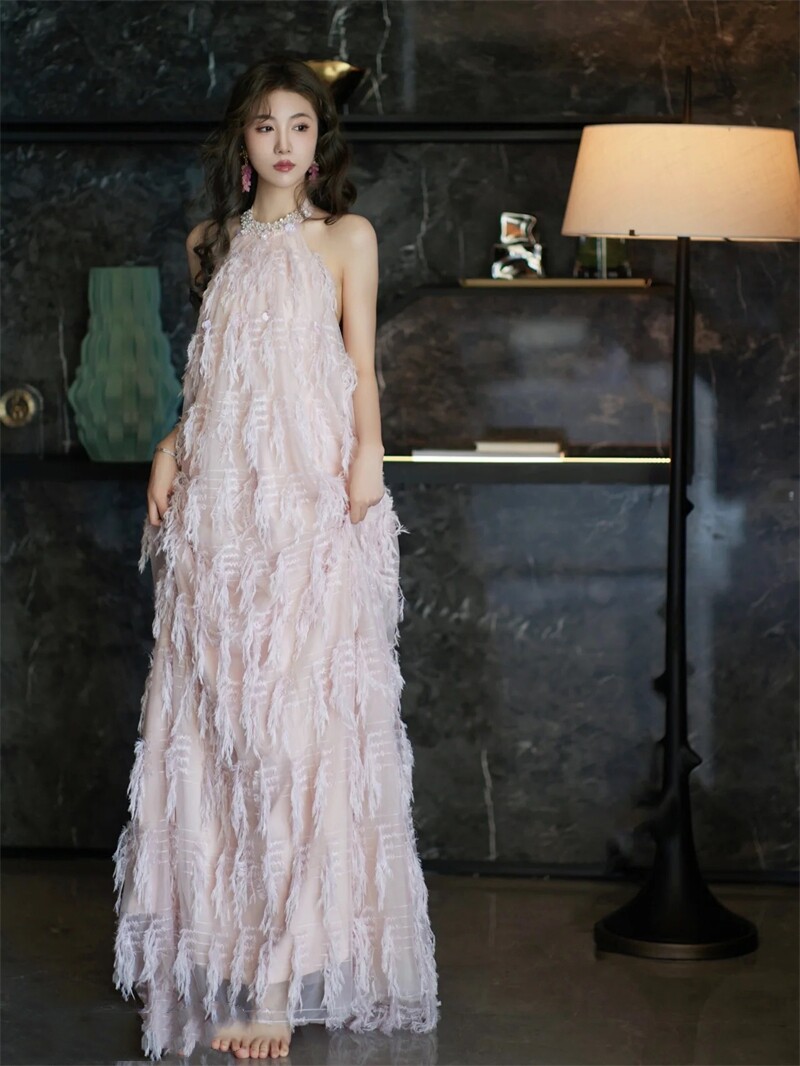 Goddess Morning Robe Pink Halter Neck Sexy Backless Dress French Elegant Temperament Socialite Daughter Vacation Dress Summer