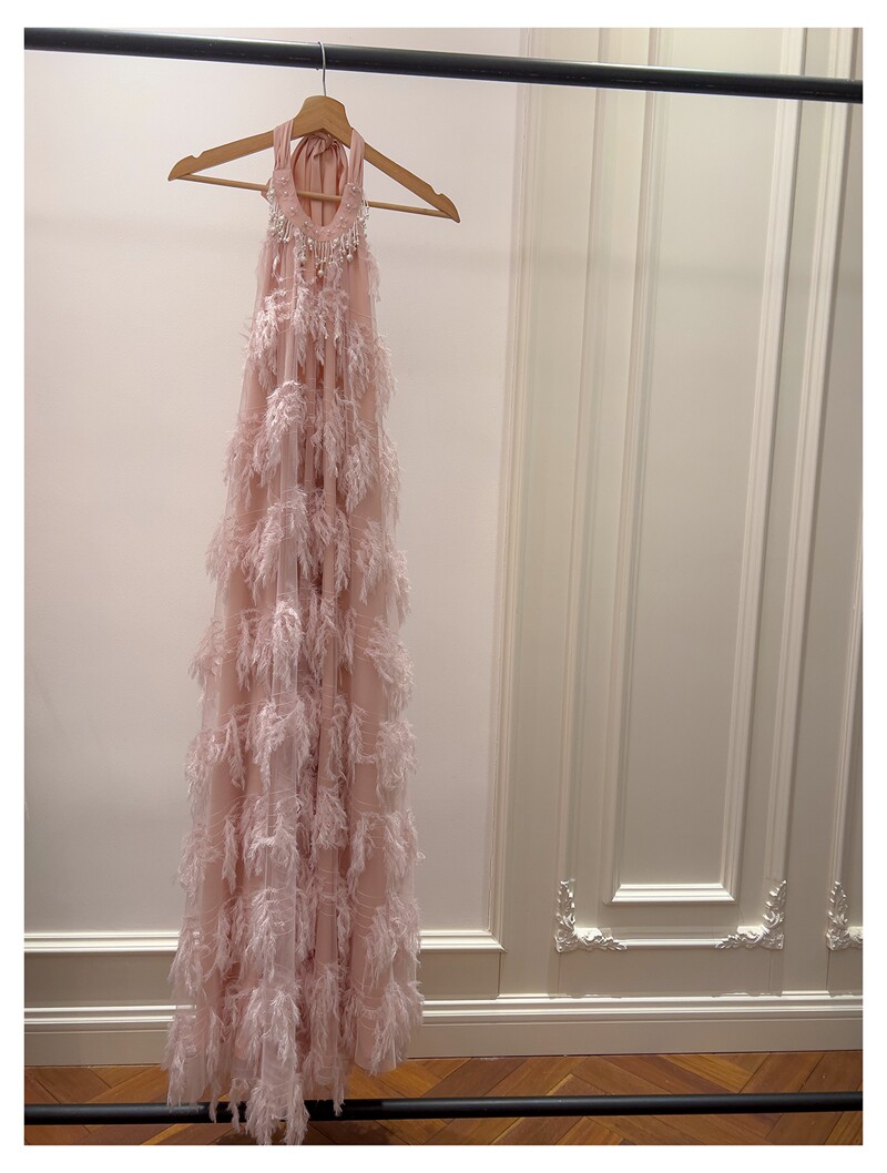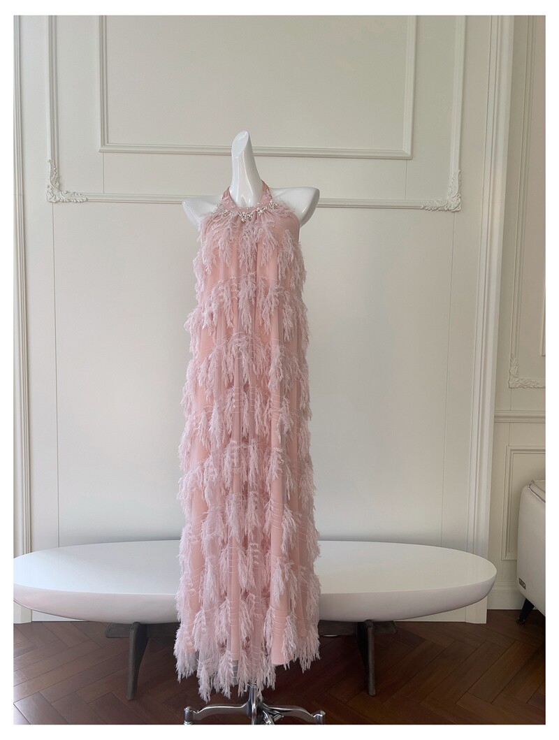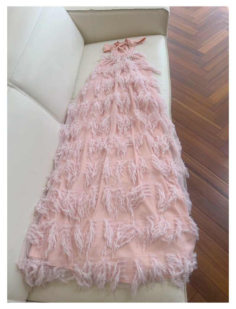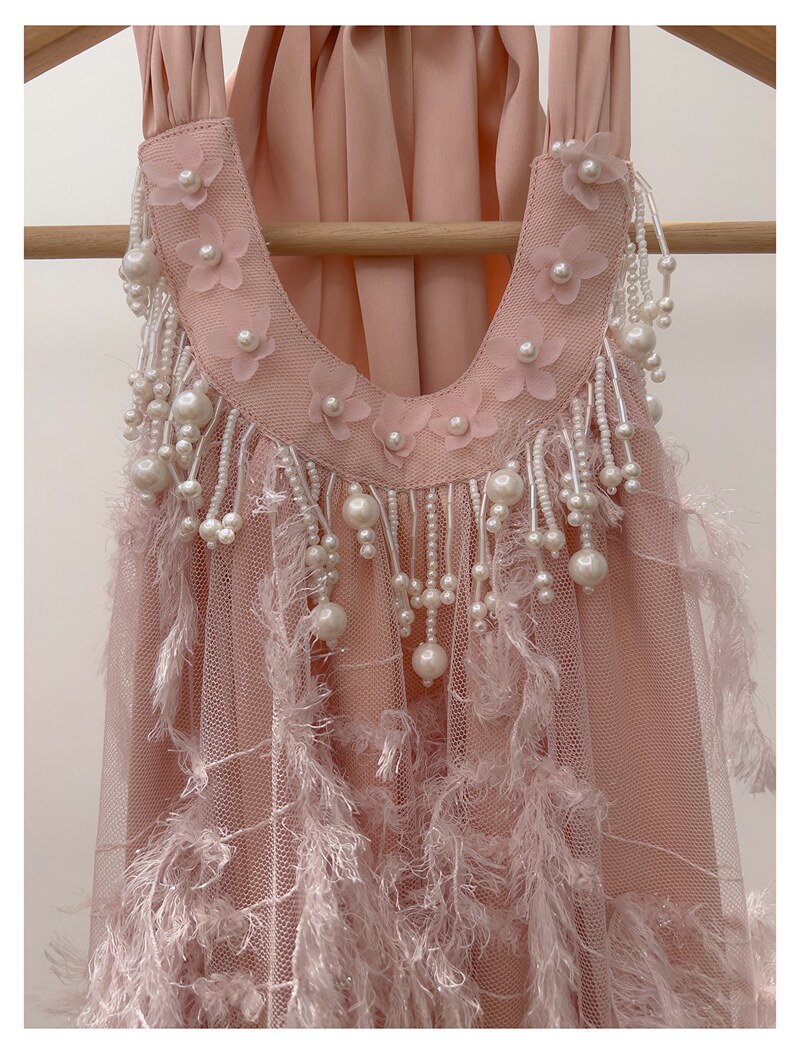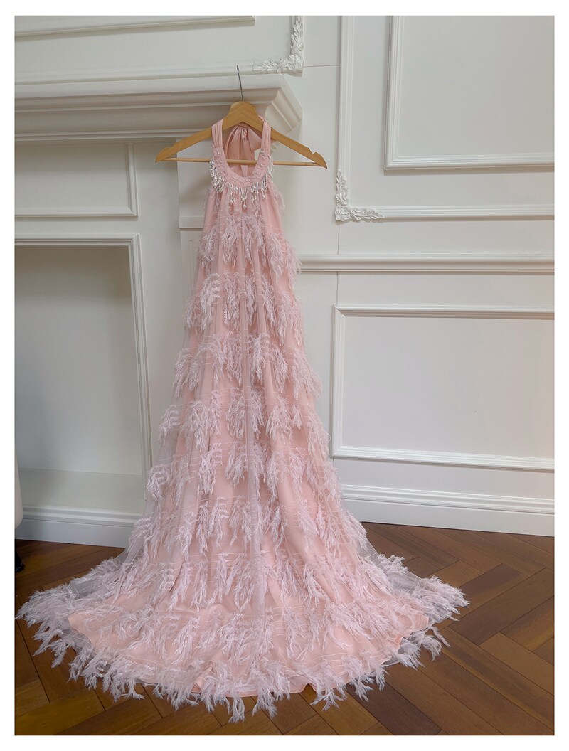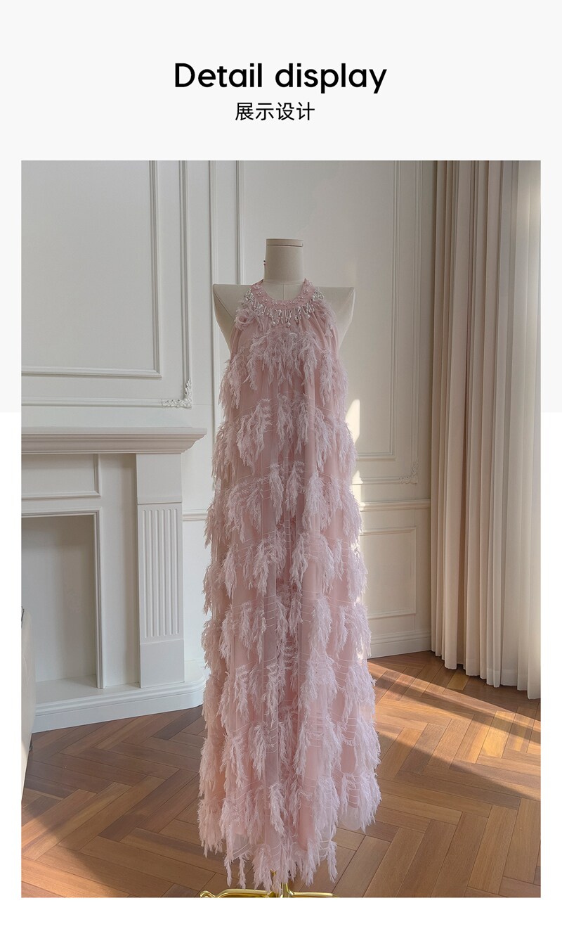 Goddess Morning Robe Pink Halter Neck Sexy Backless Dress French Elegant Temperament Socialite Daughter Vacation Dress Summer