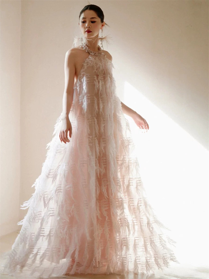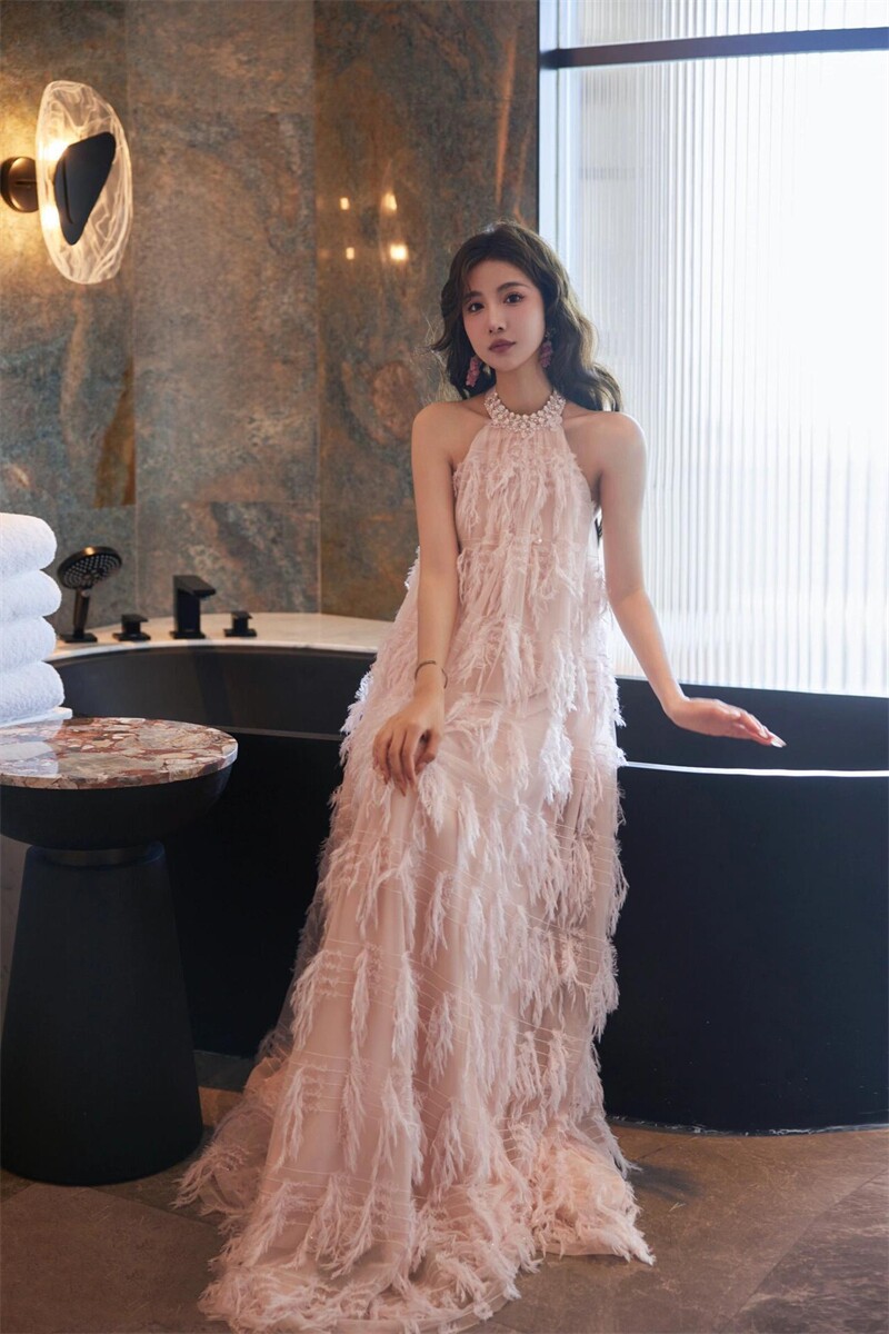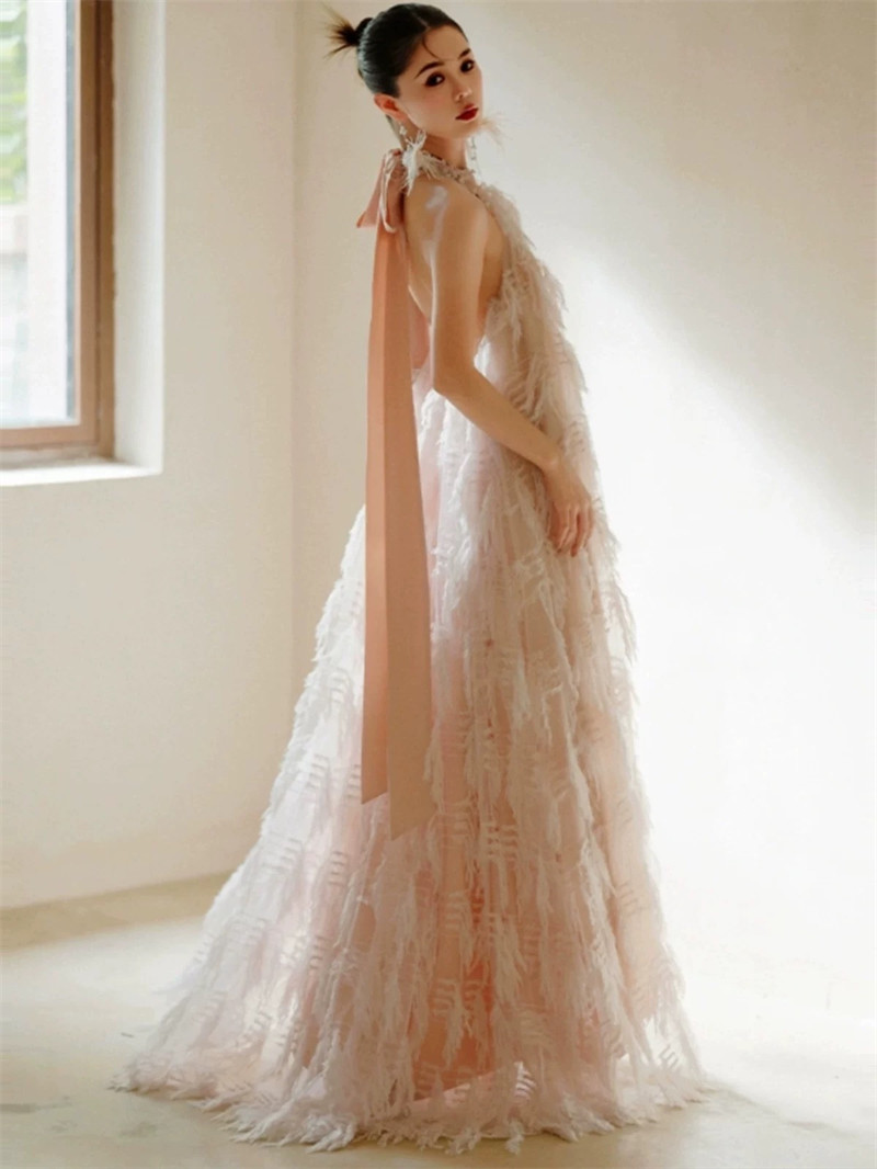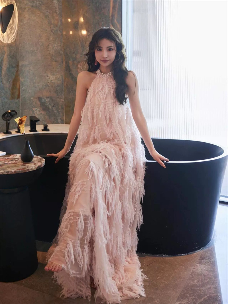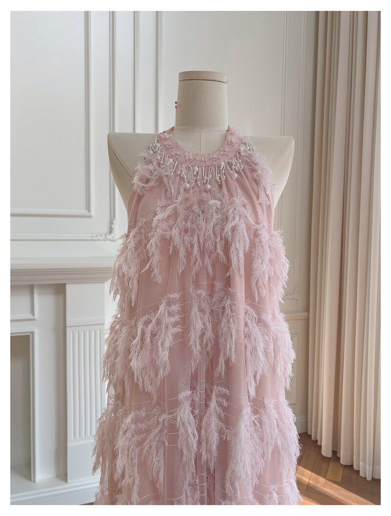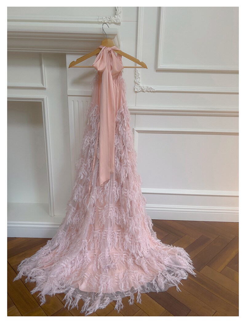 Goddess Morning Robe Pink Halter Neck Sexy Backless Dress French Elegant Temperament Socialite Daughter Vacation Dress Summer