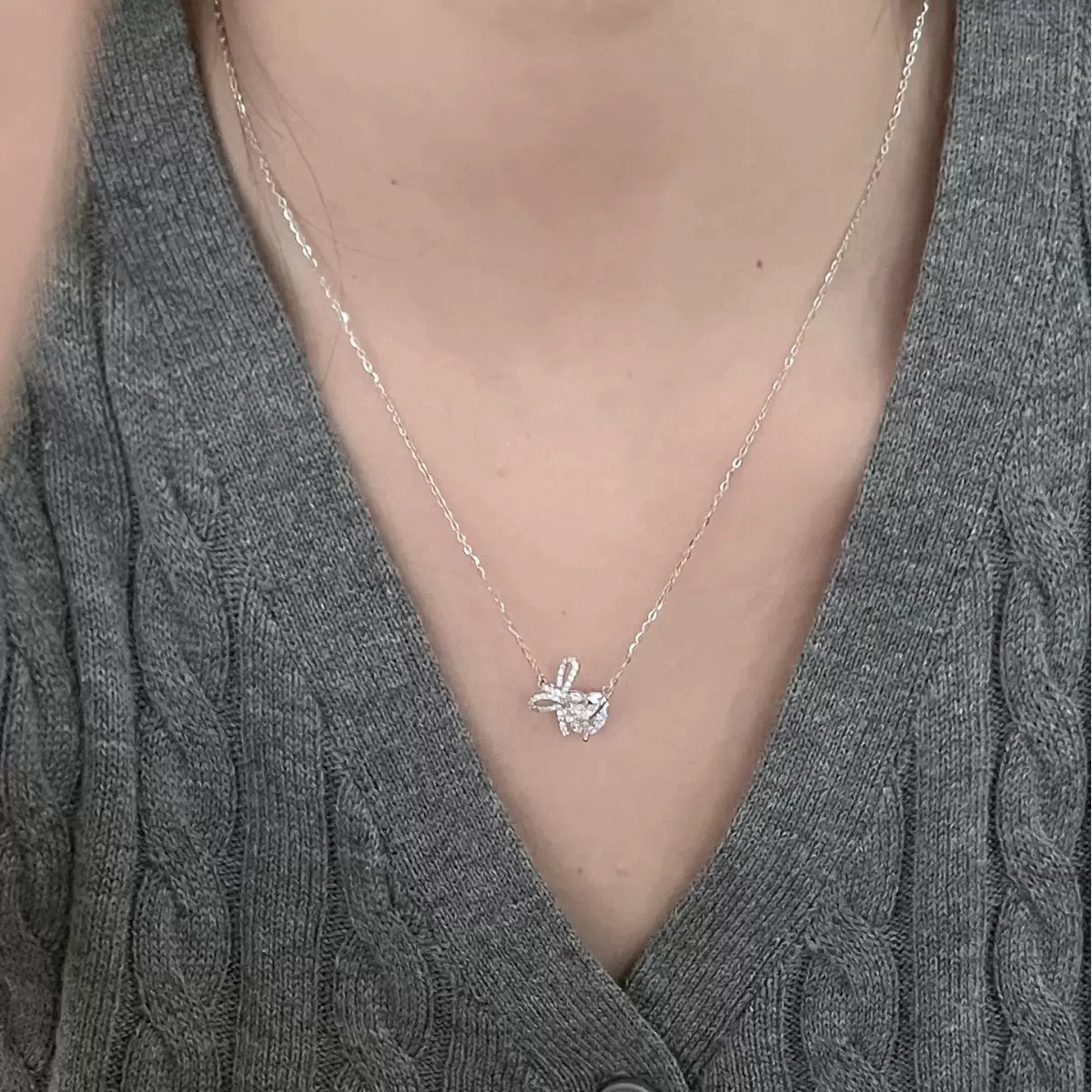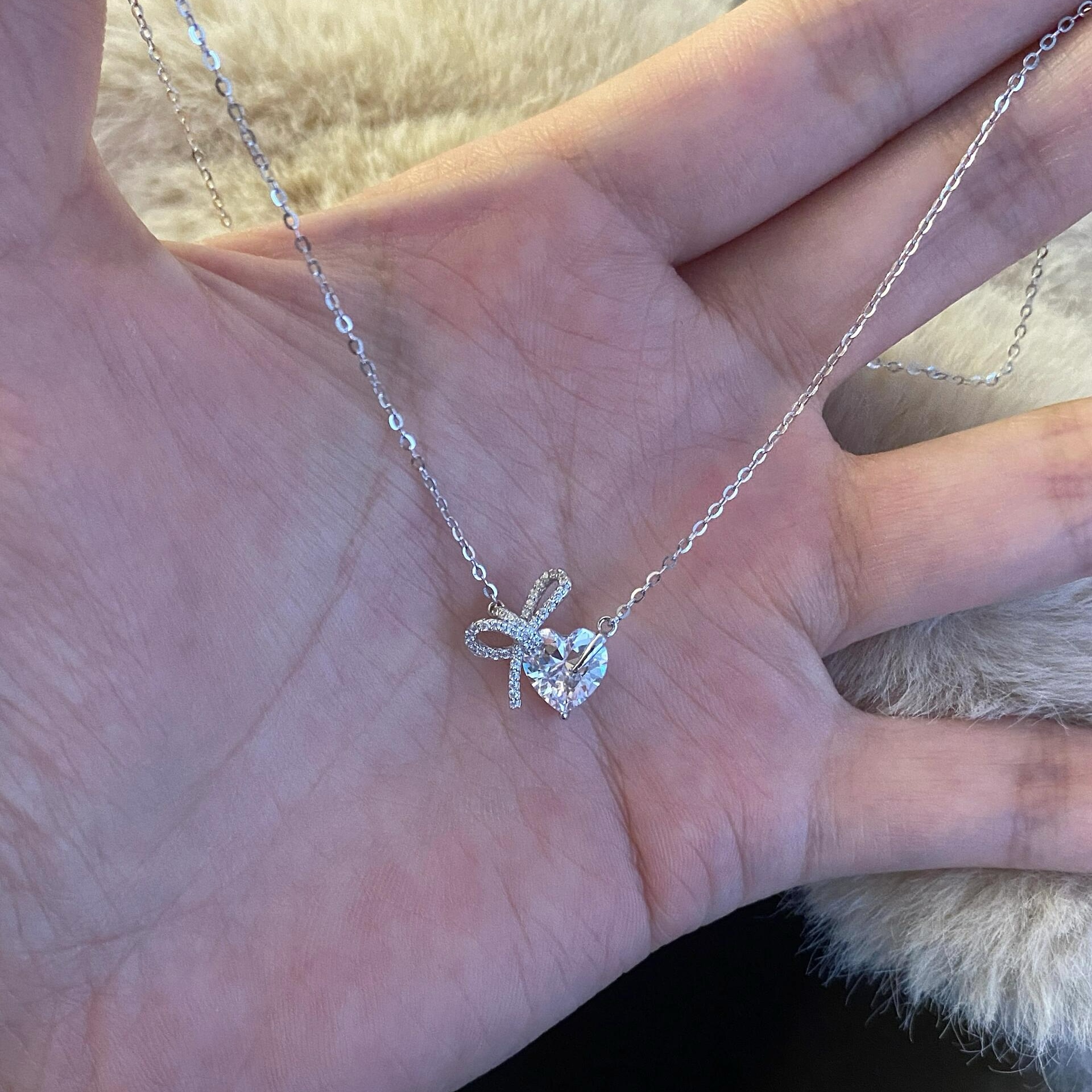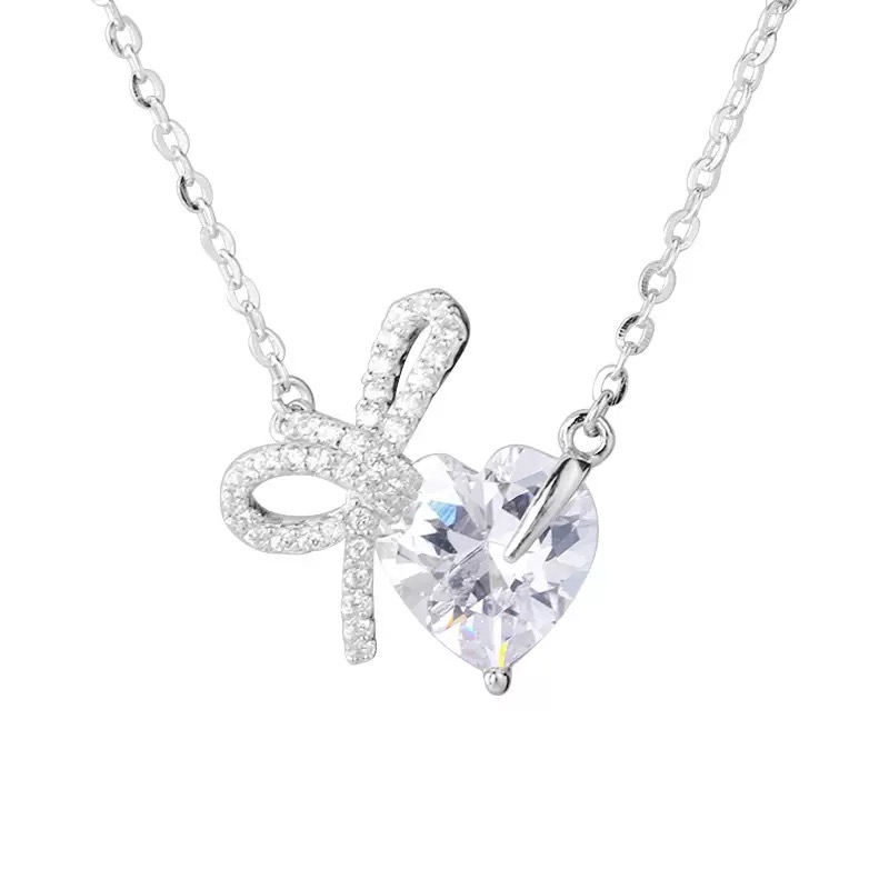 Chimamian S925 Sterling Silver Bowknot Heart Necklace for Women, Light Luxury Niche Design, Elegant and High-End Clavicle Chain