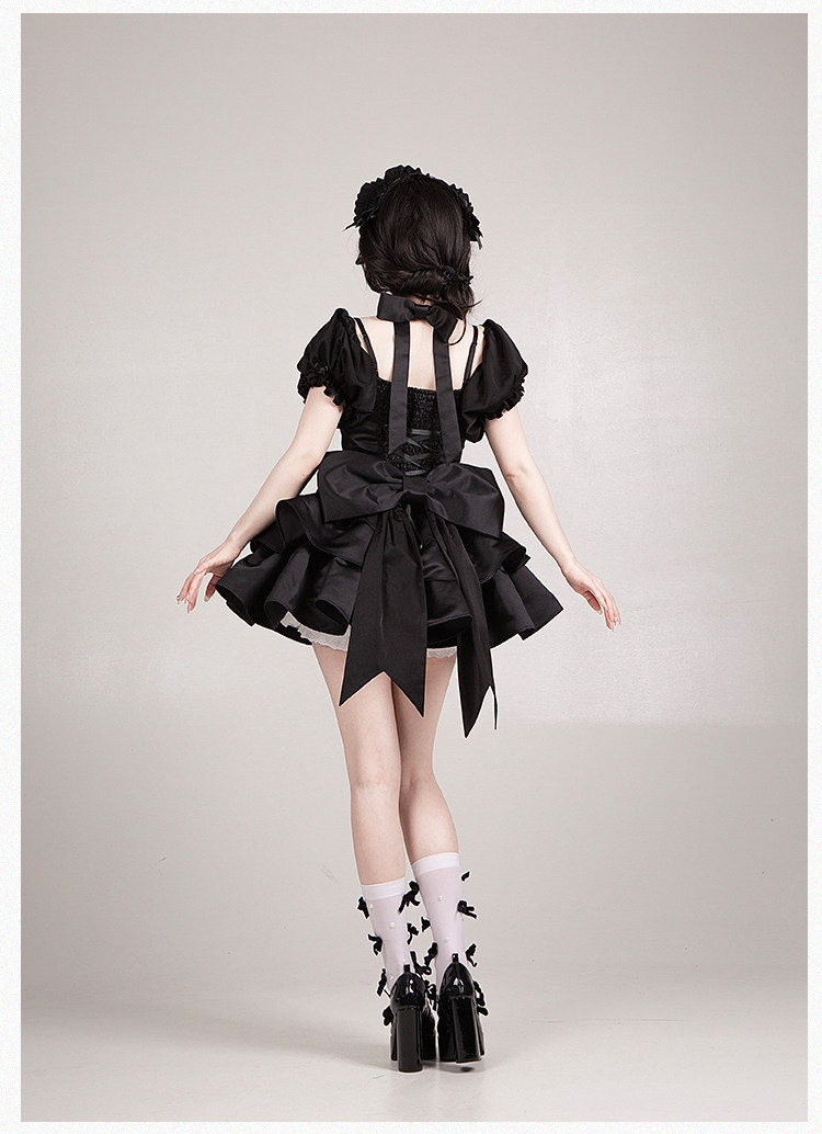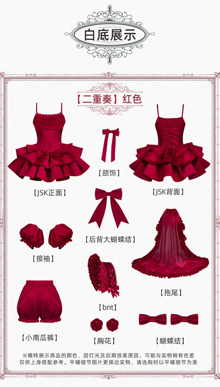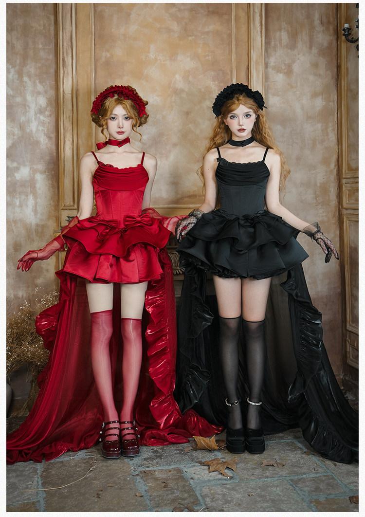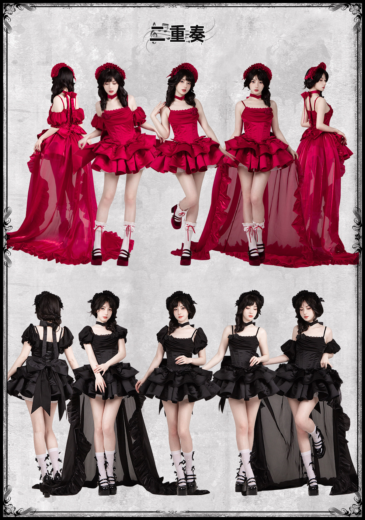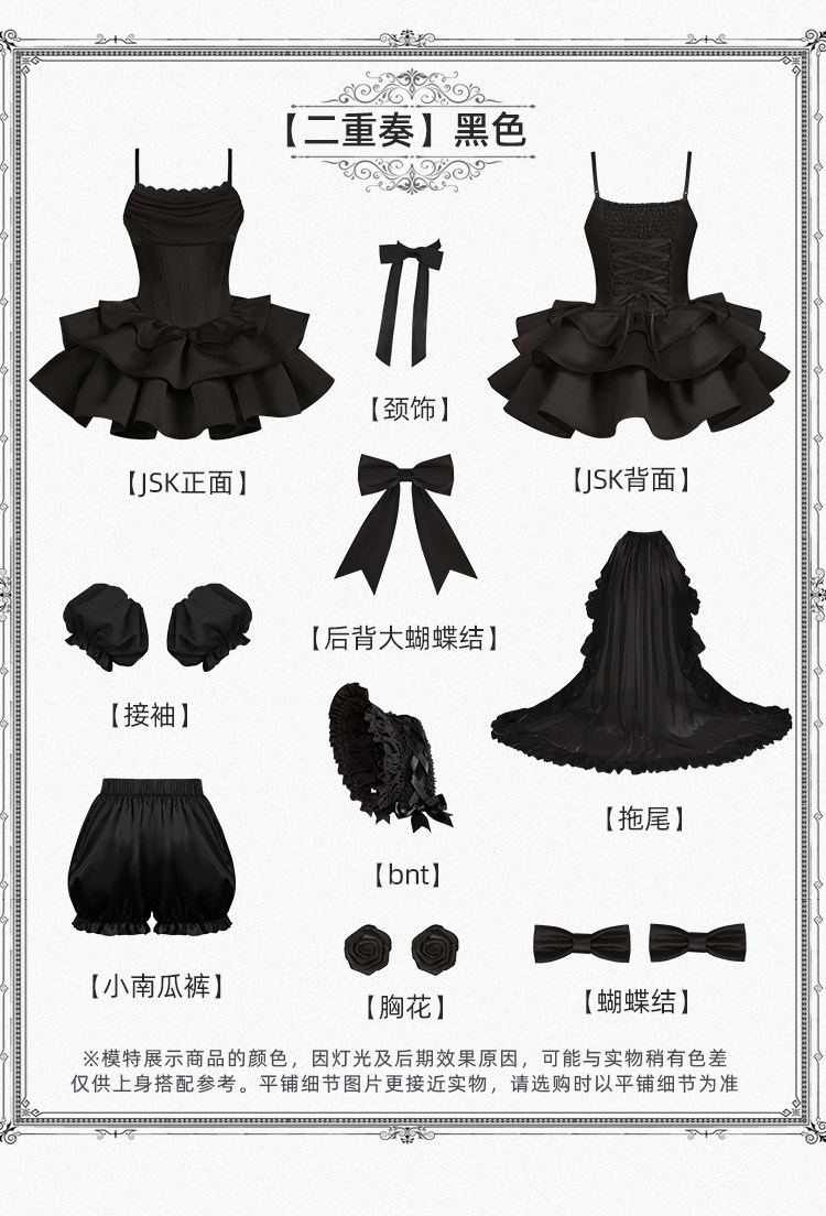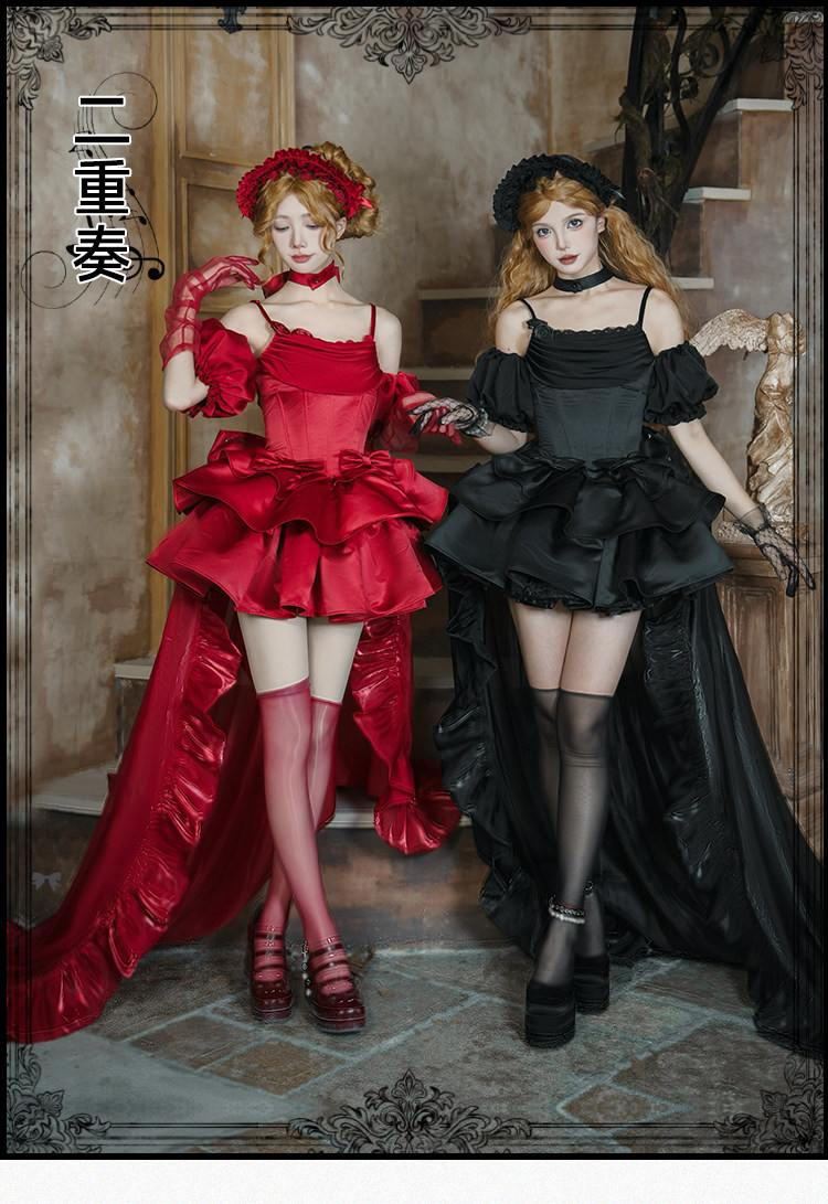 【Duo】Withpuji Original Design Twin Fishbone Ultra-Short Jsk with Trailing Sleeves Set Lolita