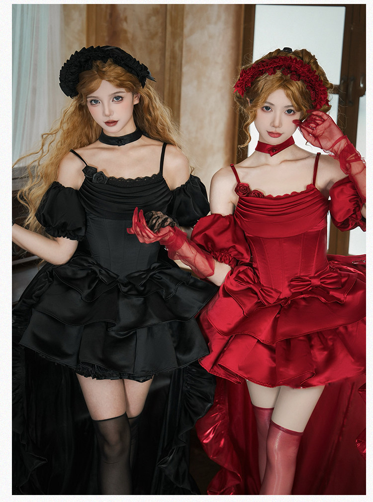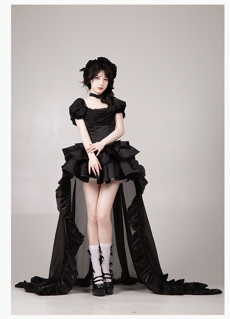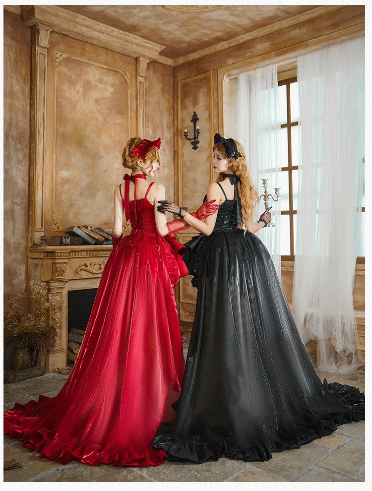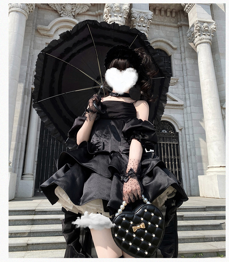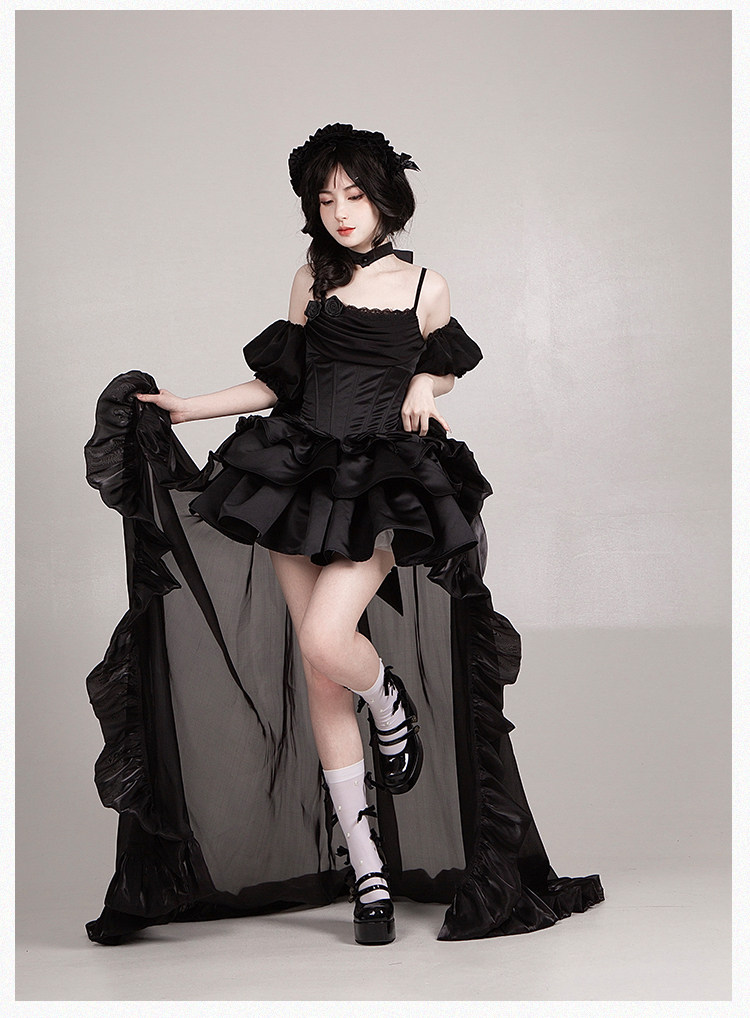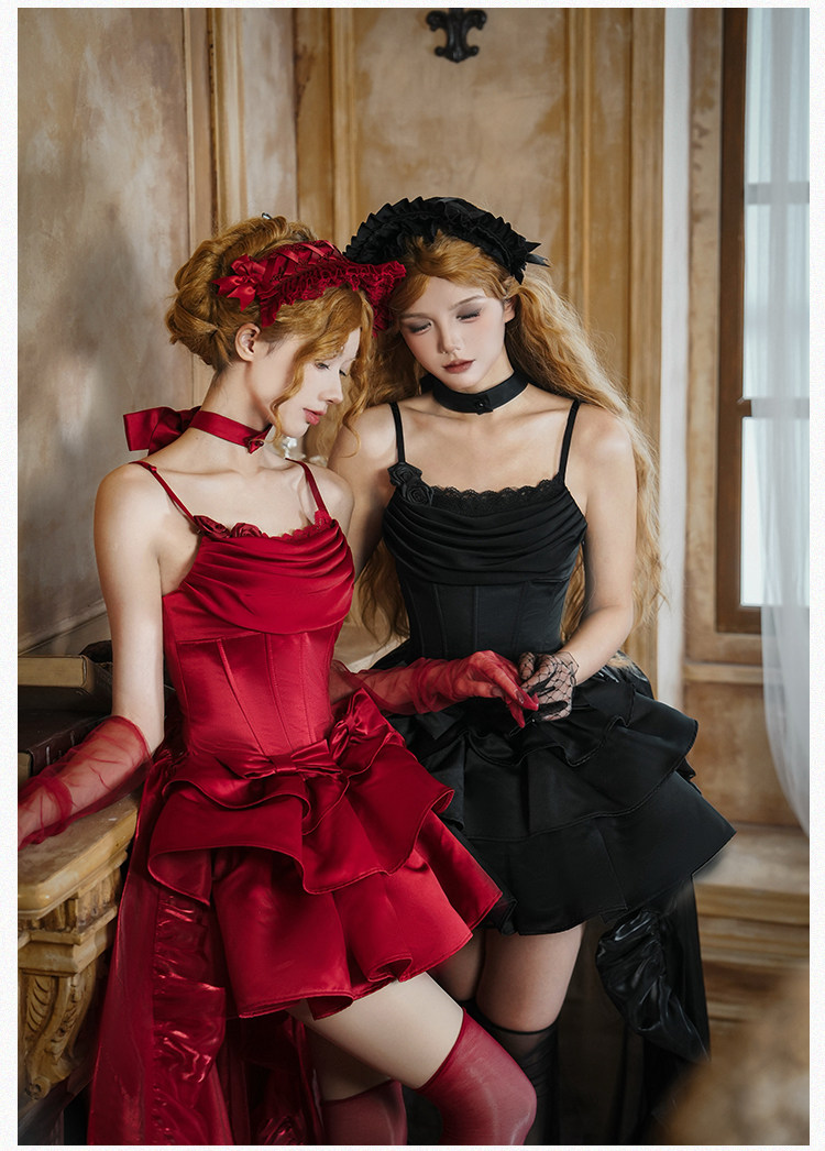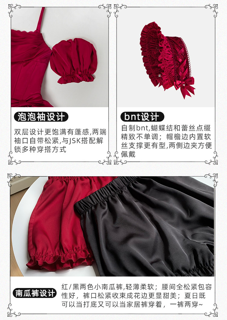 【Duo】Withpuji Original Design Twin Fishbone Ultra-Short Jsk with Trailing Sleeves Set Lolita