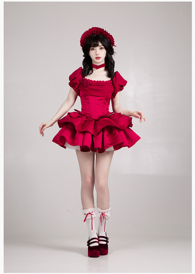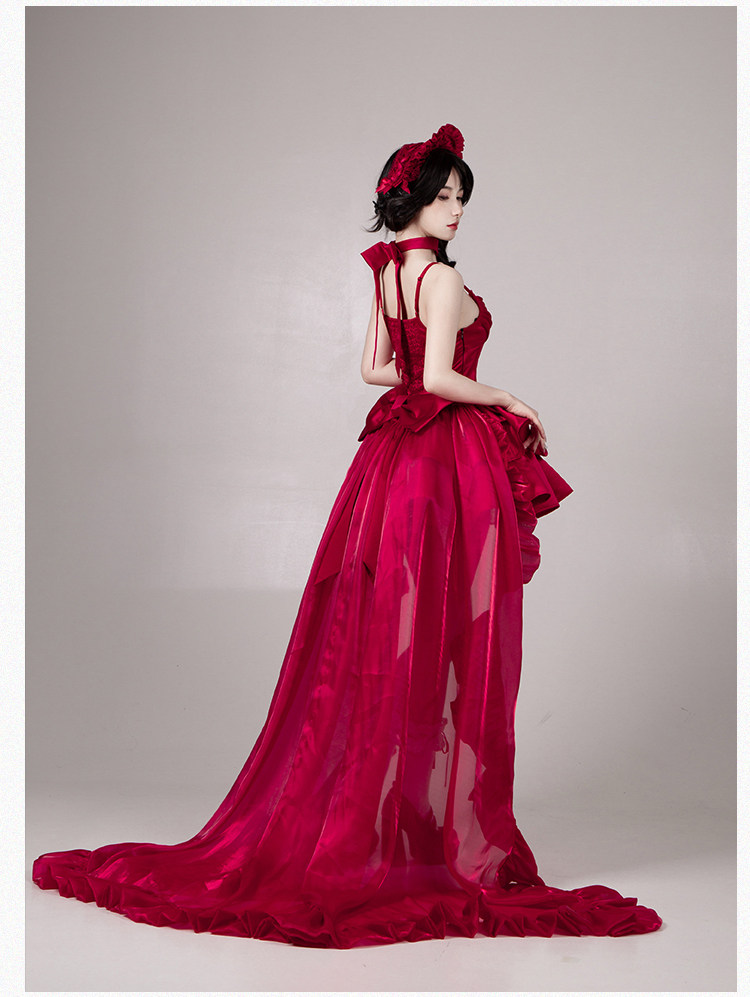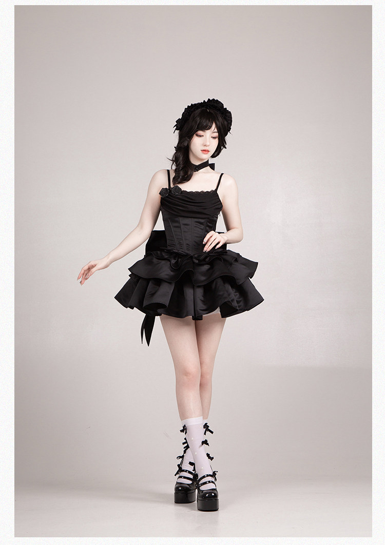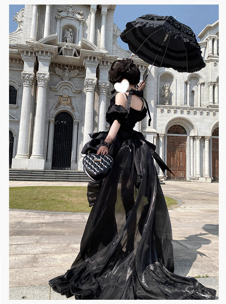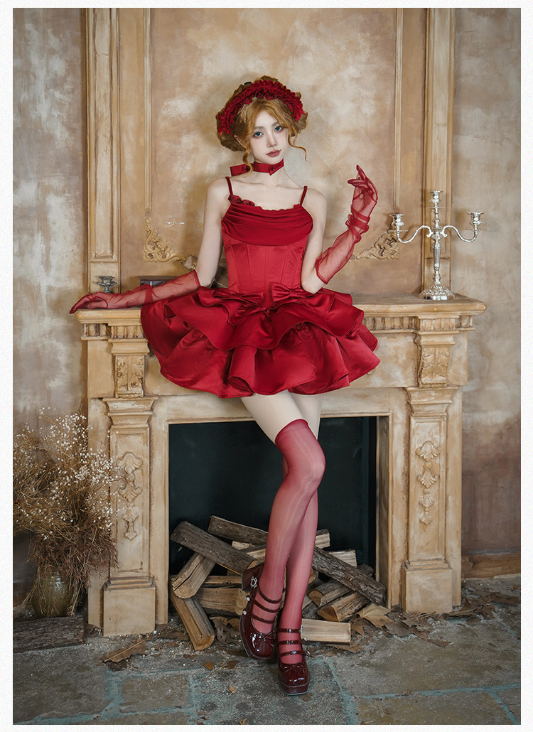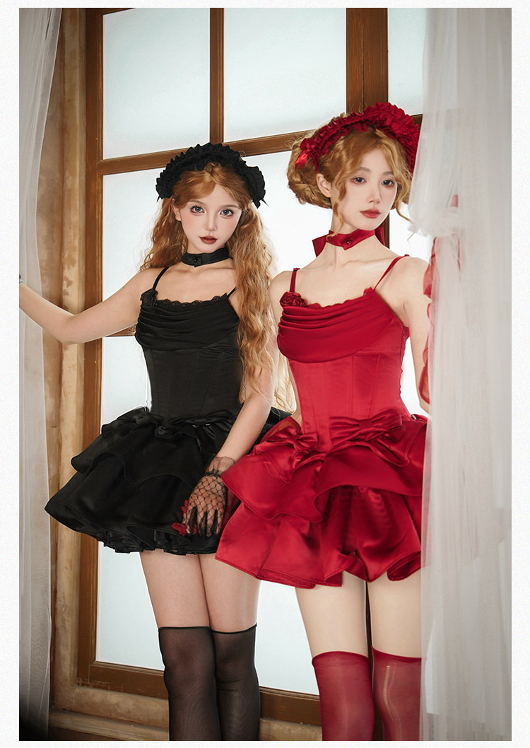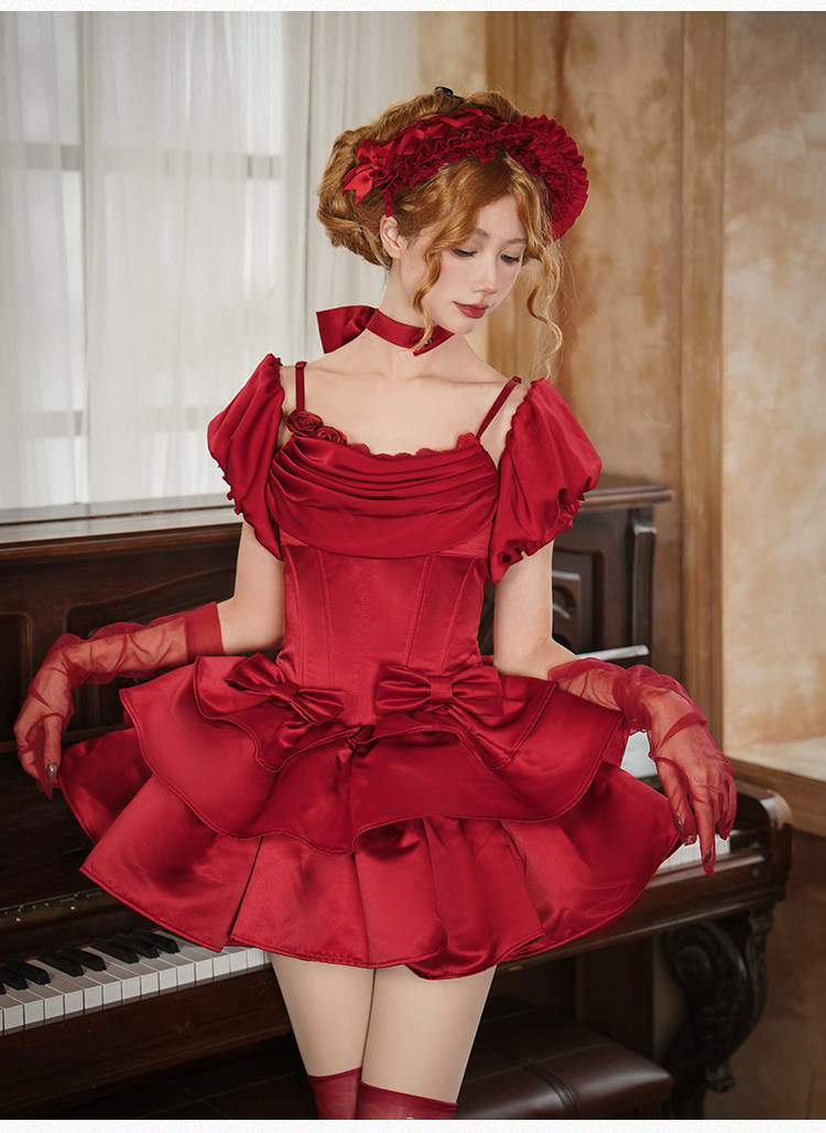 【Duo】Withpuji Original Design Twin Fishbone Ultra-Short Jsk with Trailing Sleeves Set Lolita