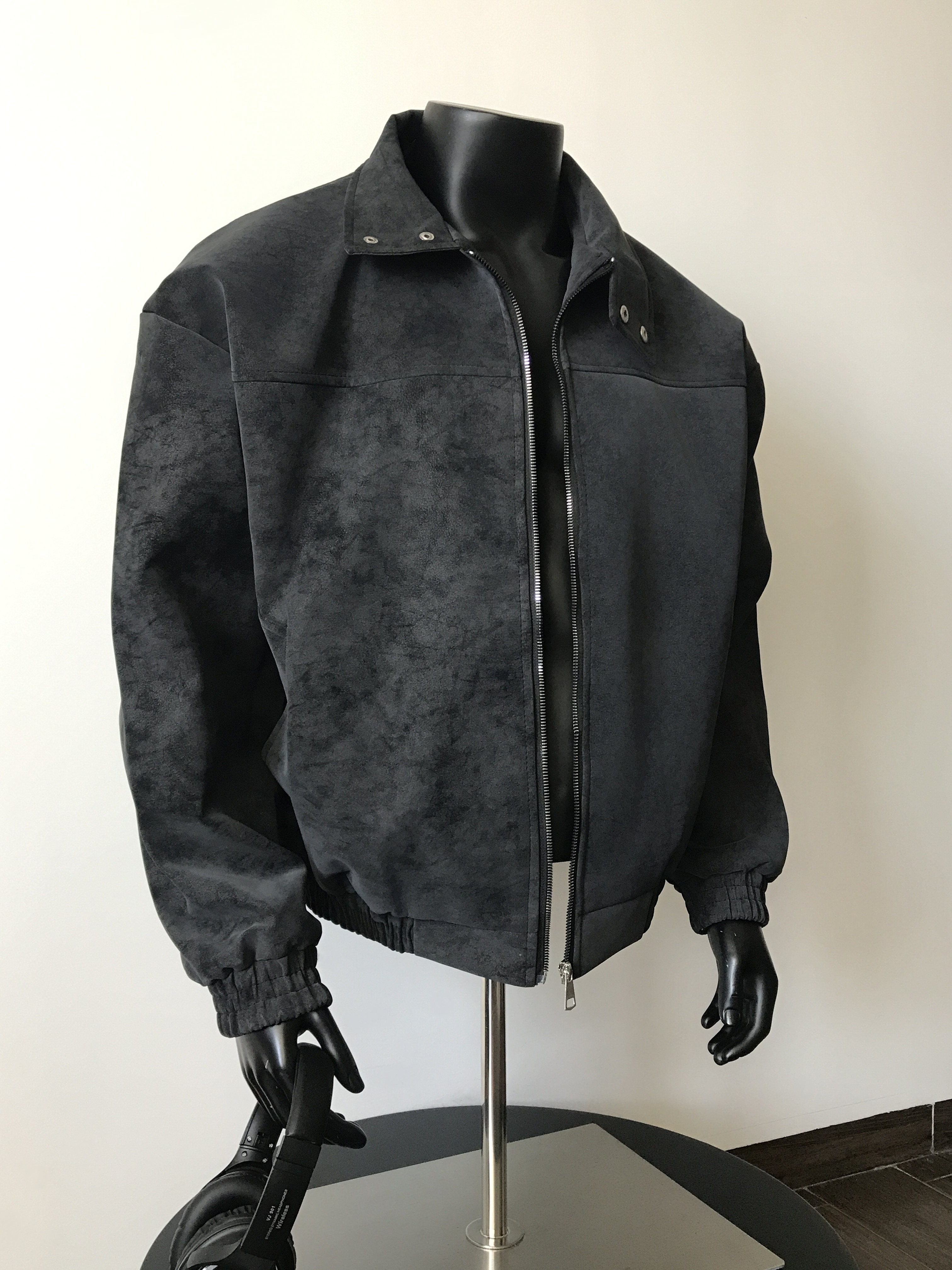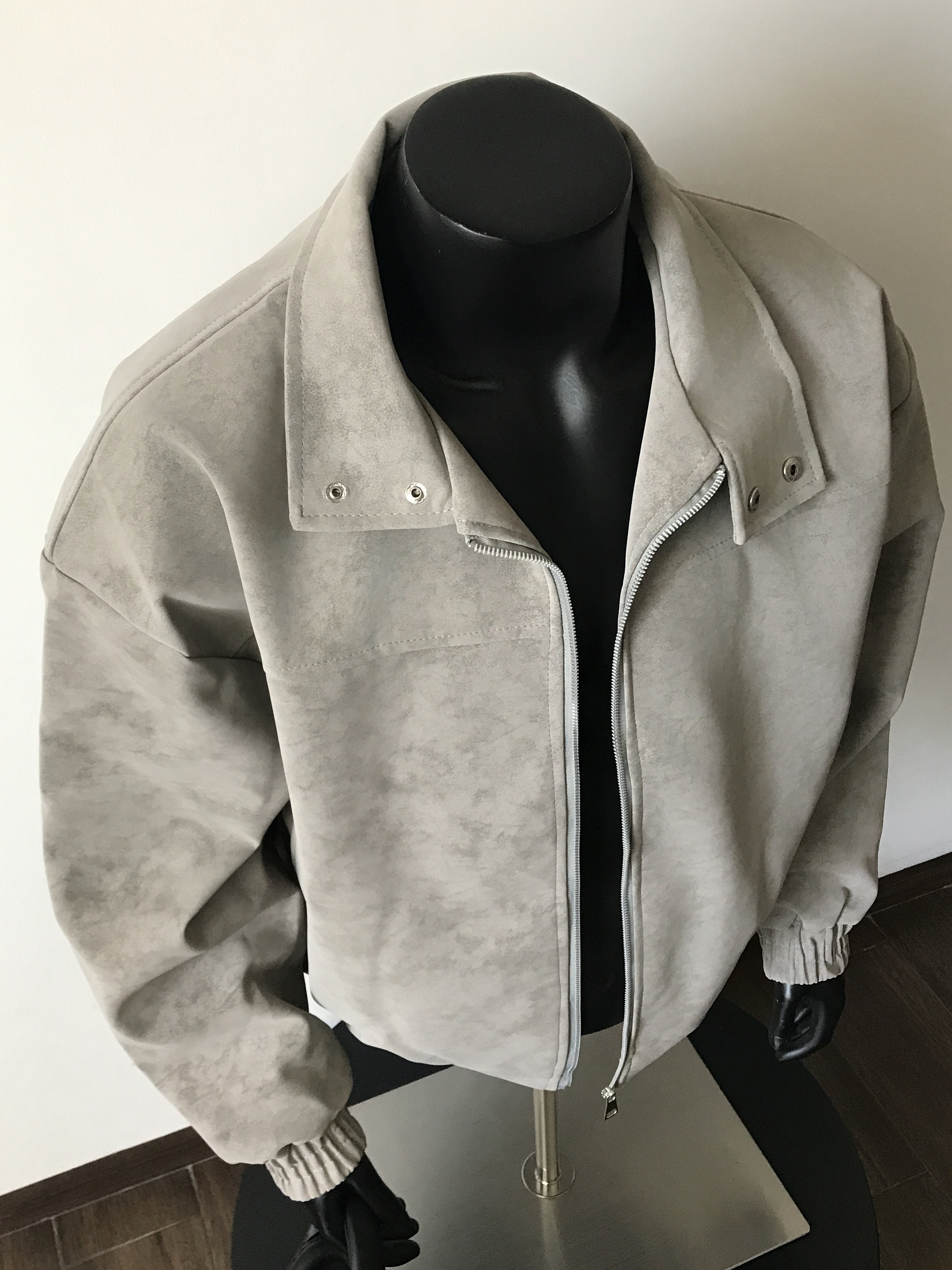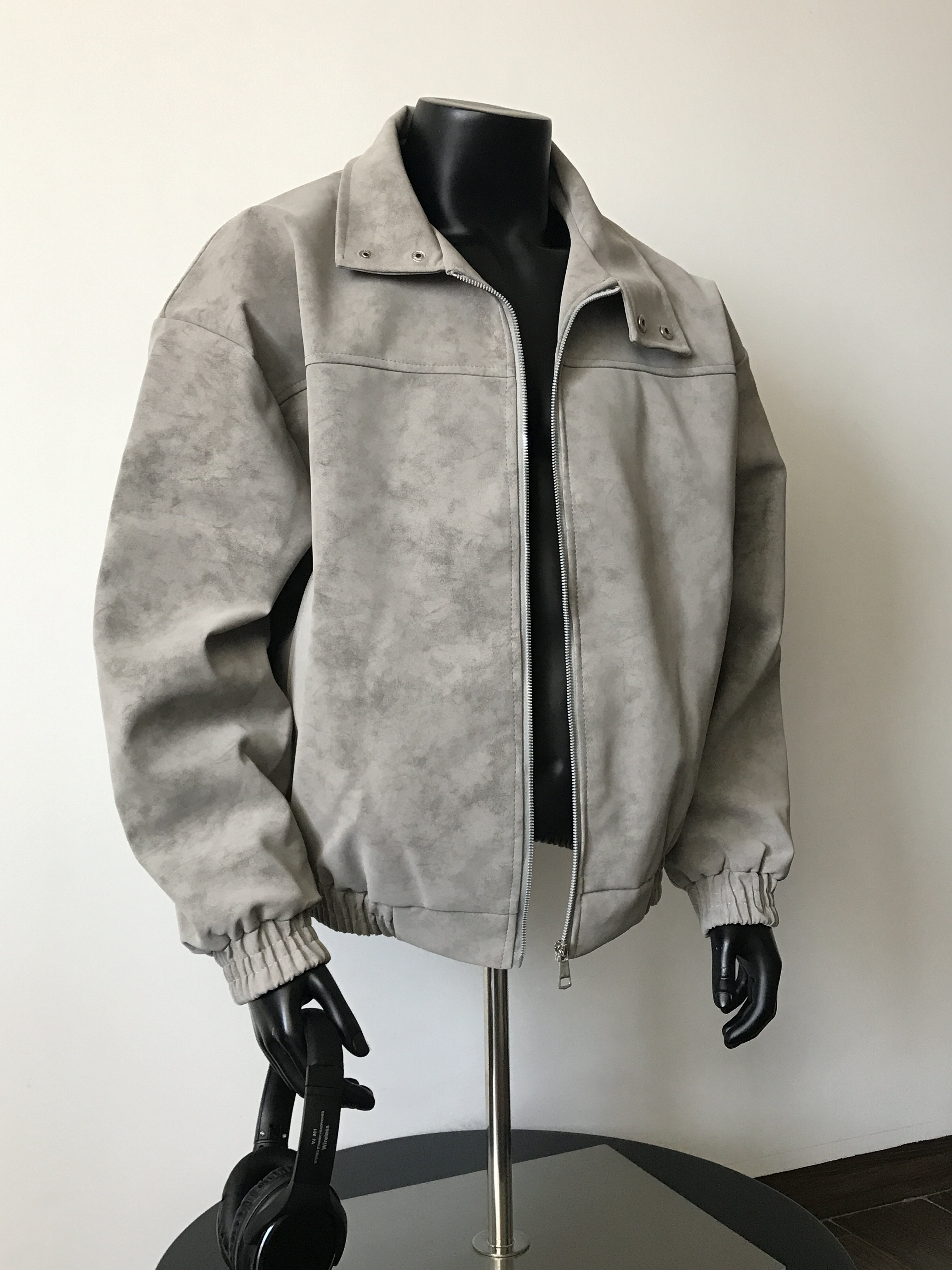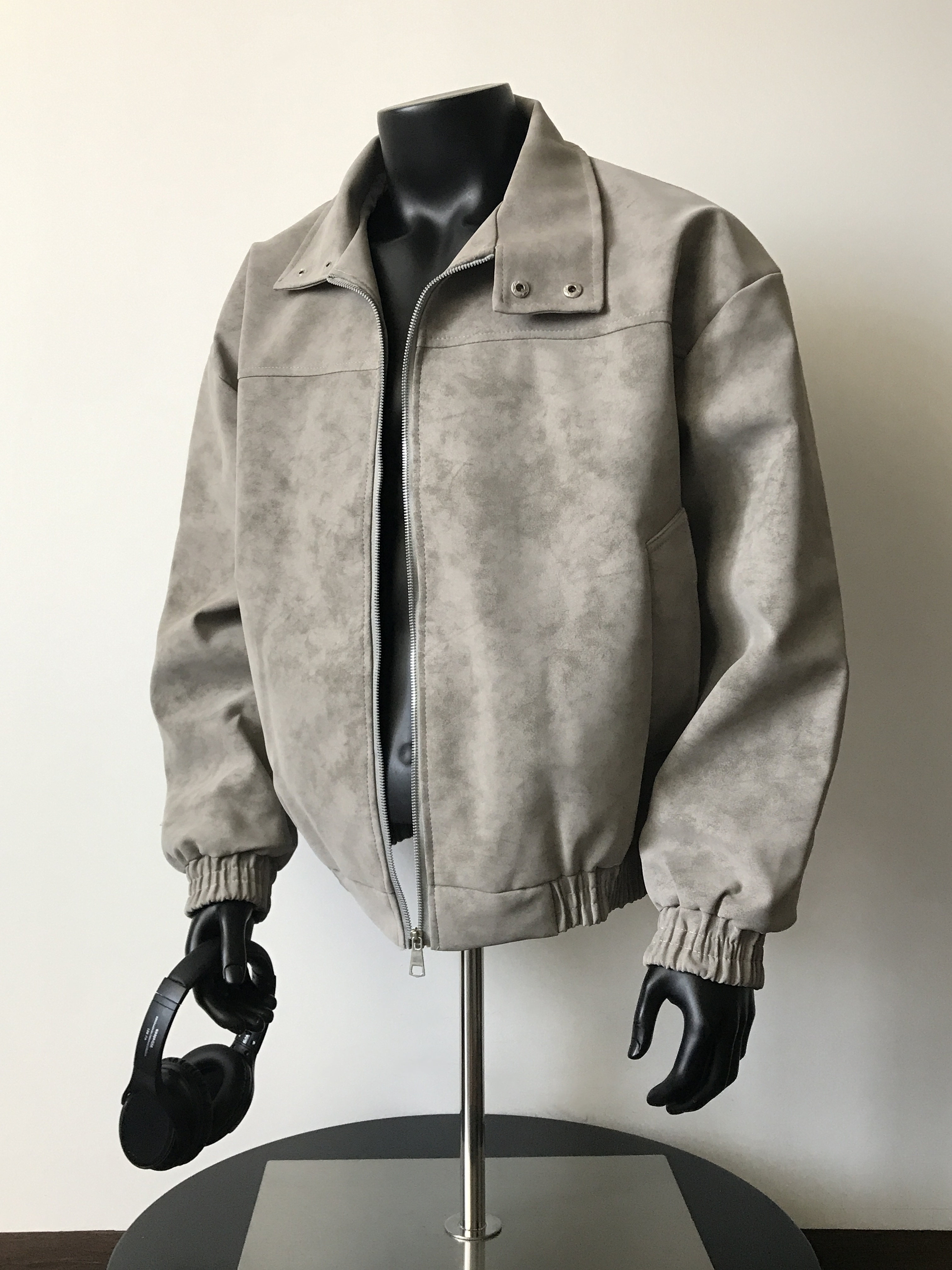 2025 Handsome Retro Stand-Collar Gray Leather Jacket for Men, Spring American Cleanfit Jacket, Loose Casual Trendy