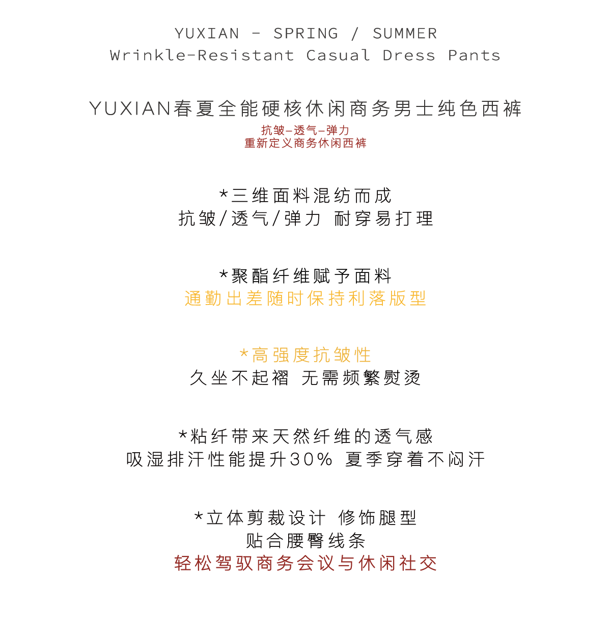 Yuxian All-Purpose, Hard-Wearing, Easy-Care, Wrinkle-Resistant Casual Business Dress Pants, Slim Straight-Leg Men's Summer All-Season Style
