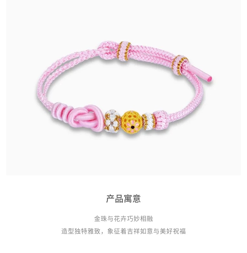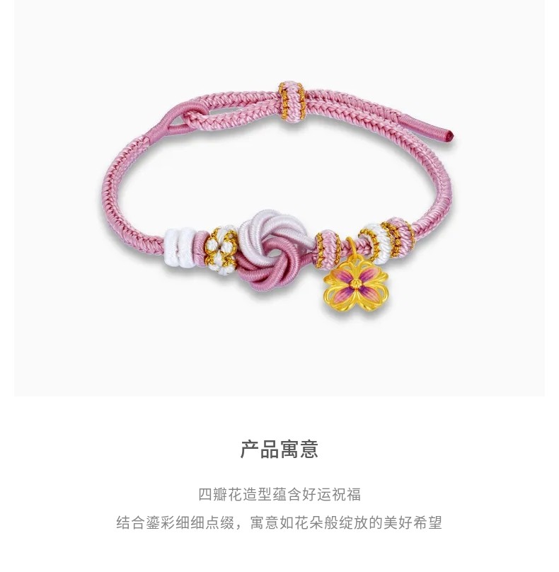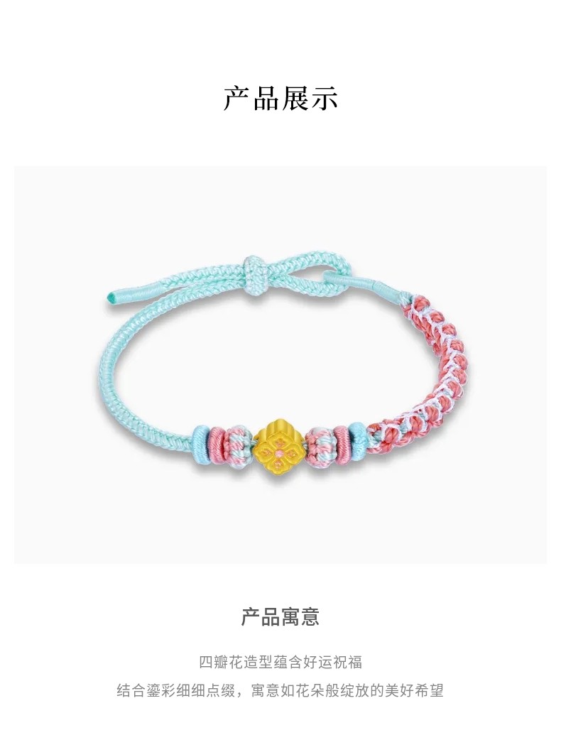 Lao Fengxiang Blossoming Fortune Floral Gilded Gold Pure Gold Bracelet Hand-Woven Holiday New Year Gift