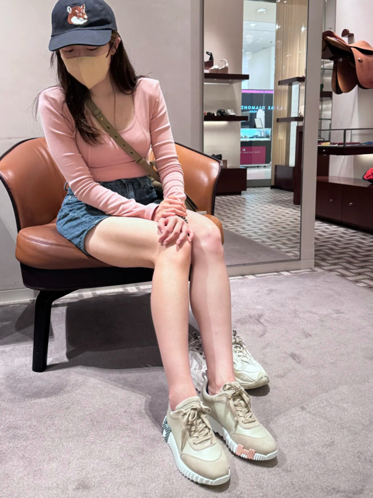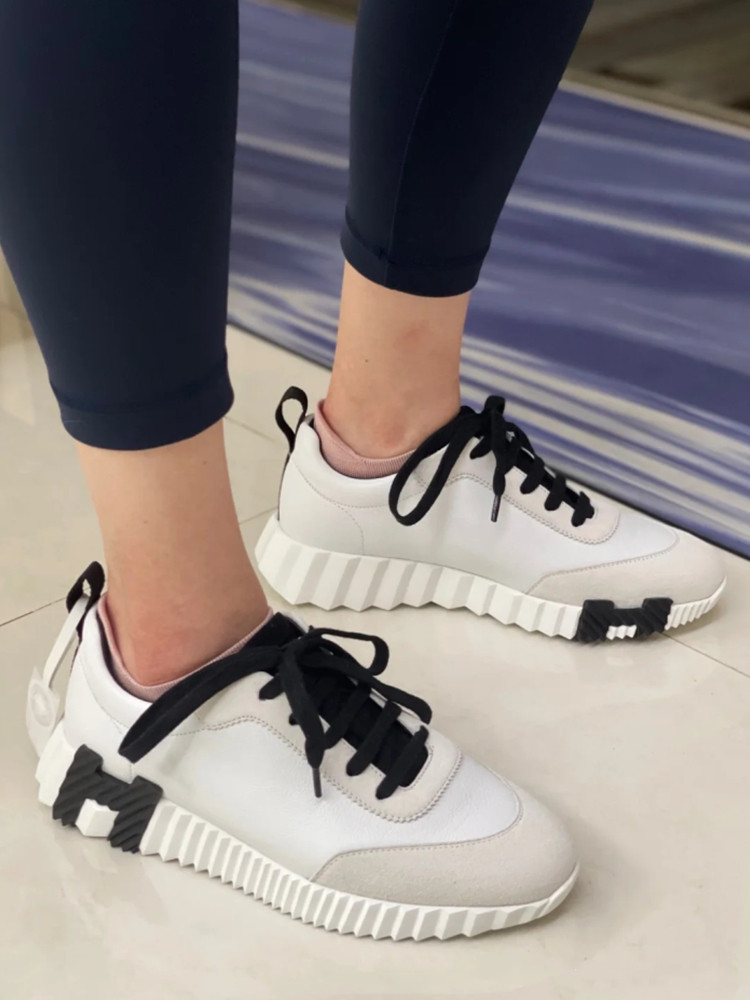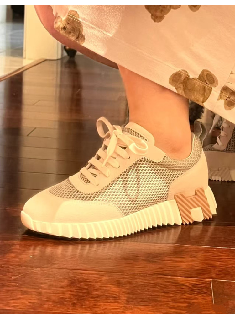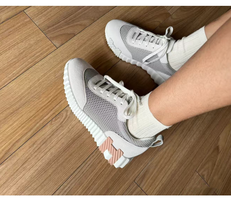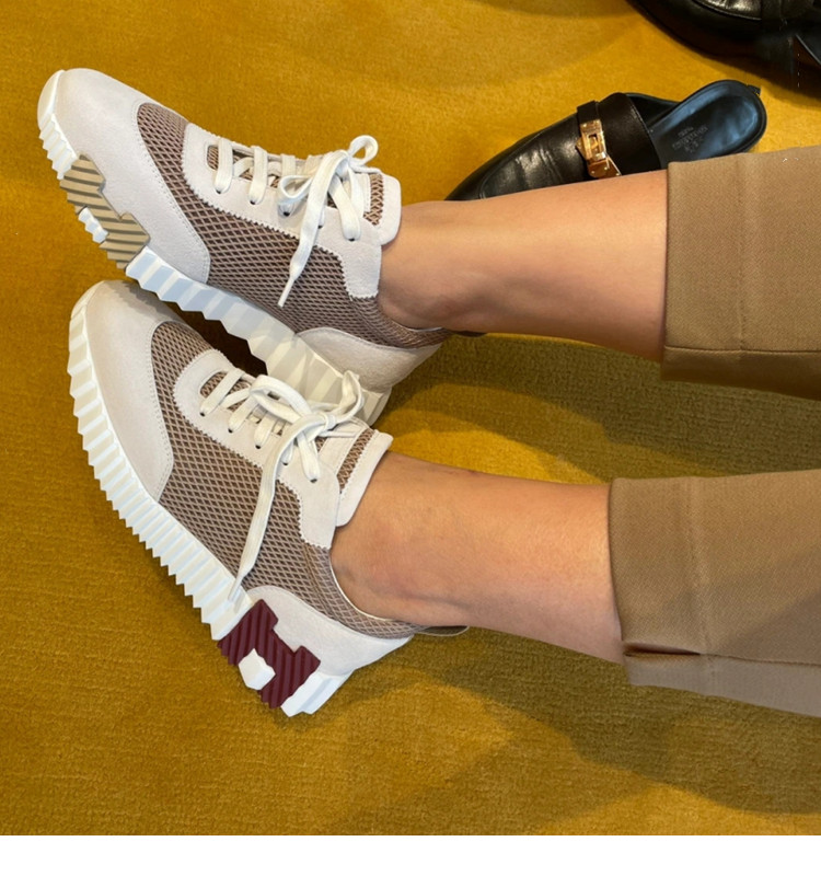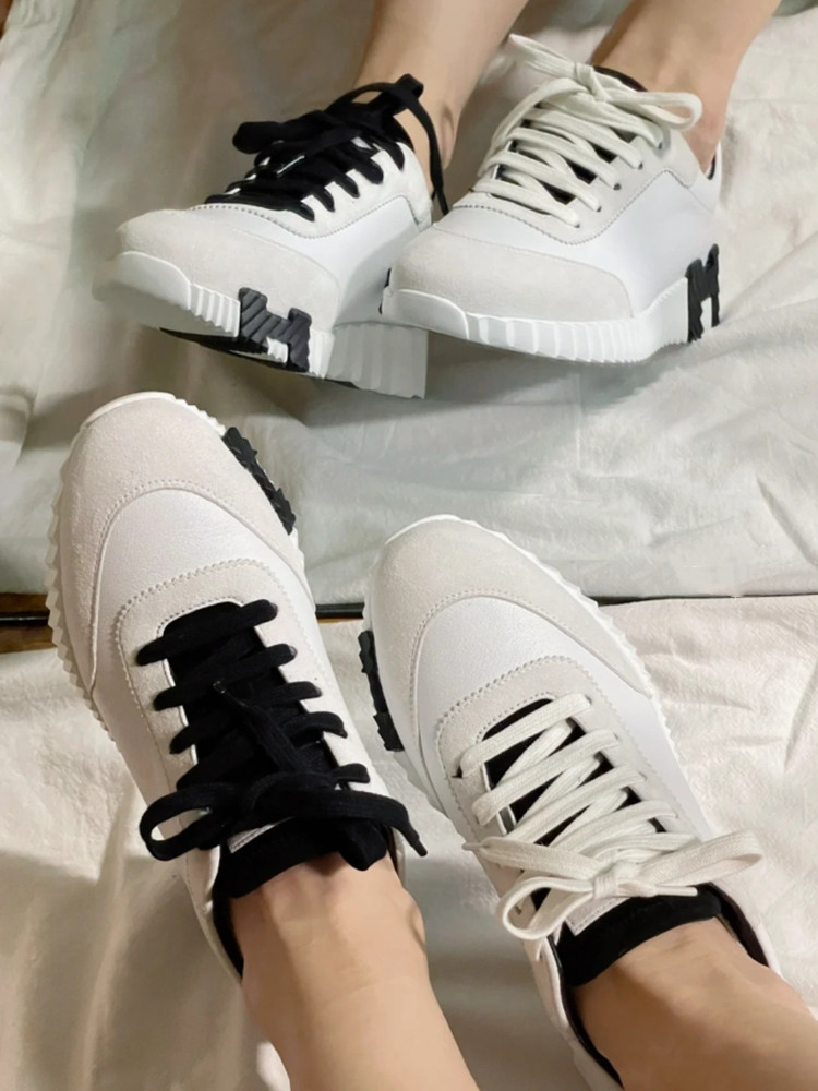 Bouncing Sneakers for Women Spring and Summer 2025 New H Brand Retro Casual Shoes Couple Thick-Soled White Shoes for Women