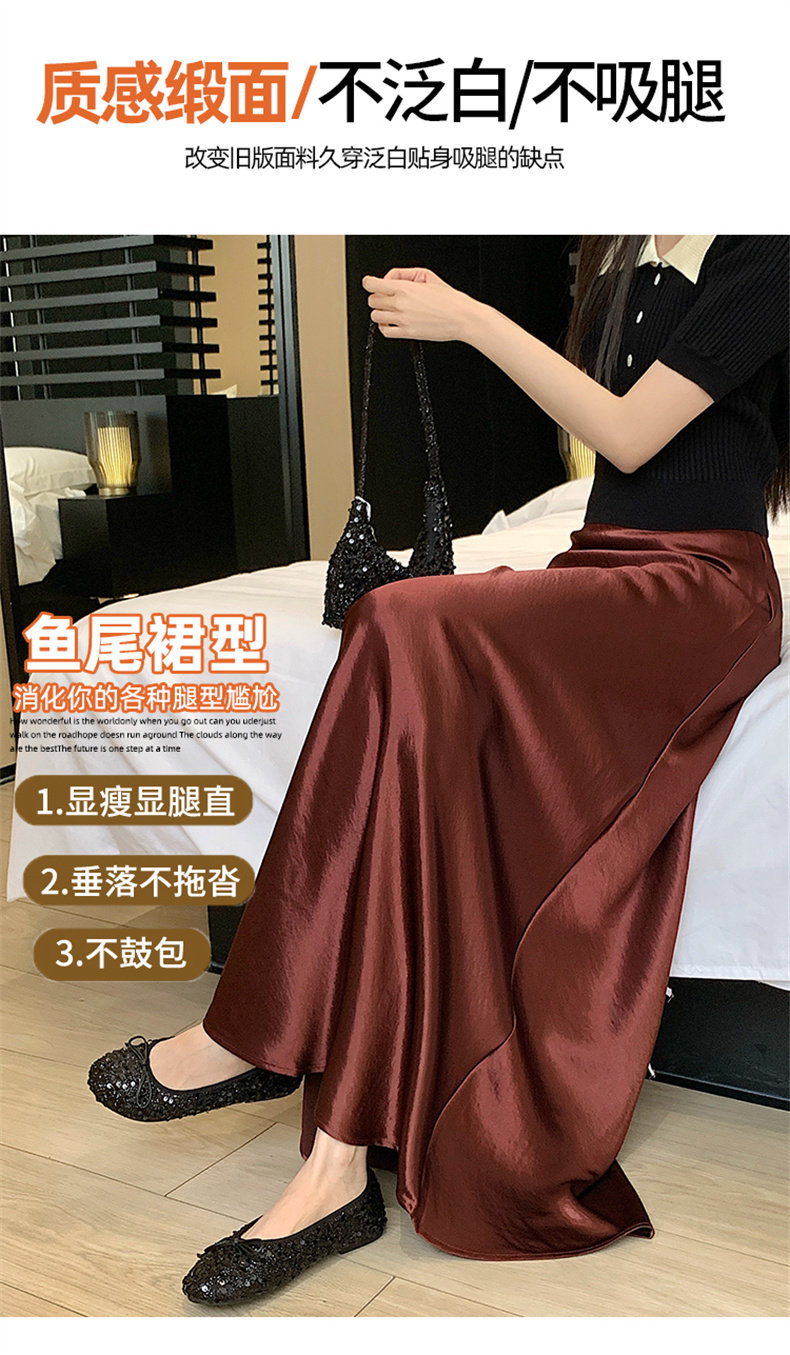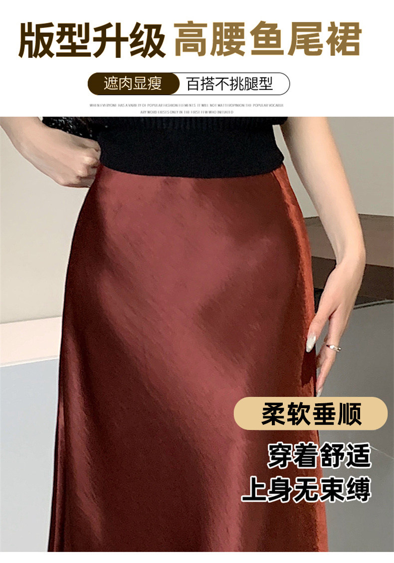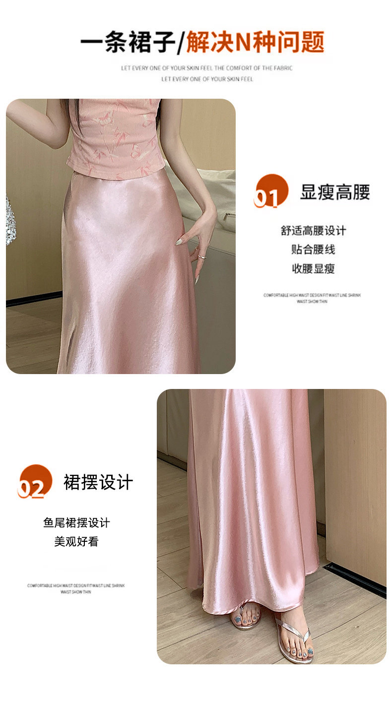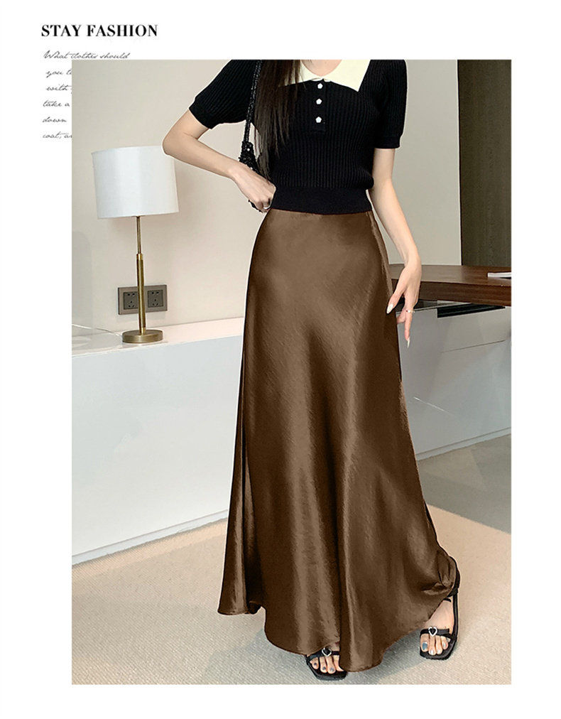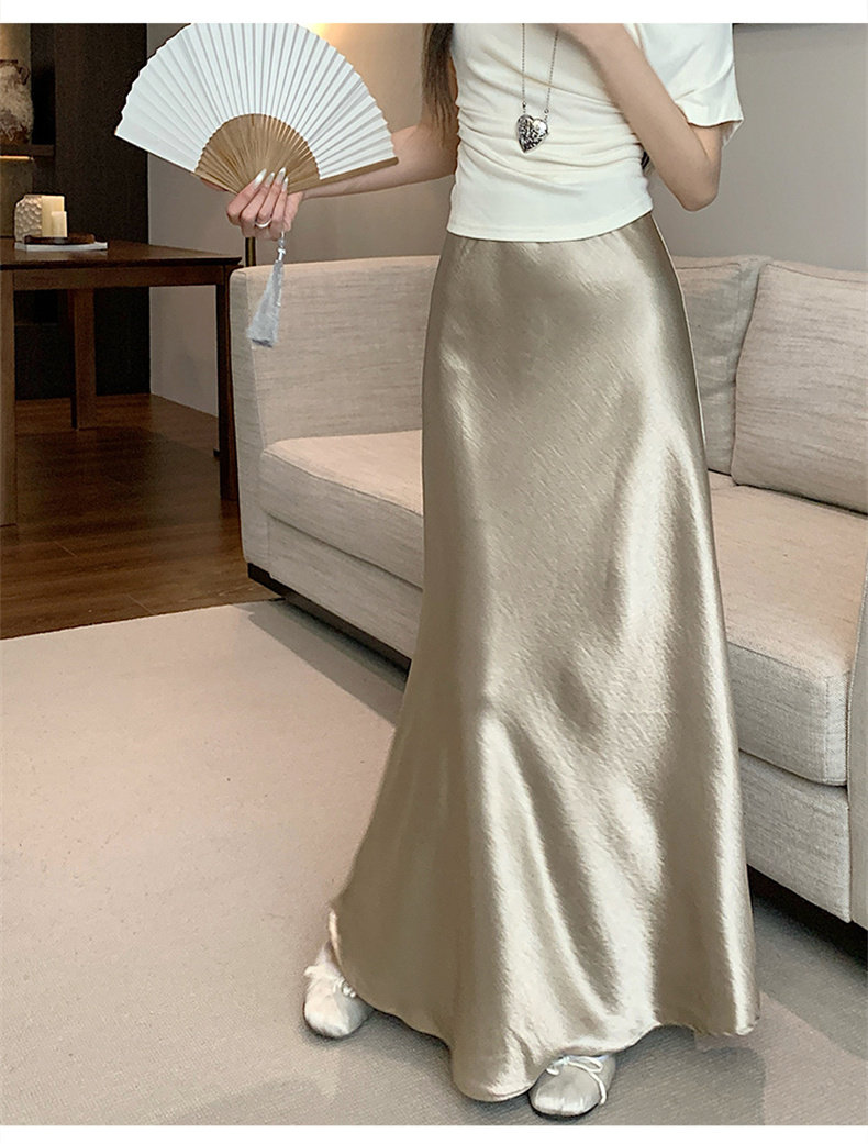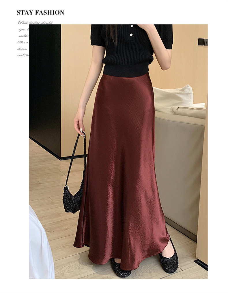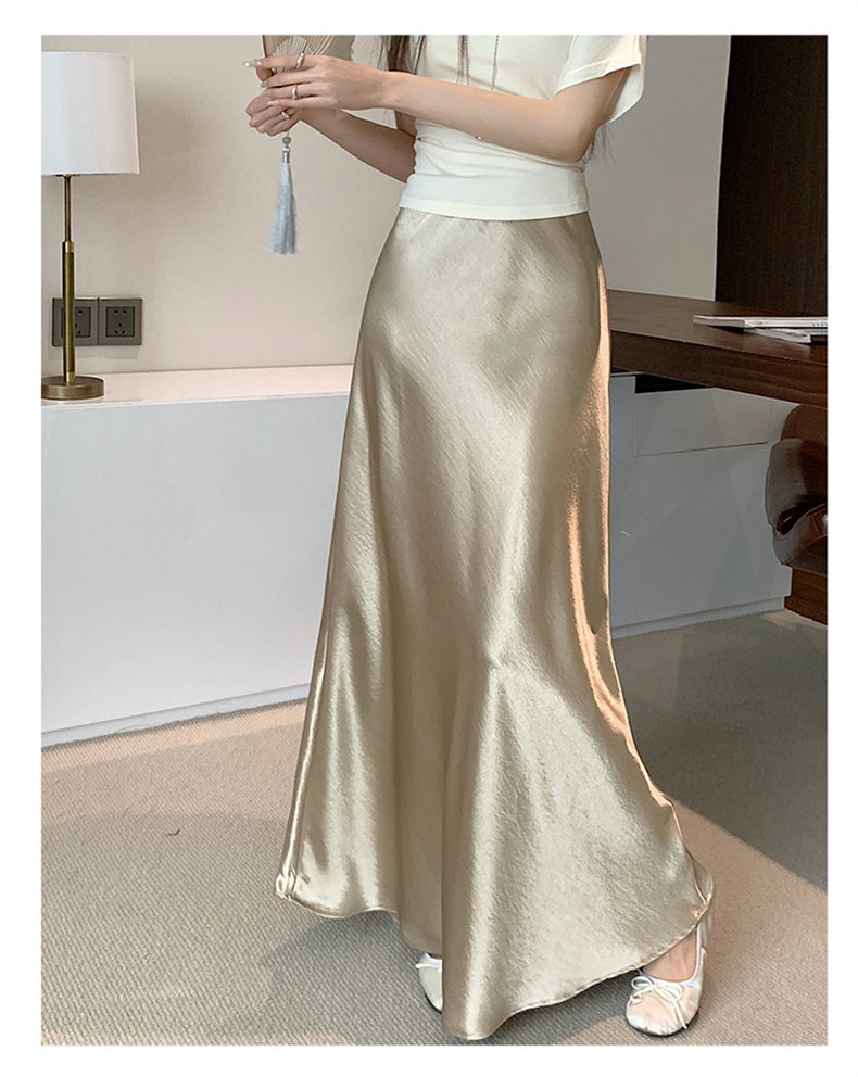 High-End Acetate Satin Fishtail Skirt for Women, Summer, Petite, High-Waisted, Slimming, Drapey, A-Line, Bodycon Long Skirt