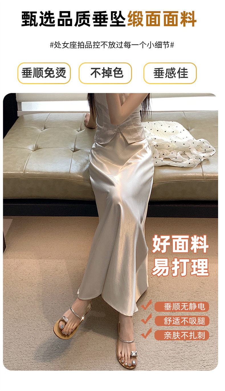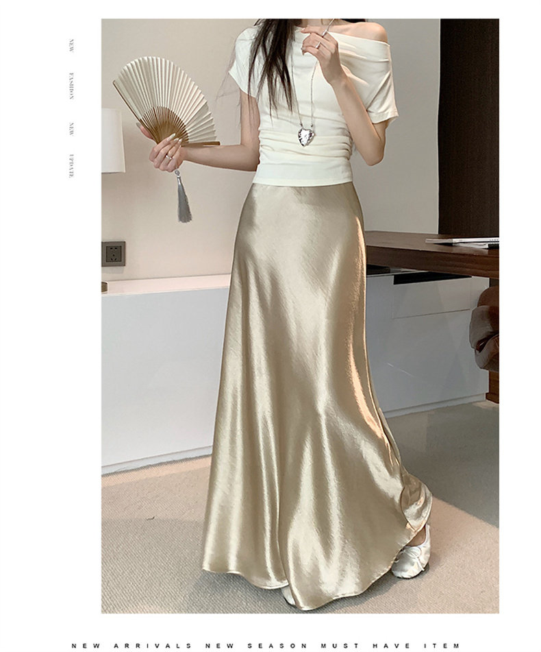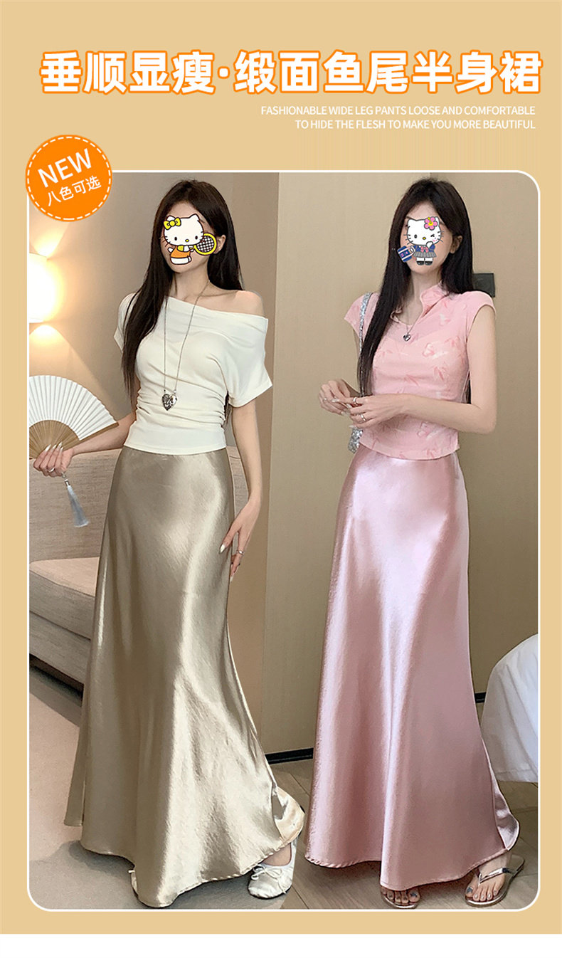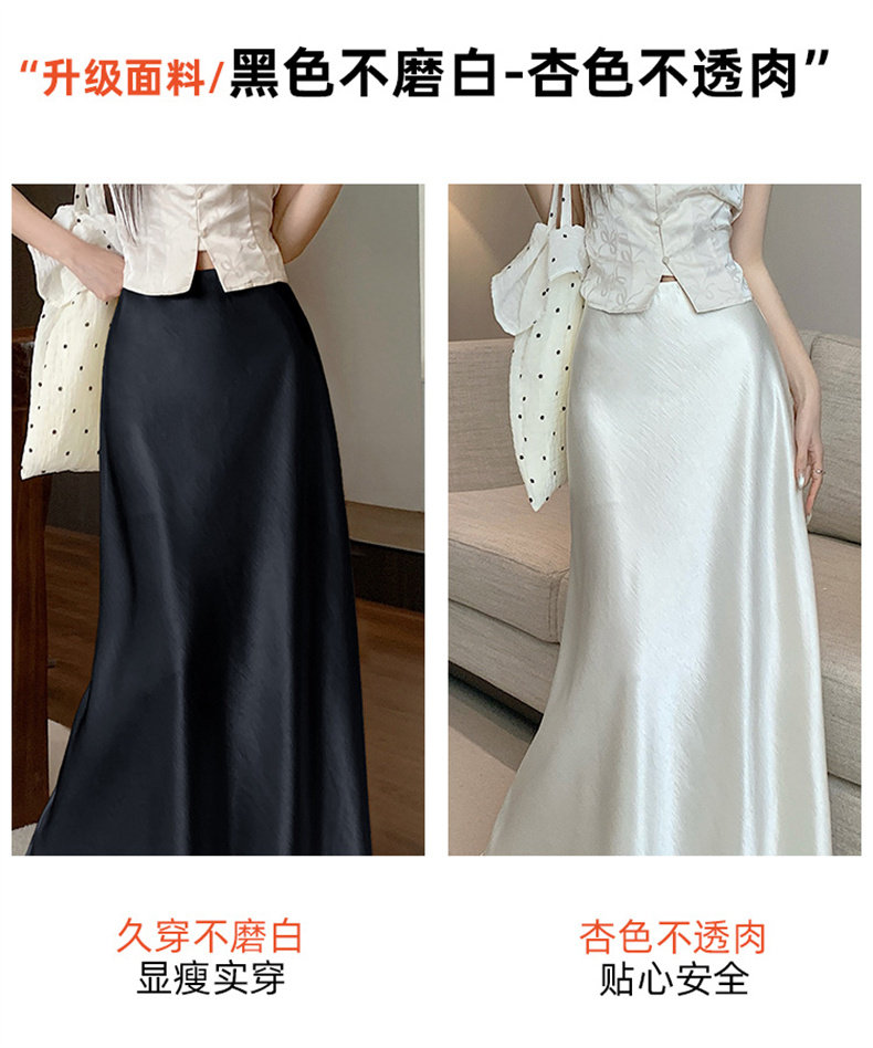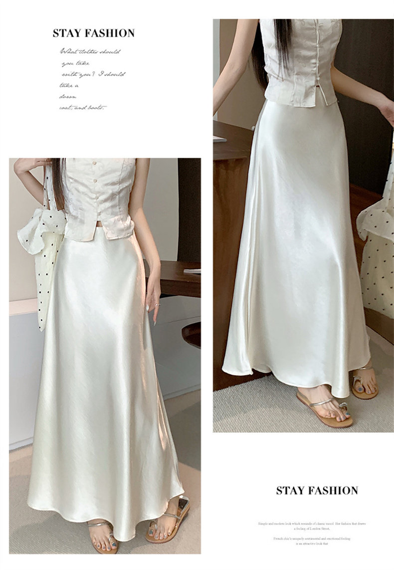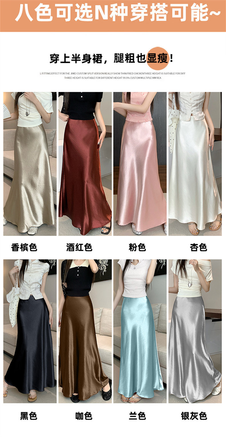 High-End Acetate Satin Fishtail Skirt for Women, Summer, Petite, High-Waisted, Slimming, Drapey, A-Line, Bodycon Long Skirt