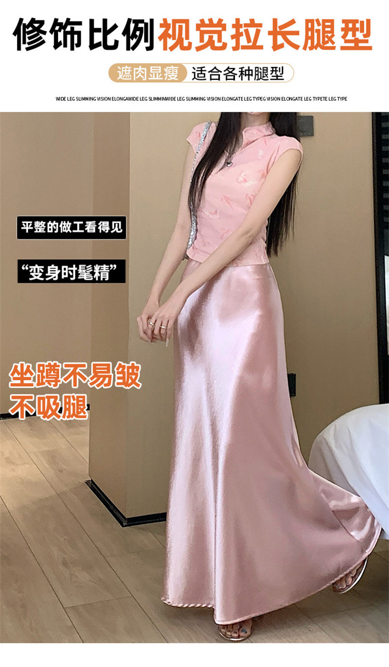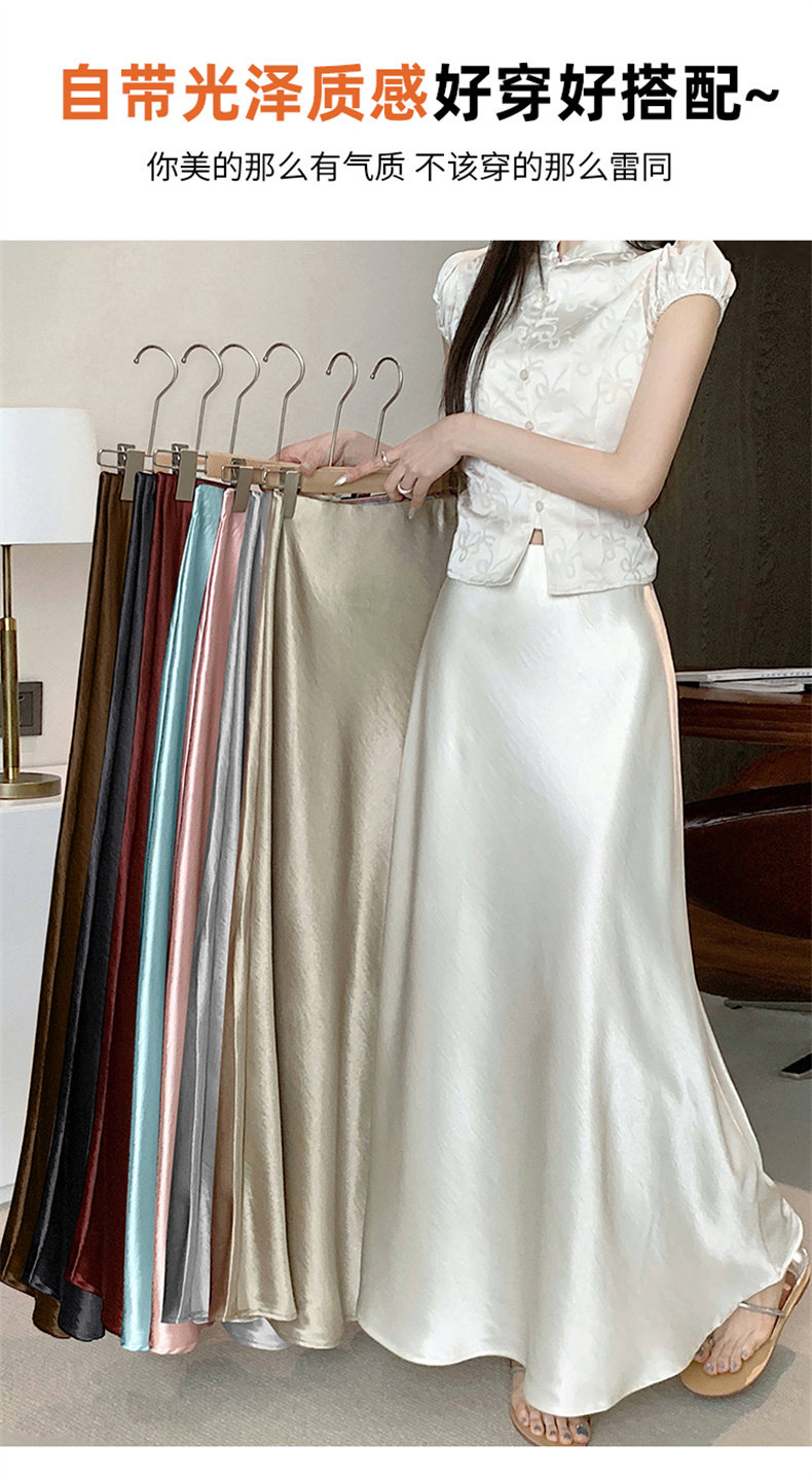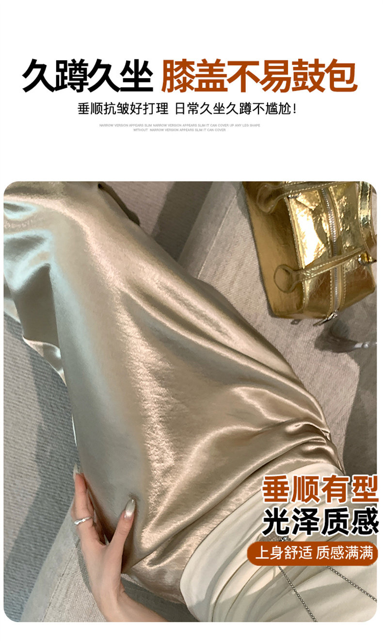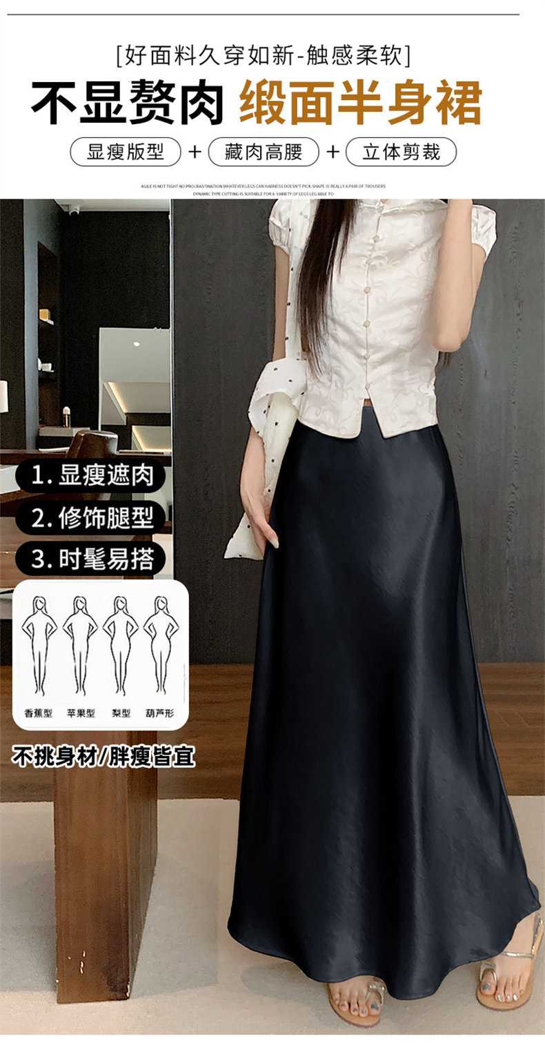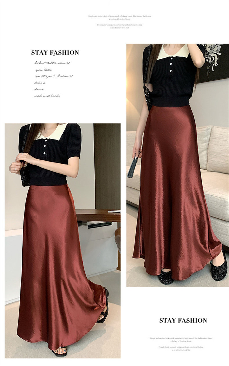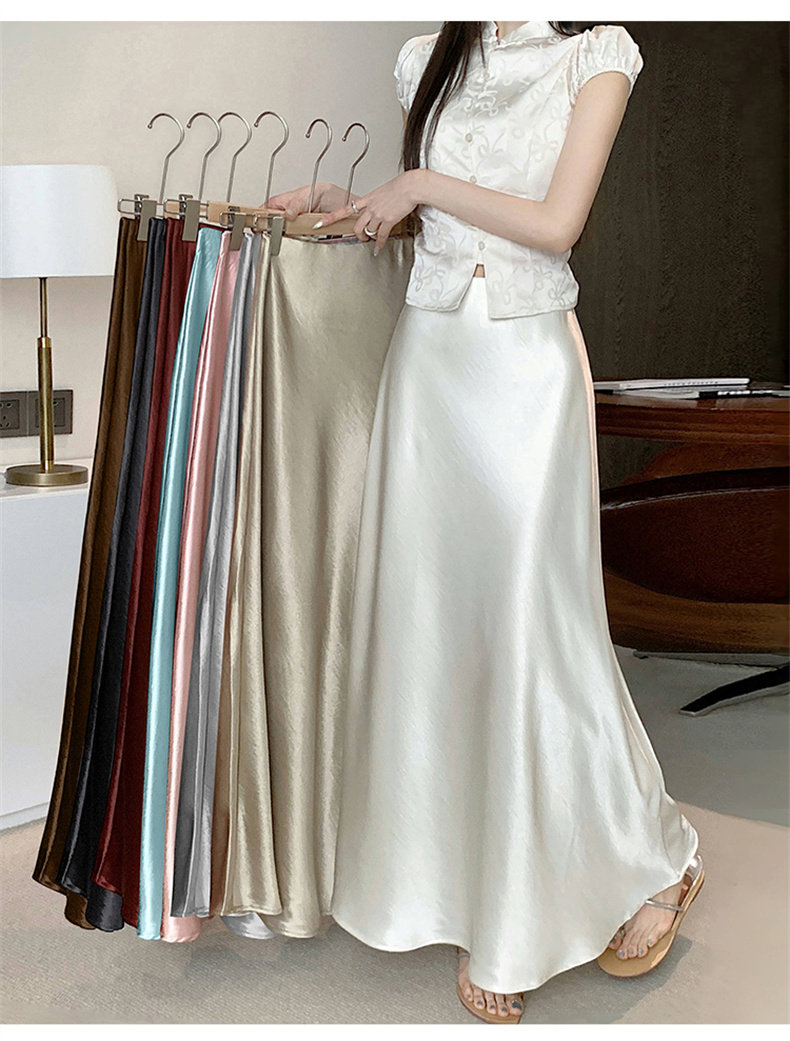 High-End Acetate Satin Fishtail Skirt for Women, Summer, Petite, High-Waisted, Slimming, Drapey, A-Line, Bodycon Long Skirt