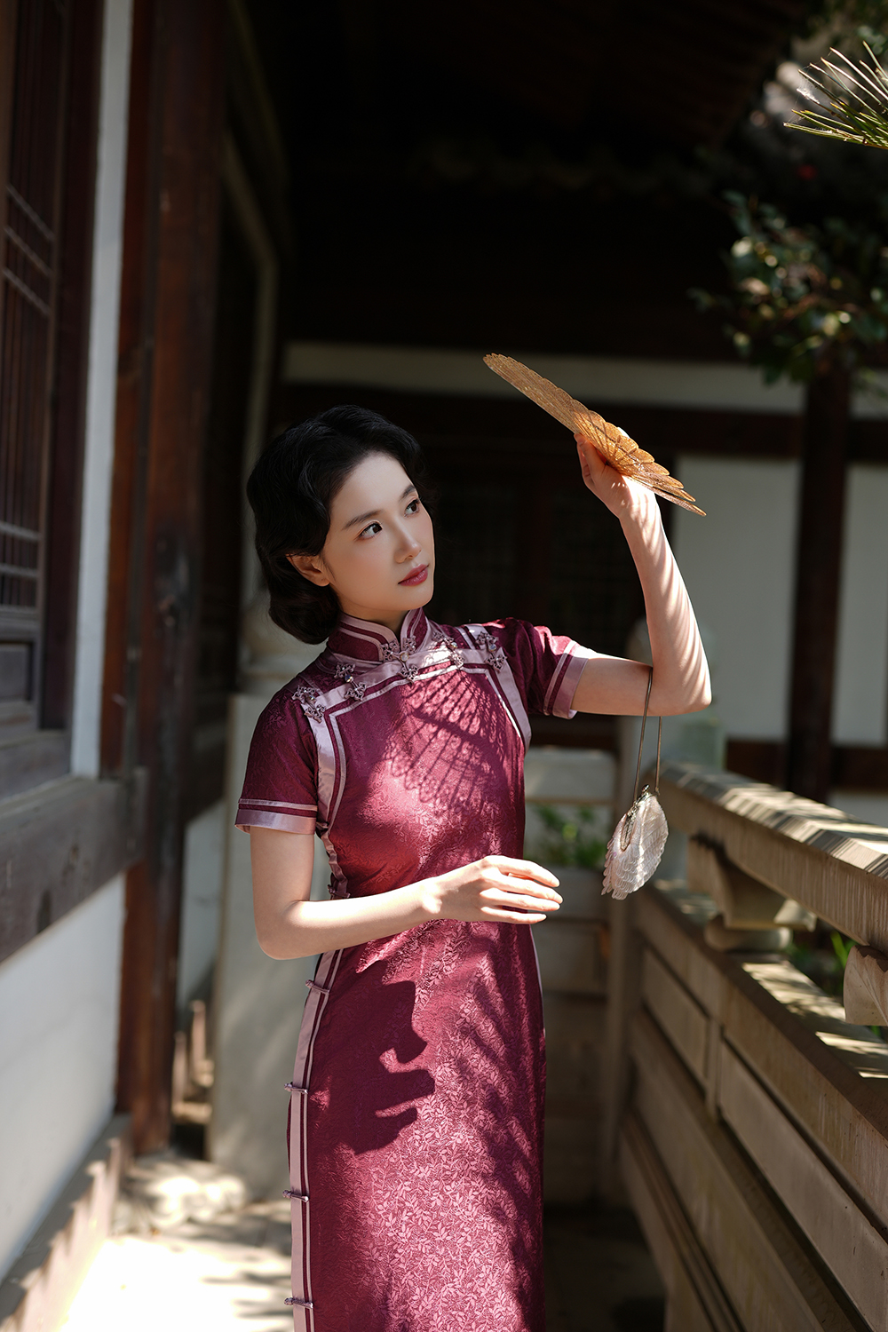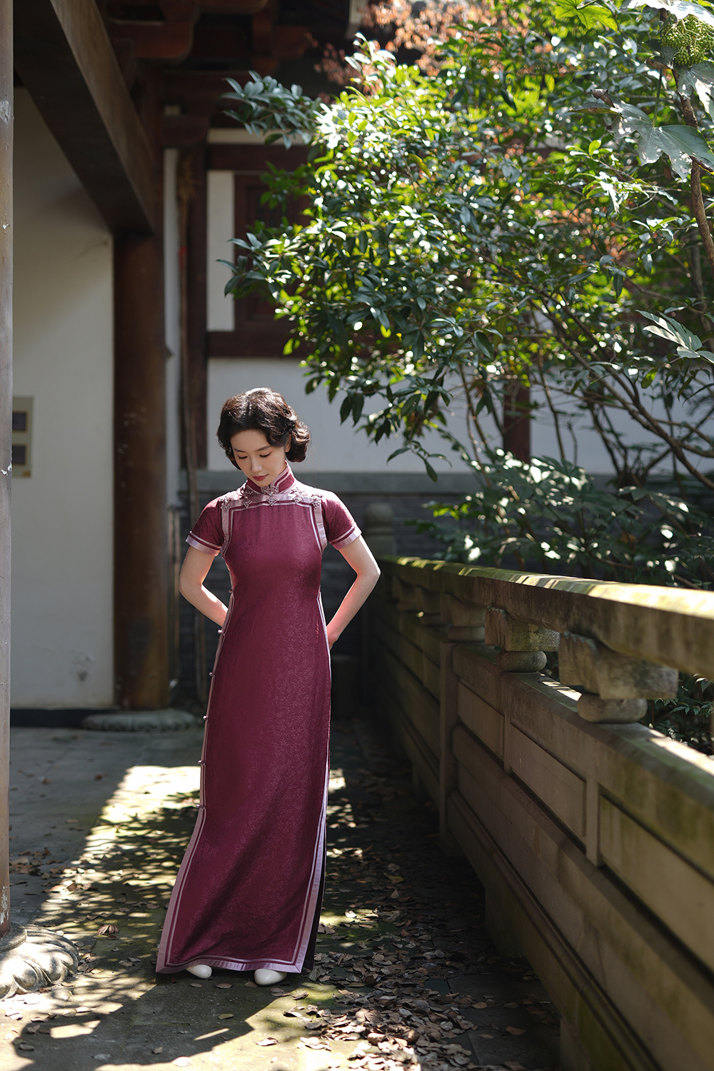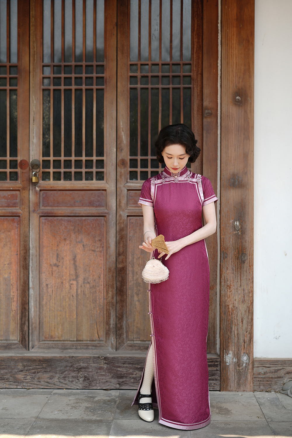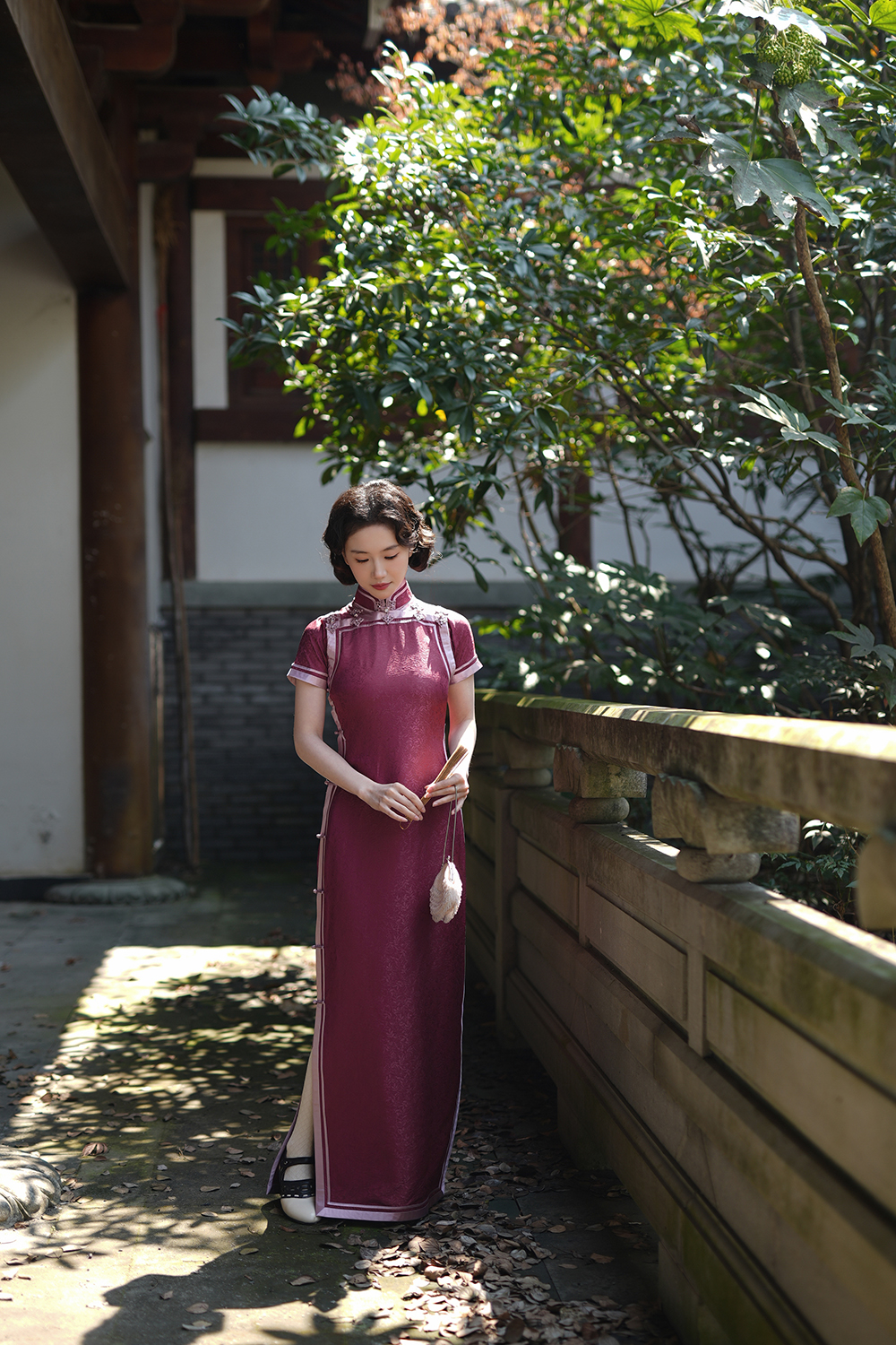 Plum Color | Limited-Time Offer: Nan Tian Pattern Flat-Cut Cheongsam, Silk Blend 30S, Not Machine Washable, 29 Momme.
