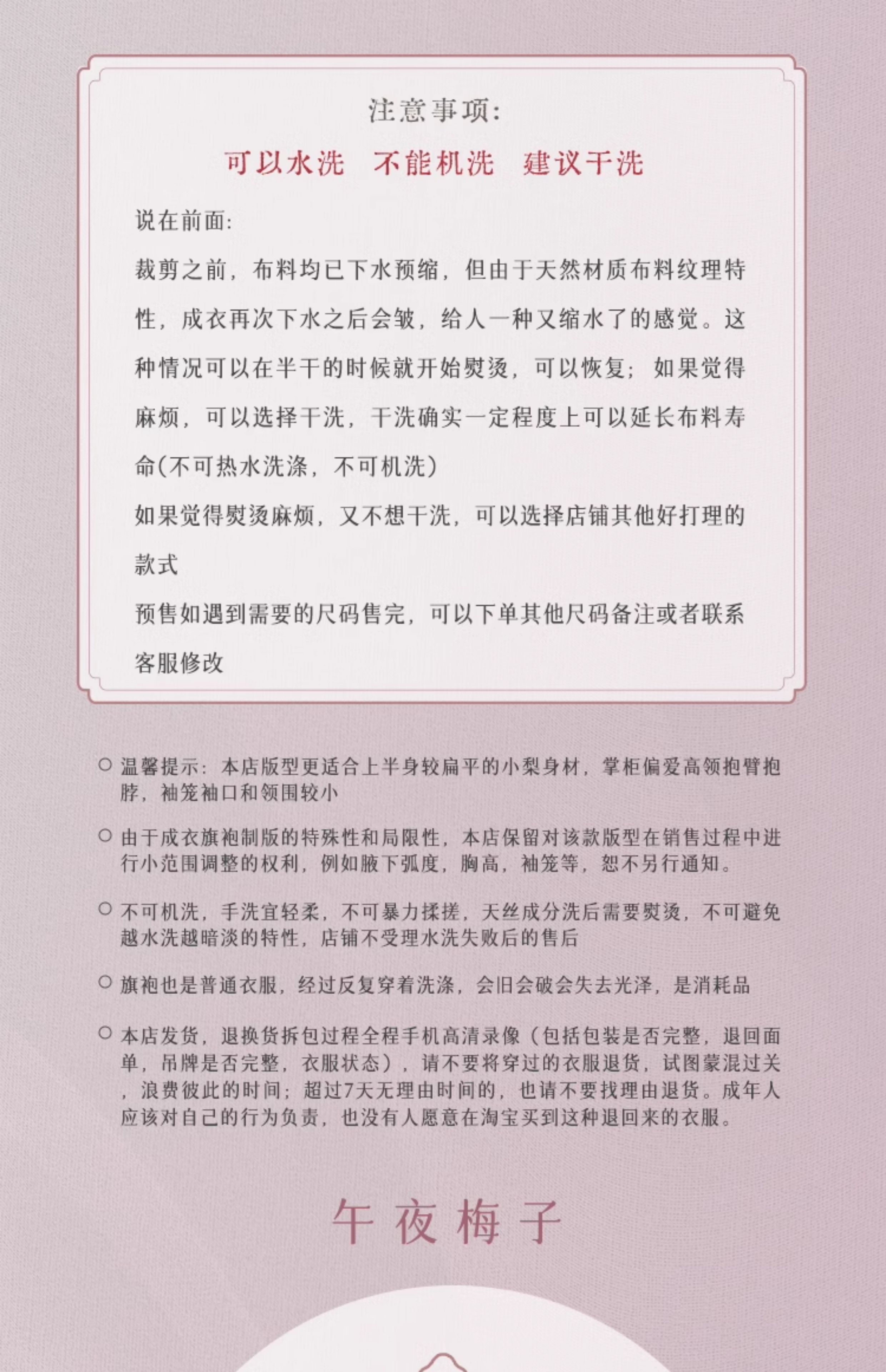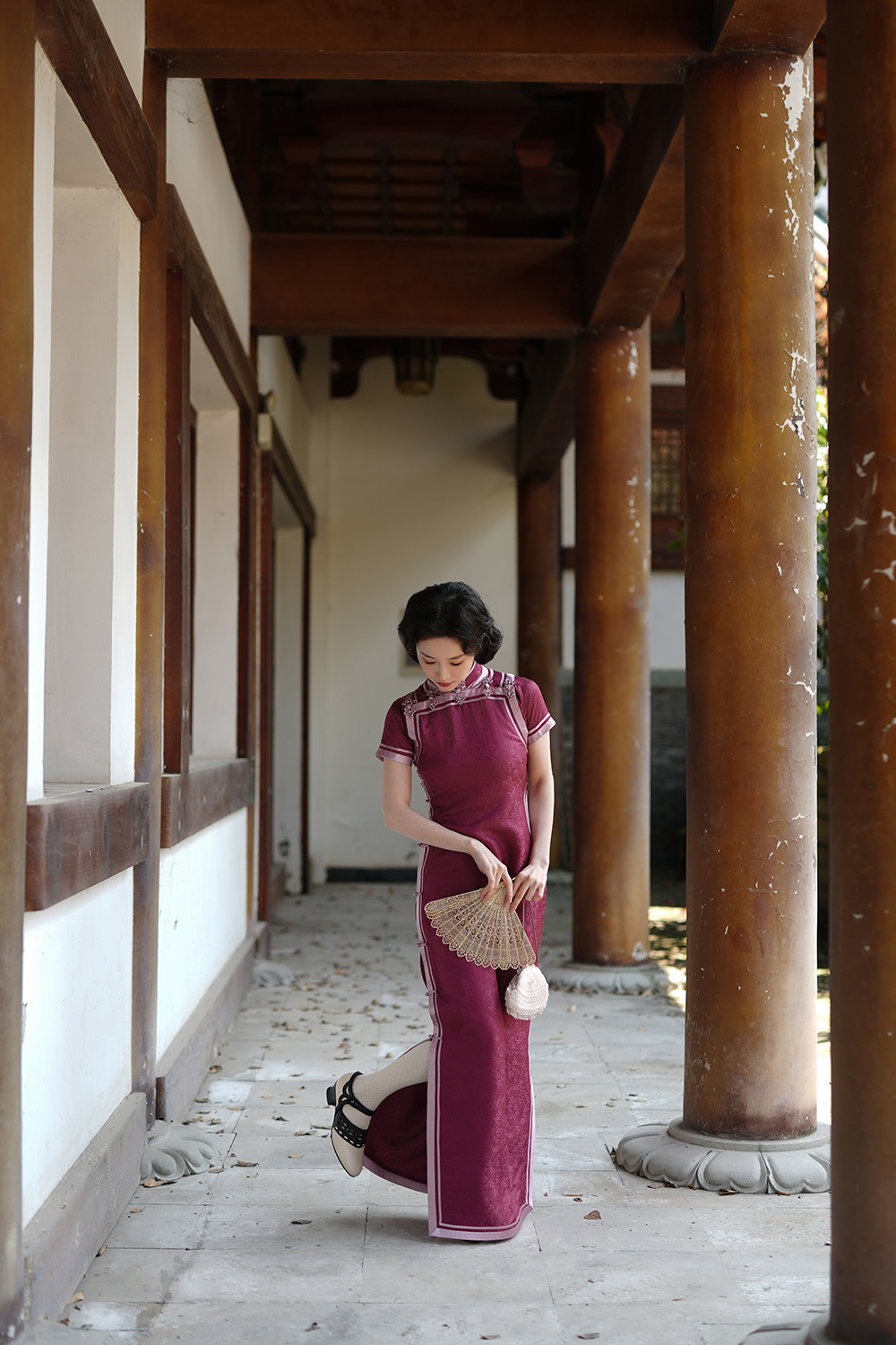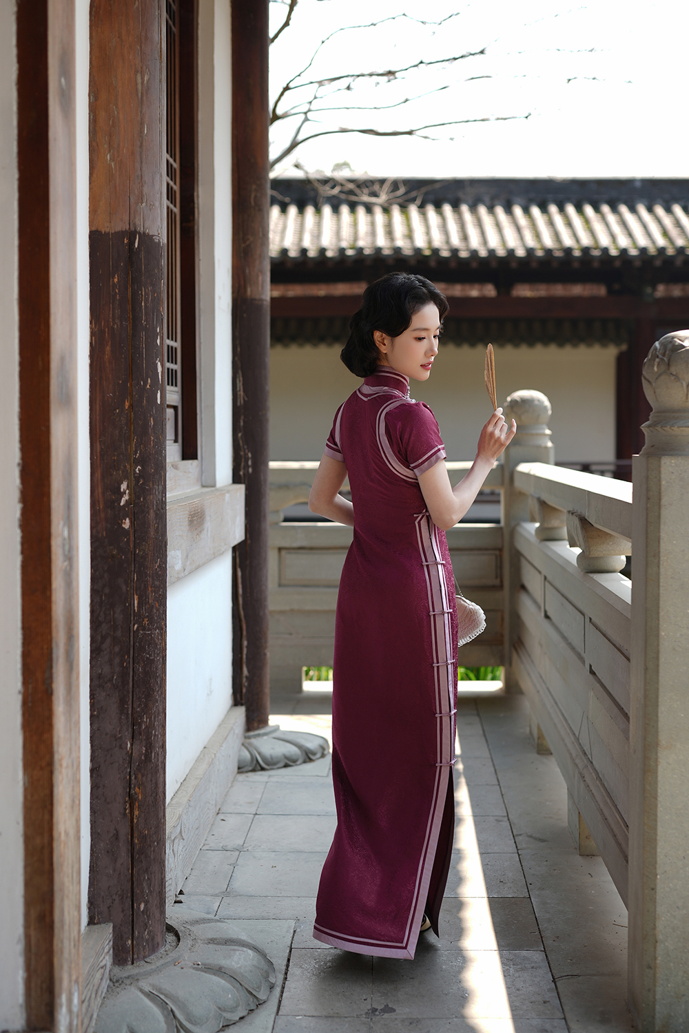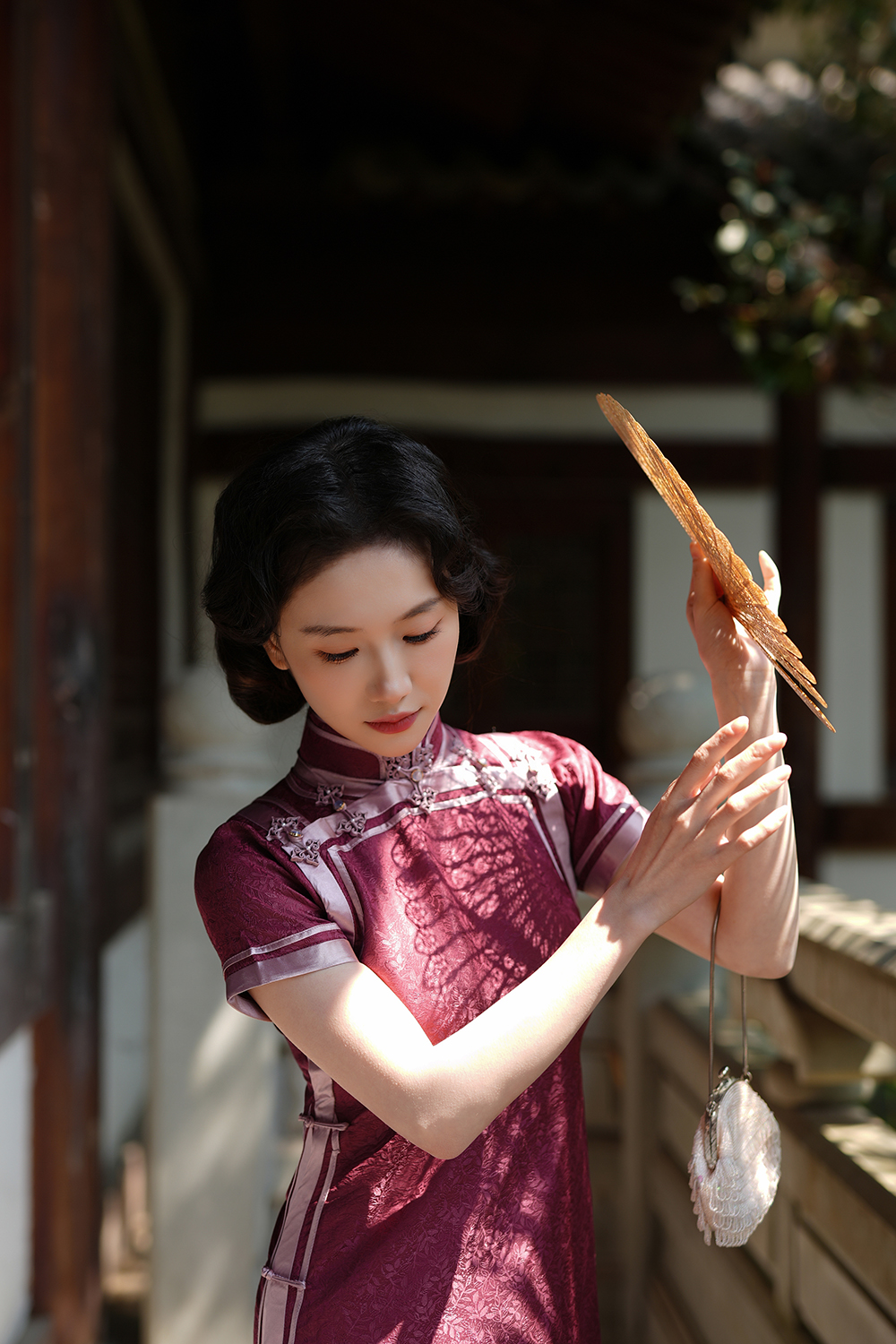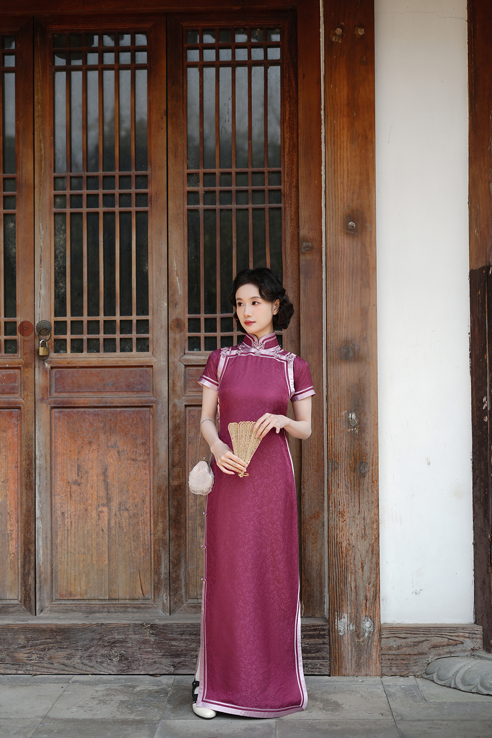 Plum Color | Limited-Time Offer: Nan Tian Pattern Flat-Cut Cheongsam, Silk Blend 30S, Not Machine Washable, 29 Momme.