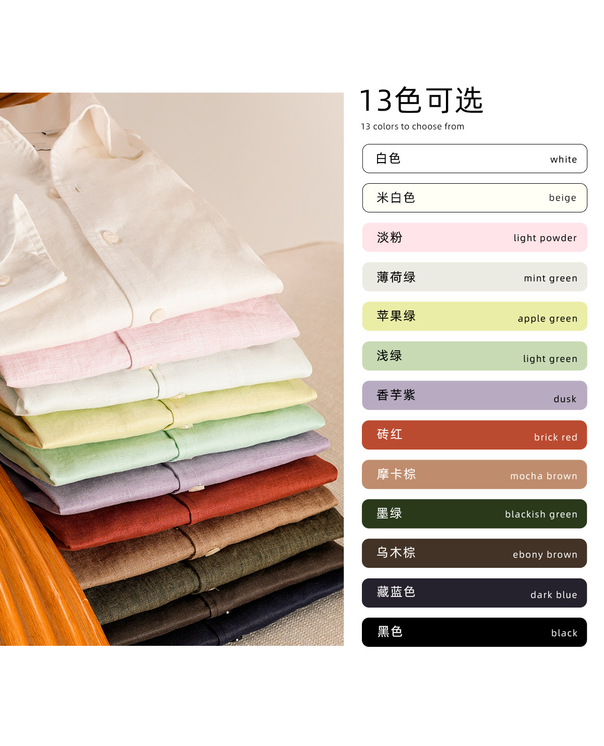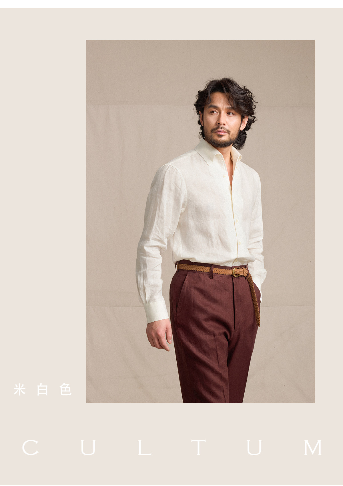 【Machine Washable French 14-Count Long Linen】Cultum Refreshing and Breathable Italian-Style One-Collar Long-Sleeve Shirt for Men