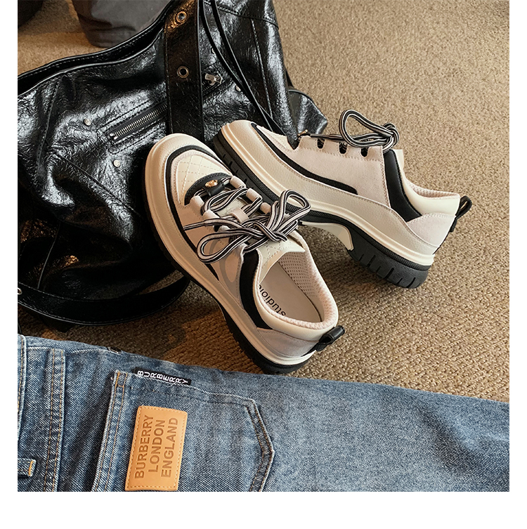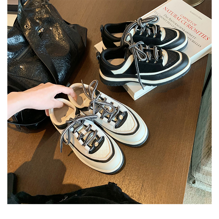 Grape Mom Studiolee 4cm Thick-Soled Panda Color-Blocked Plush-Lined Chanel-Style Versatile Casual Sneakers for Women