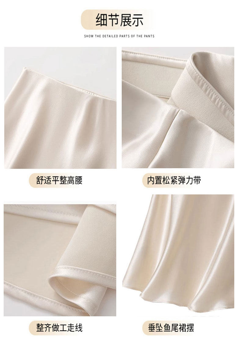 La Chapelle Silk Satin Skirt for Women, Spring and Summer White Acetate Long Skirt, Drapey Half Skirt, Bodycon Fishtail Skirt