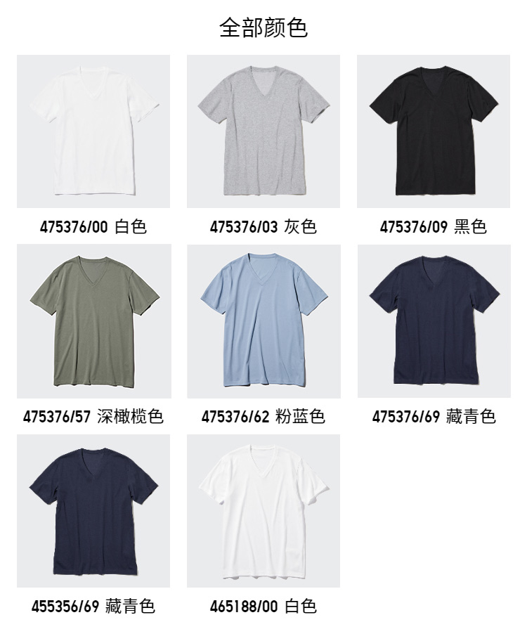 Uniqlo Men's and Women's Clothing Couple Versatile T-Shirt Quick-Drying V-Neck T-Shirt Casual Short-Sleeve 475376 455356