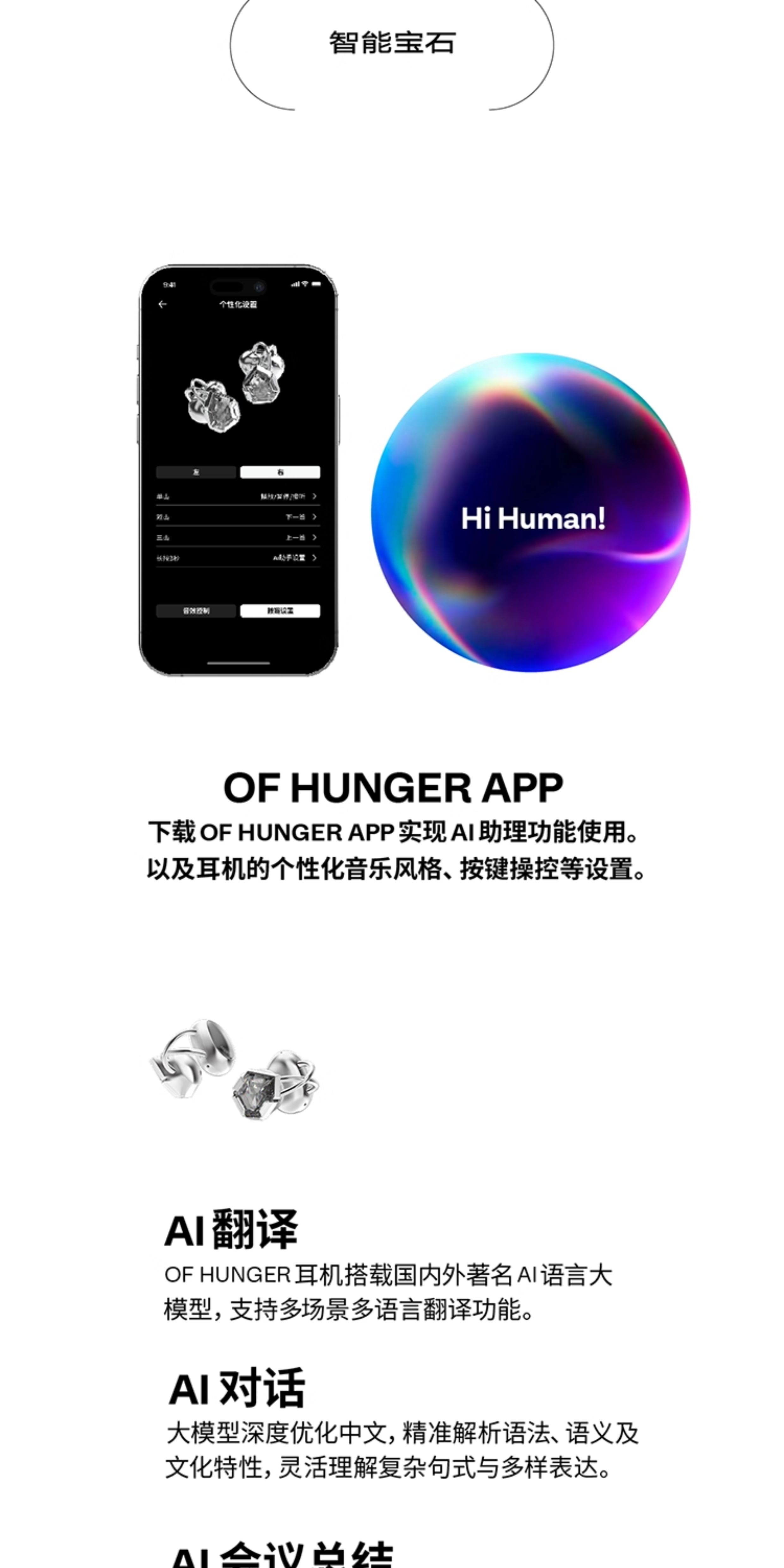 Star OF HUNGER Grey Zircon Digital Gem AI Accessories Bluetooth Headset Open OHClip