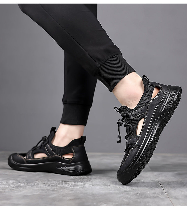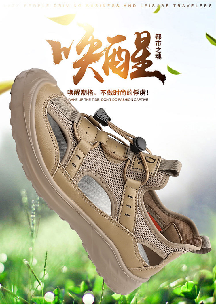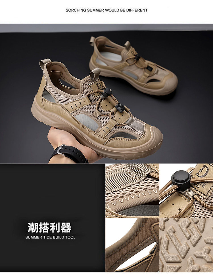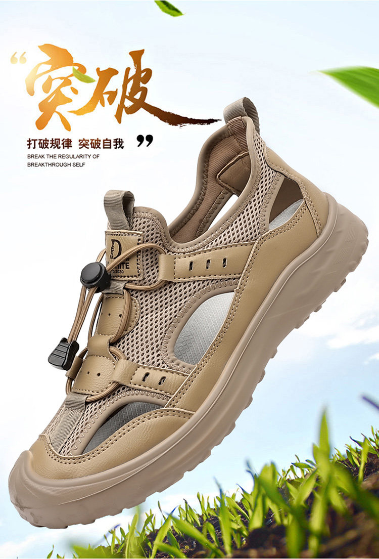 Woodpecker New Summer Soft-Soled Sandals for Men, Hollow Breathable Mesh Clogs, Casual Beach Shoes for Men, Trendy