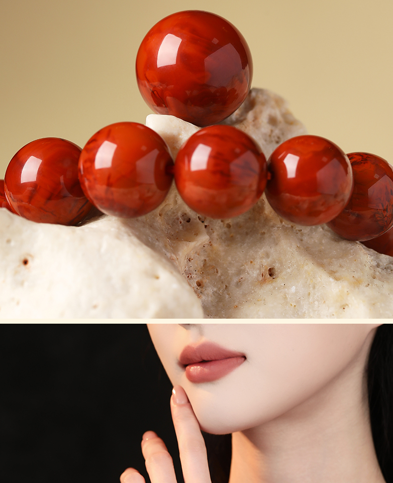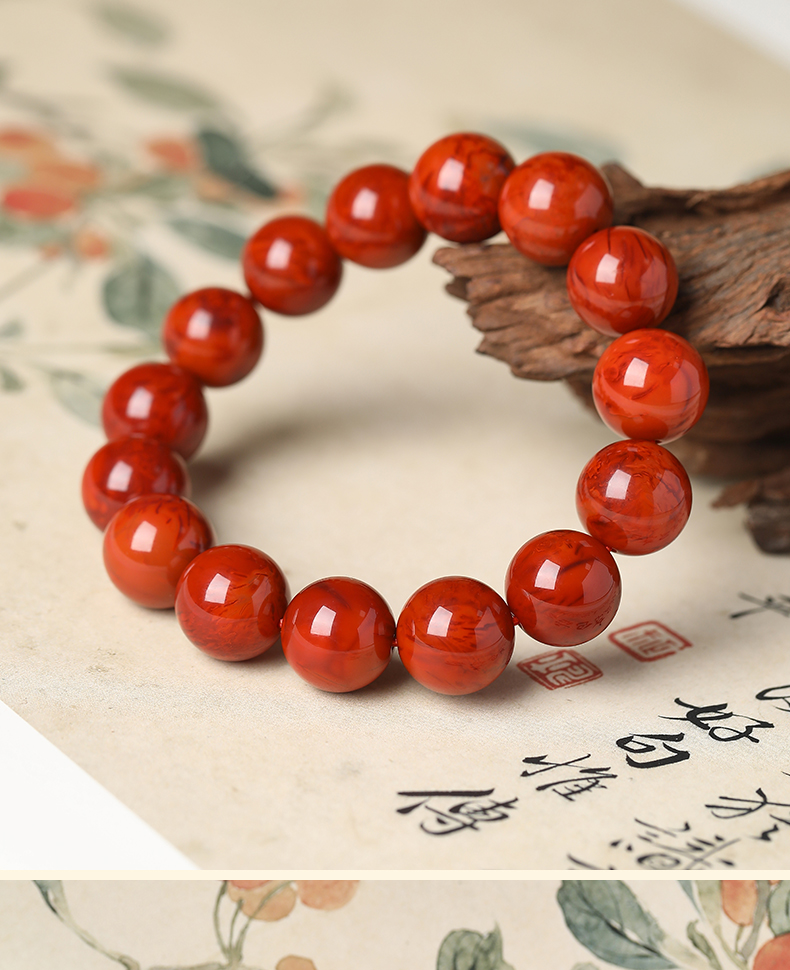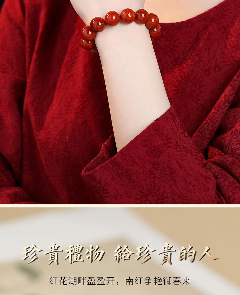 Natural Southern Red Agate Bracelet, Sichuan Material, Old Mine Material, Two-Tone Single-Circle Bracelet, Nine-Mouth Flame Pattern, Full Color, Full Flesh, Buddhist Beads