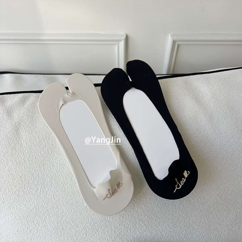 Spring and Summer Ice Silk Cotton Sole Shallow Mouth Invisible Split-Toe Socks Two-Toe Socks with Anti-Slip Grip Thin Cool Tabi Women's Socks