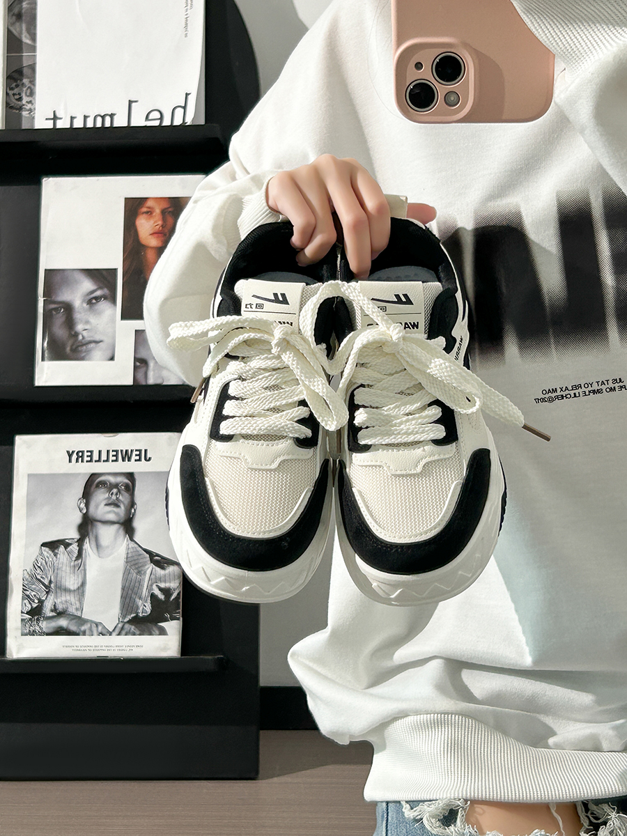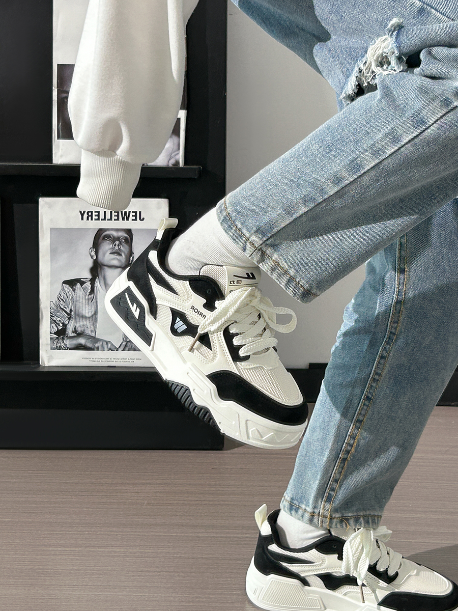 Pull-Back Mesh Breathable Black and White Sneakers for Boys, Autumn Casual Couple Shoes, Unisex Super Popular Sports Shoes for Men