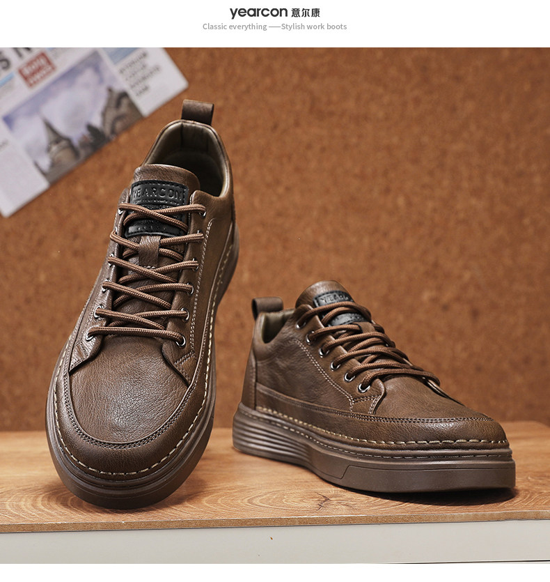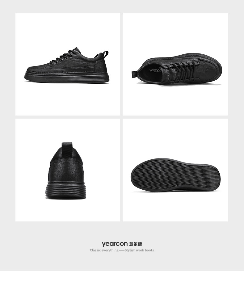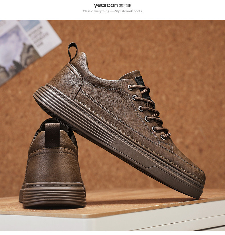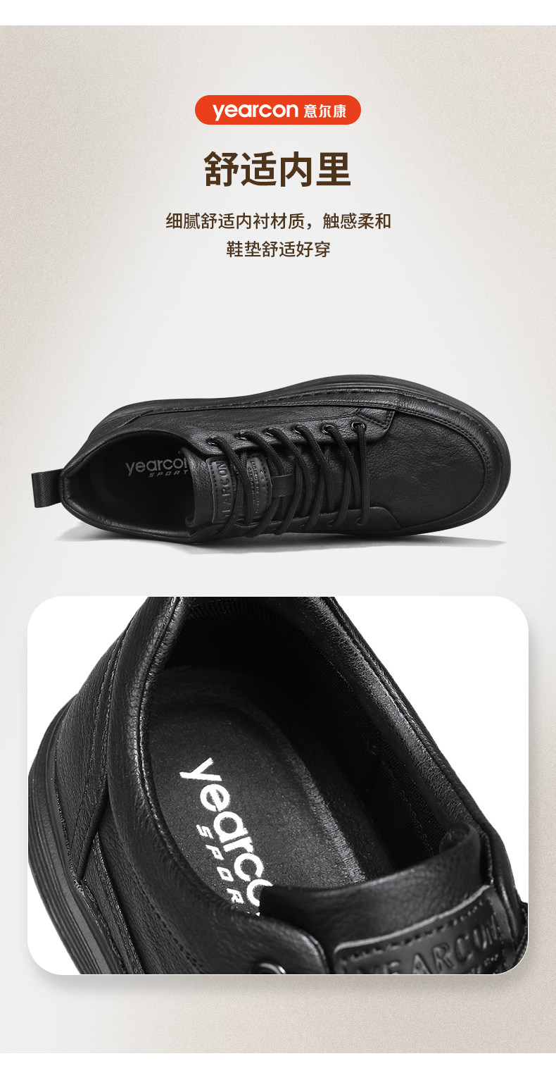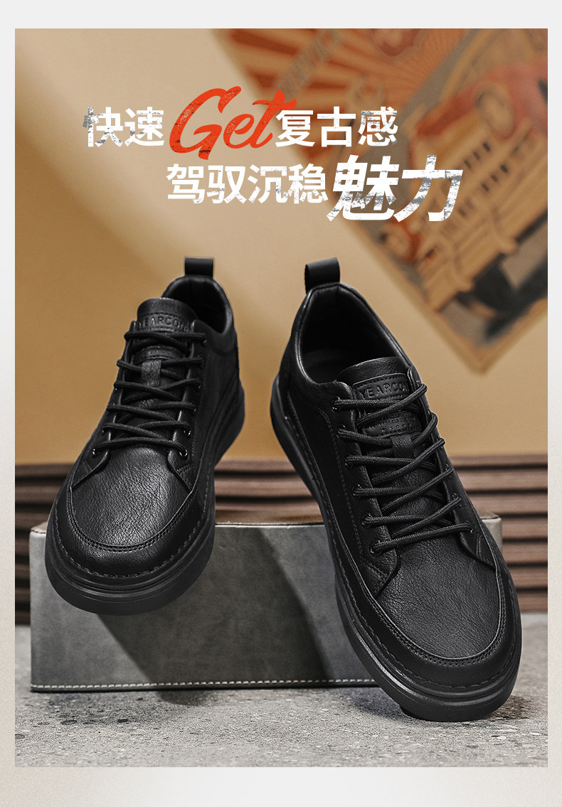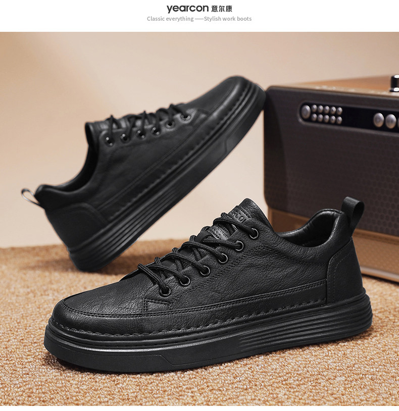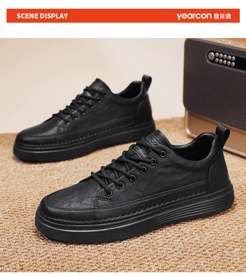 Yierkan Men's Shoes 2025 New Spring Black Casual Flat Shoes Men's Leather Shoes Waterproof Work Non-Slip Versatile