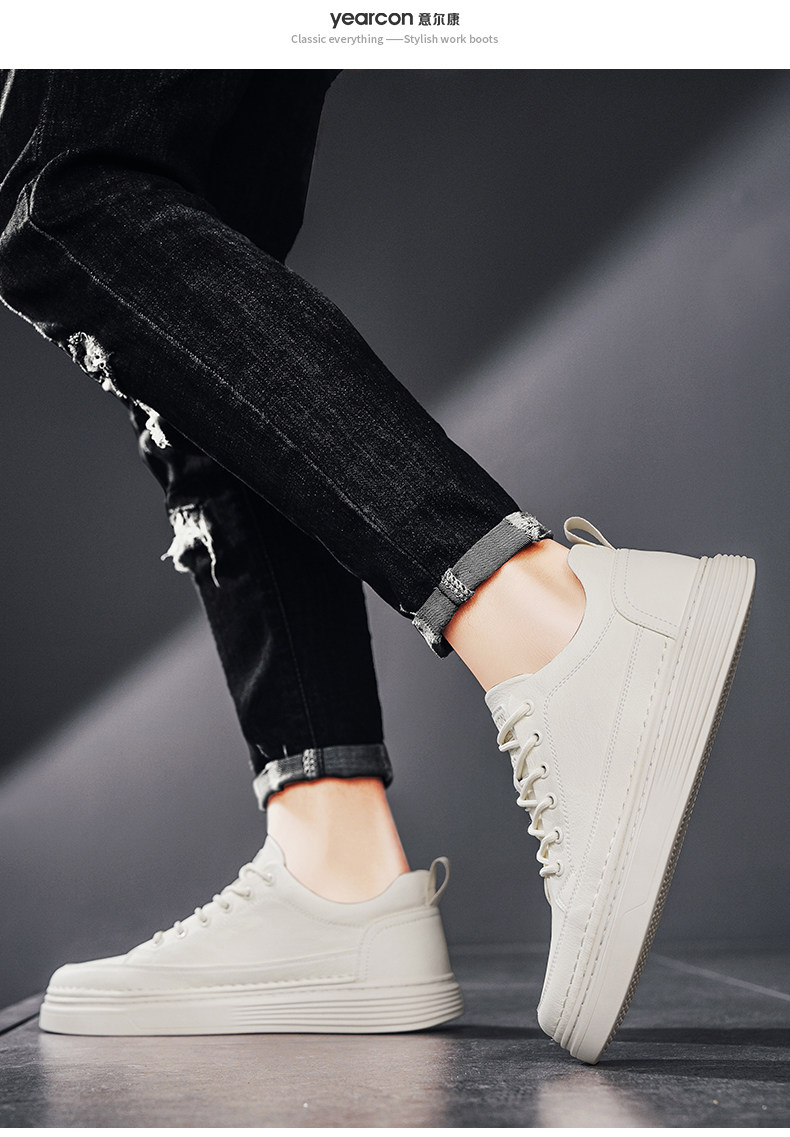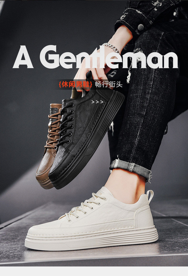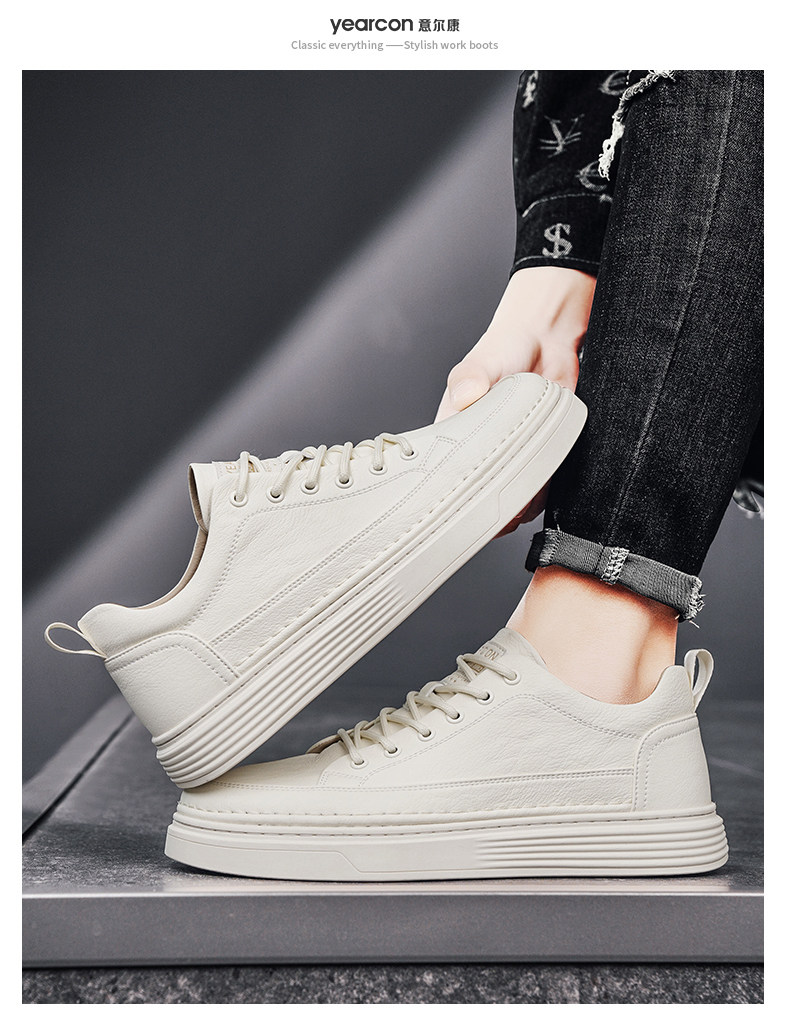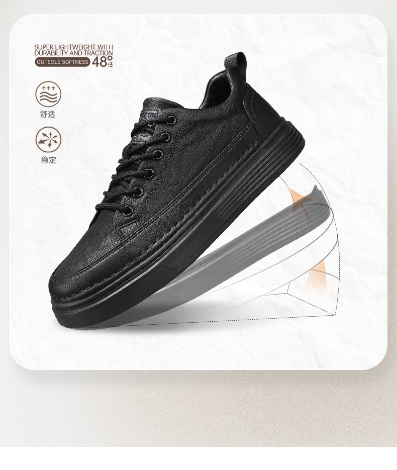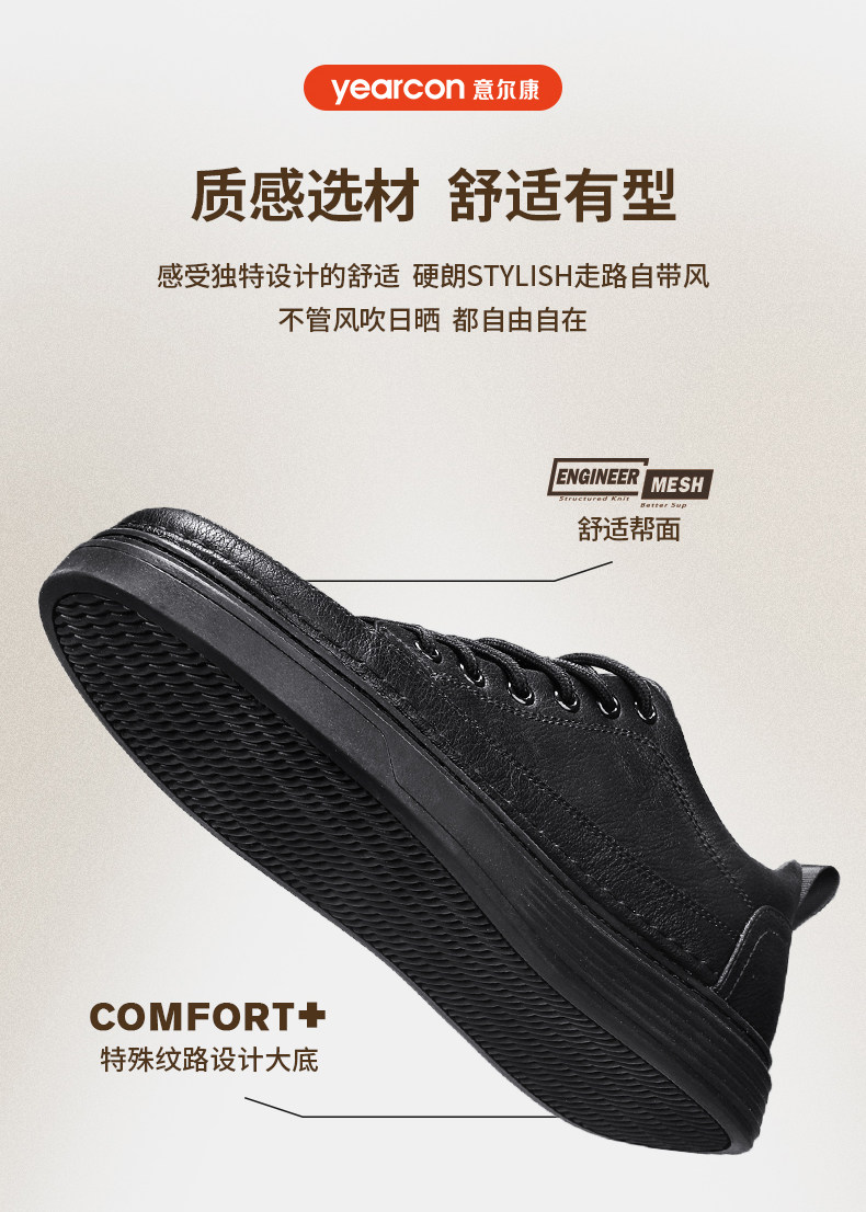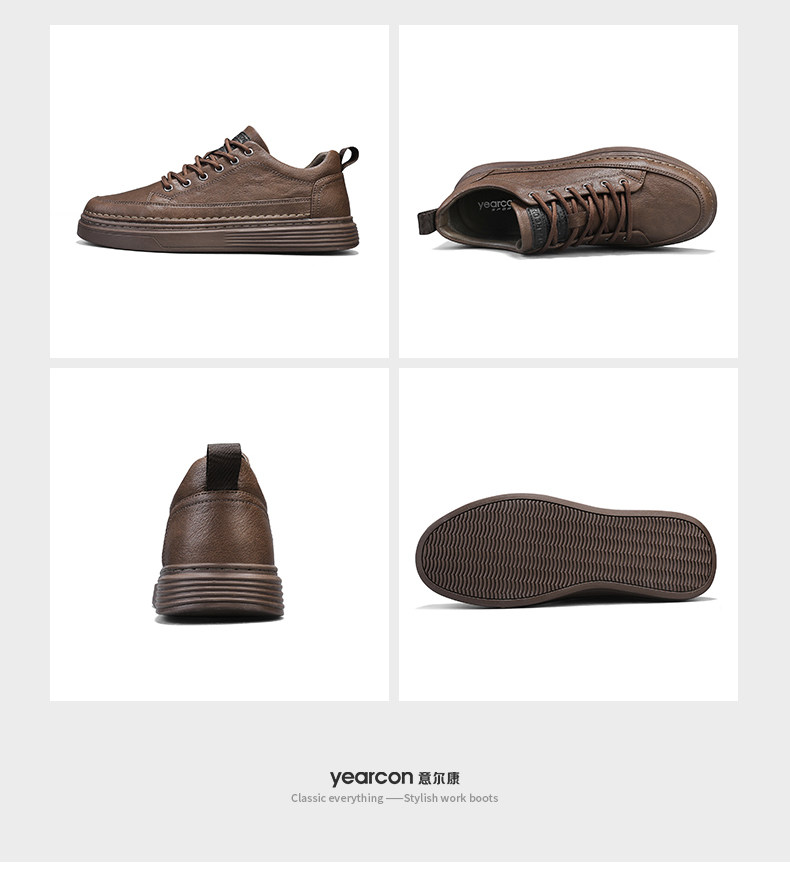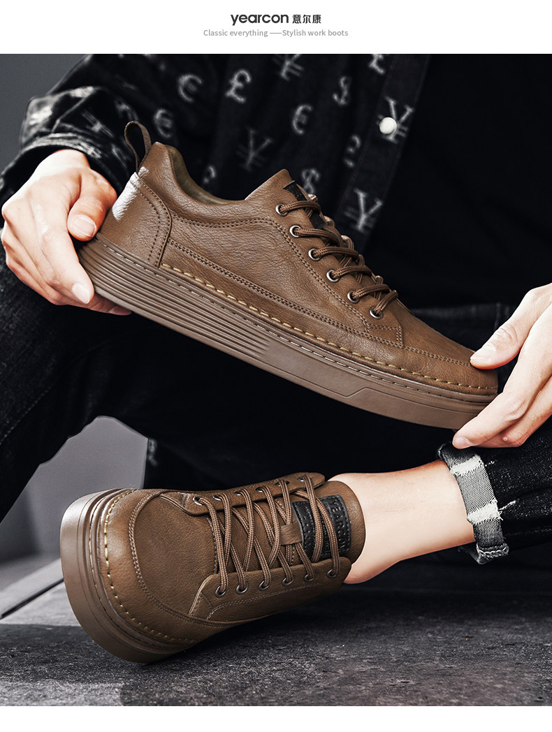 Yierkan Men's Shoes 2025 New Spring Black Casual Flat Shoes Men's Leather Shoes Waterproof Work Non-Slip Versatile