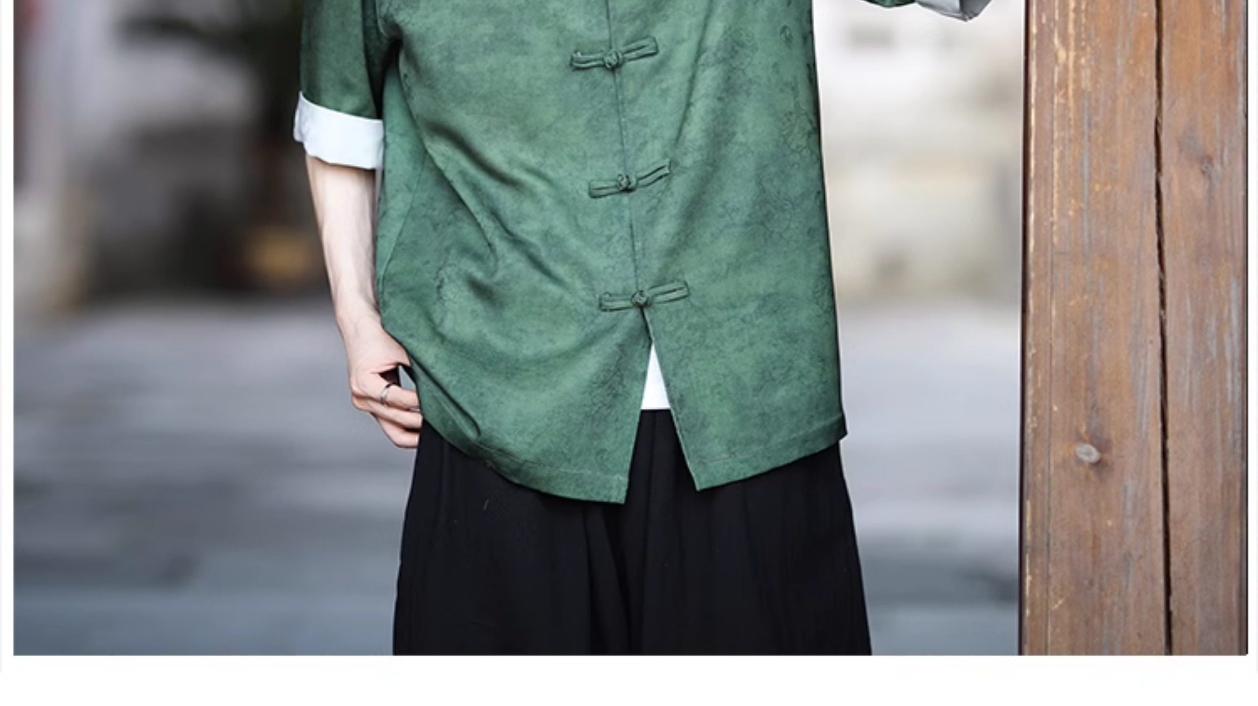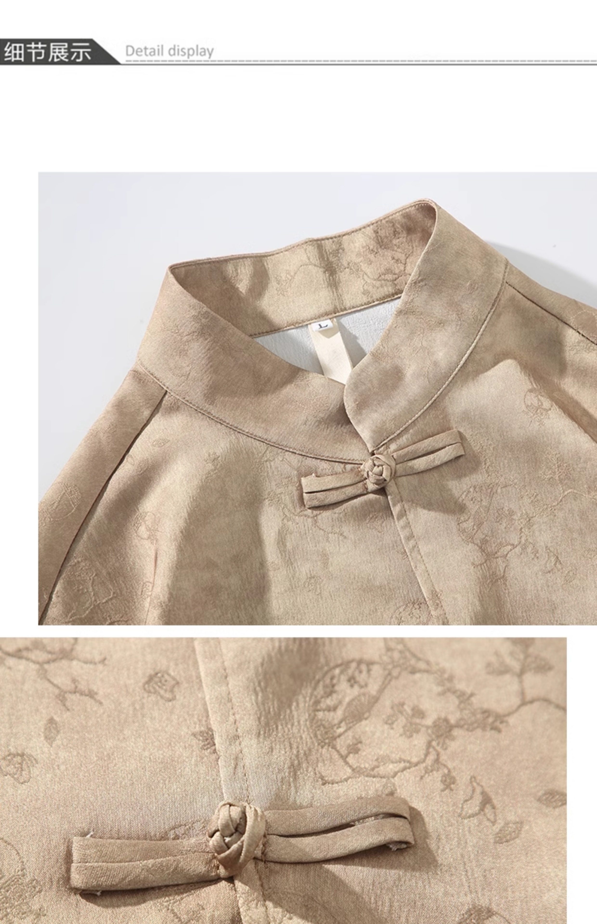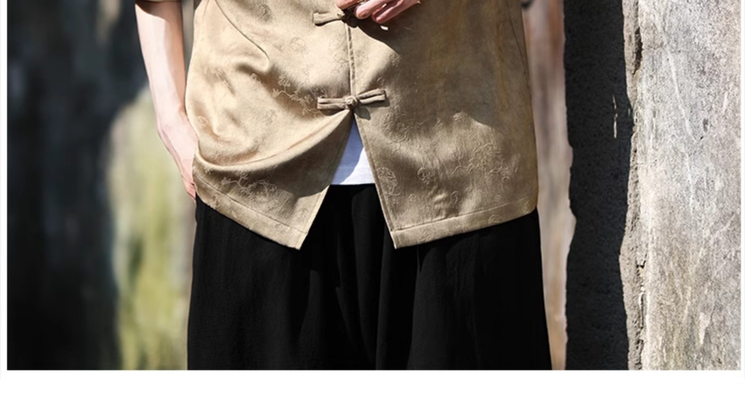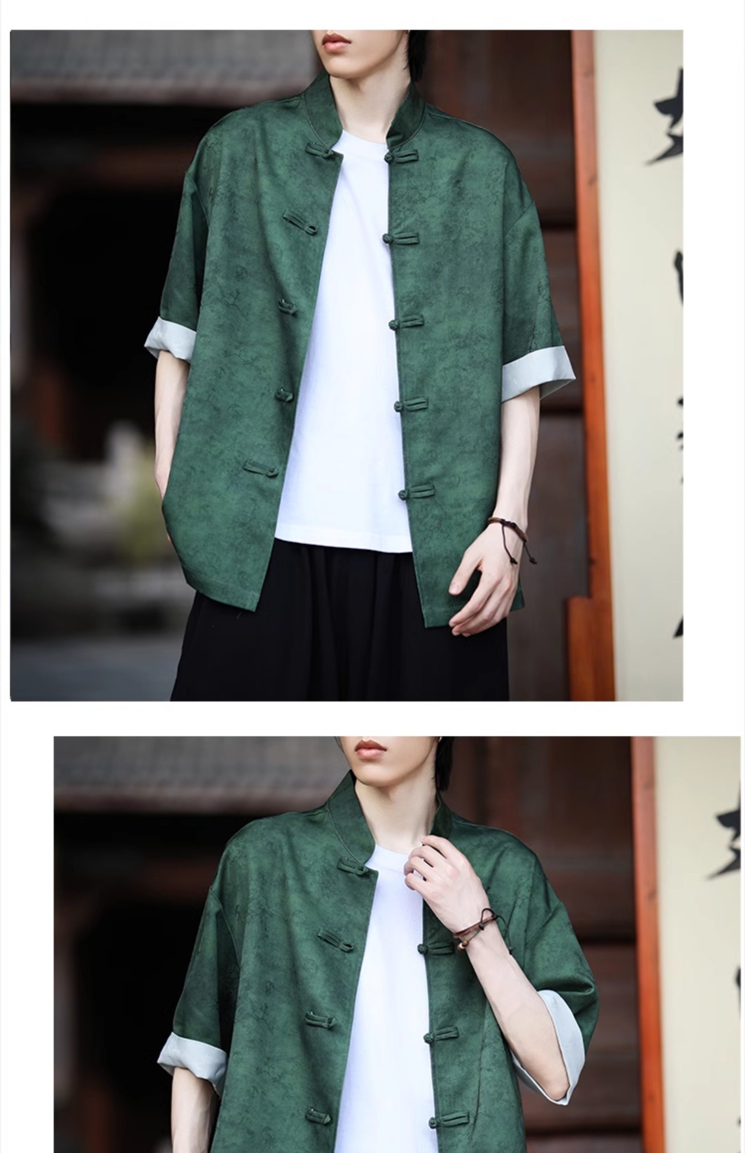 Chinese Style Men's Summer Thin Embossed Short-Sleeved Shirt, Retro Tang Suit with Stand Collar and Button Closure, Hanfu New Chinese Style Shirt