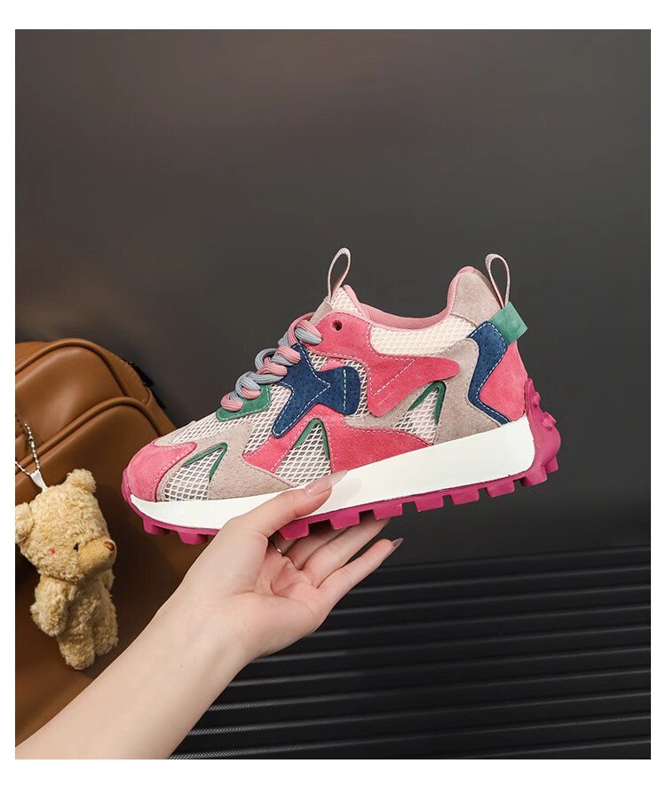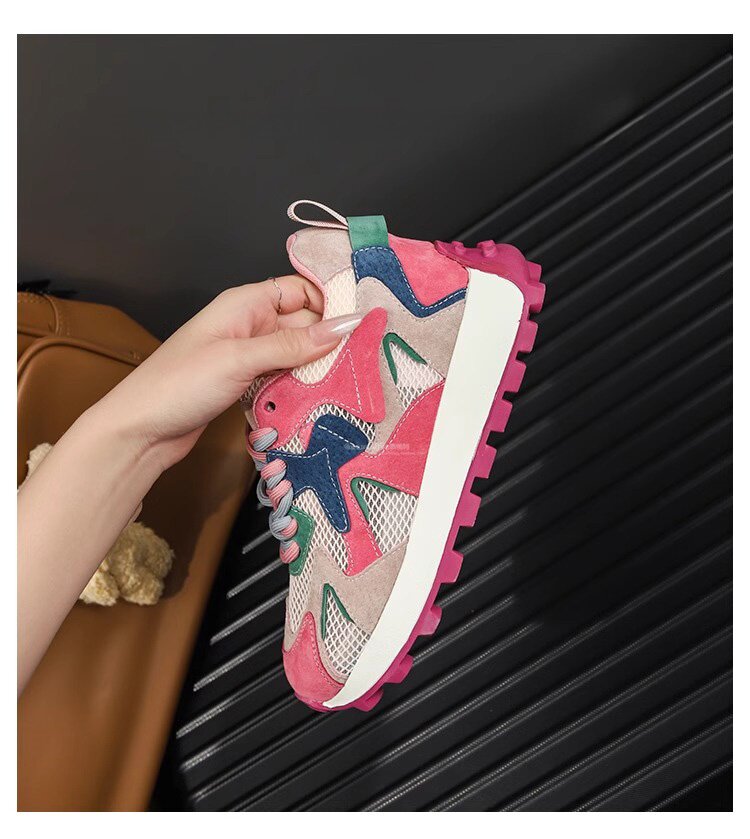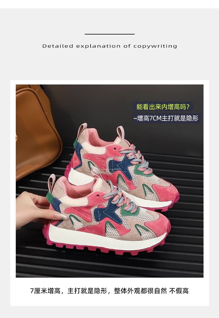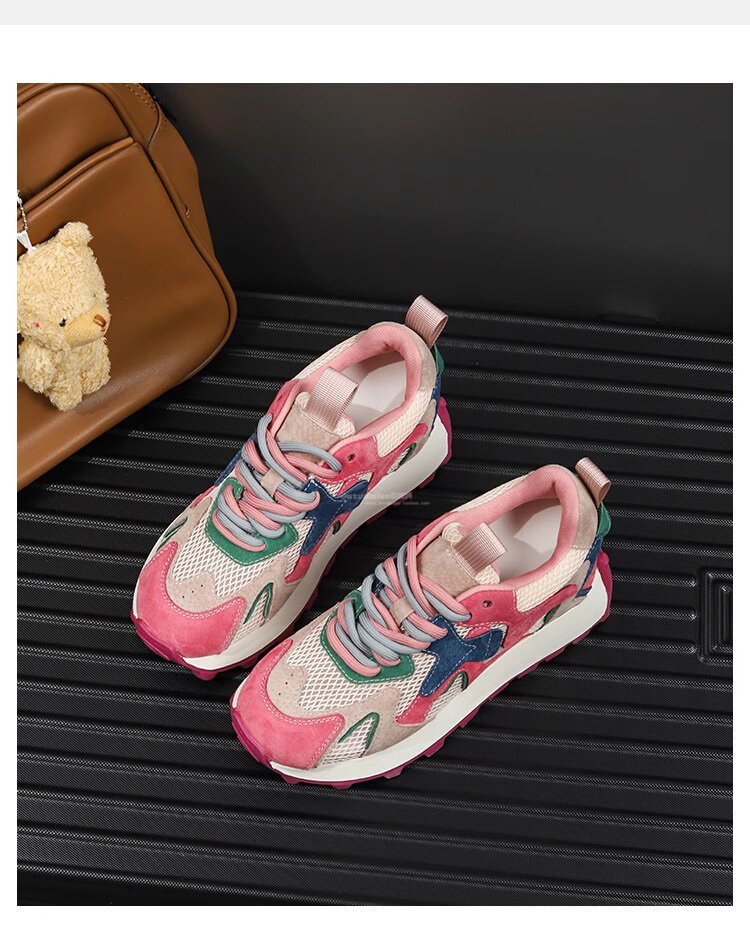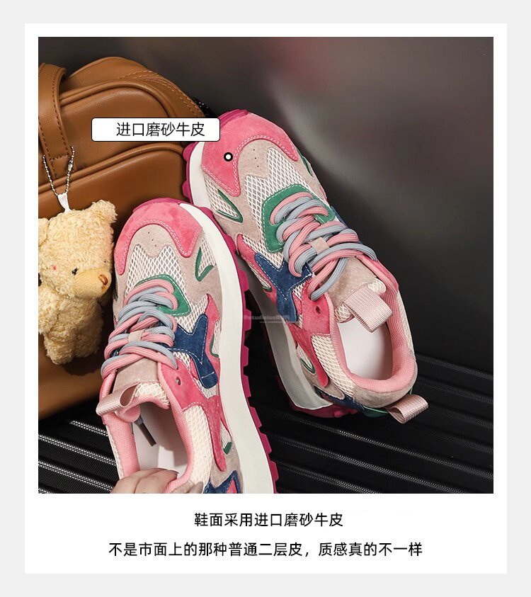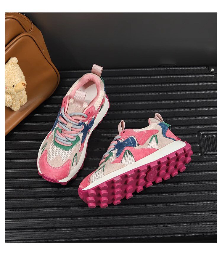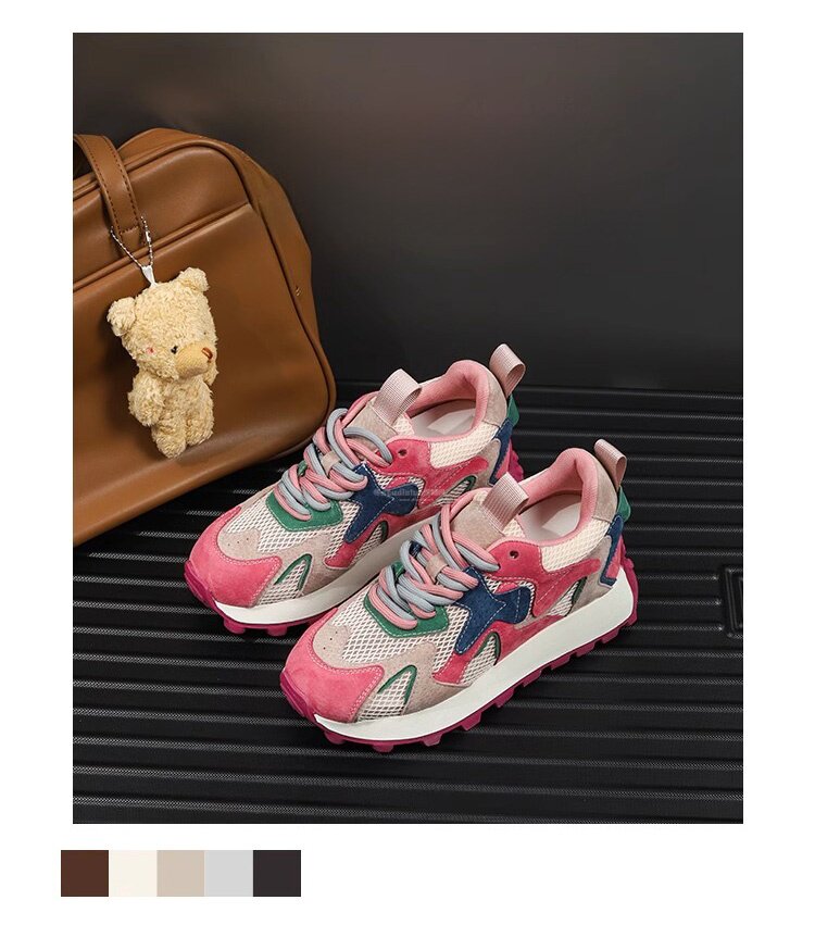Hong Kong Pink Casual Sneakers for Women 2026 New Spring and Autumn Mesh Dad Shoes with Thick Soles and Hidden Height Increase
