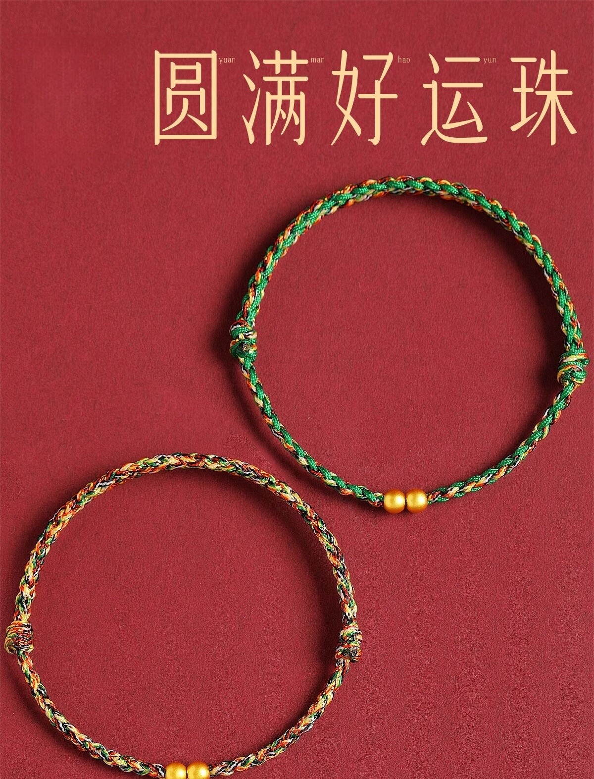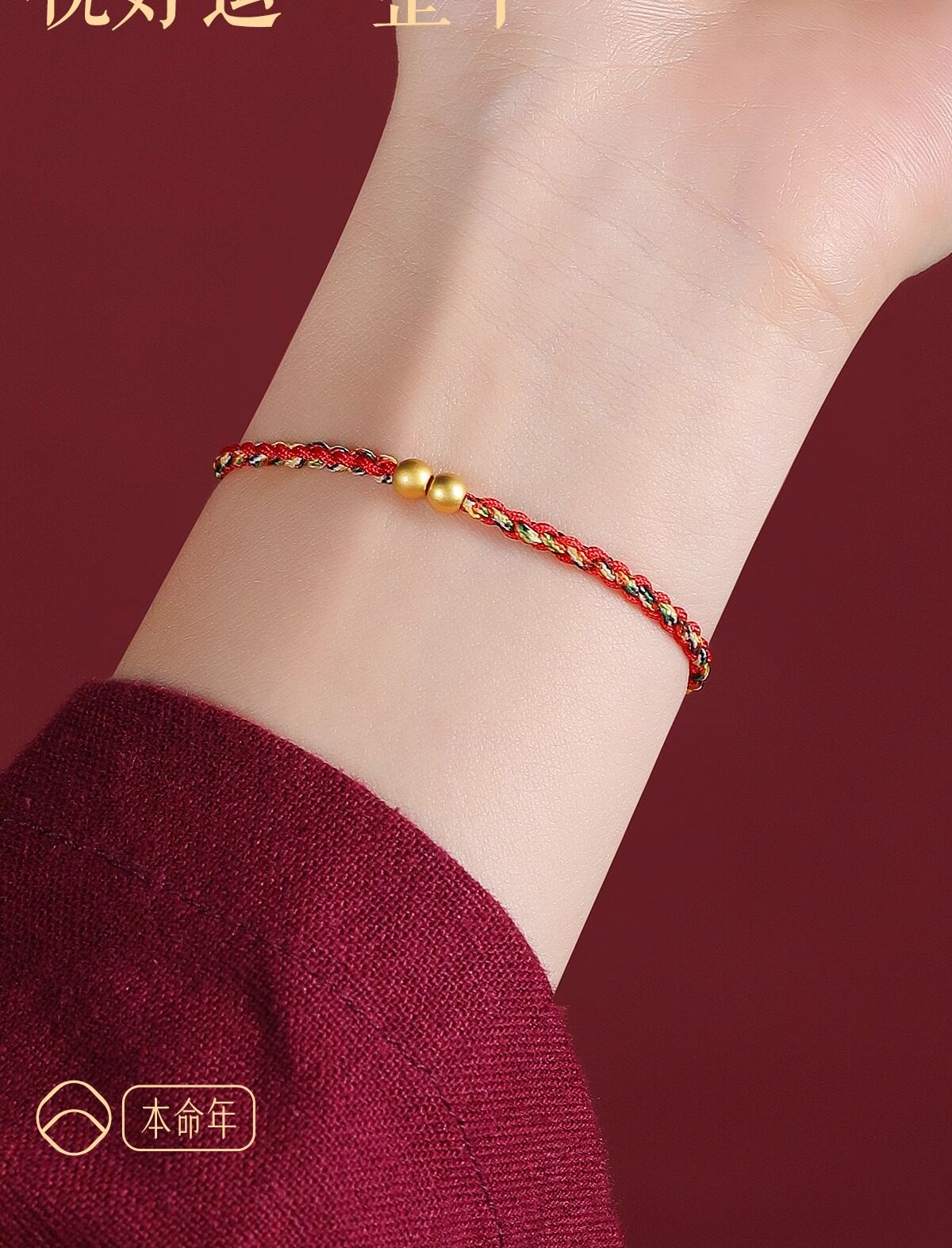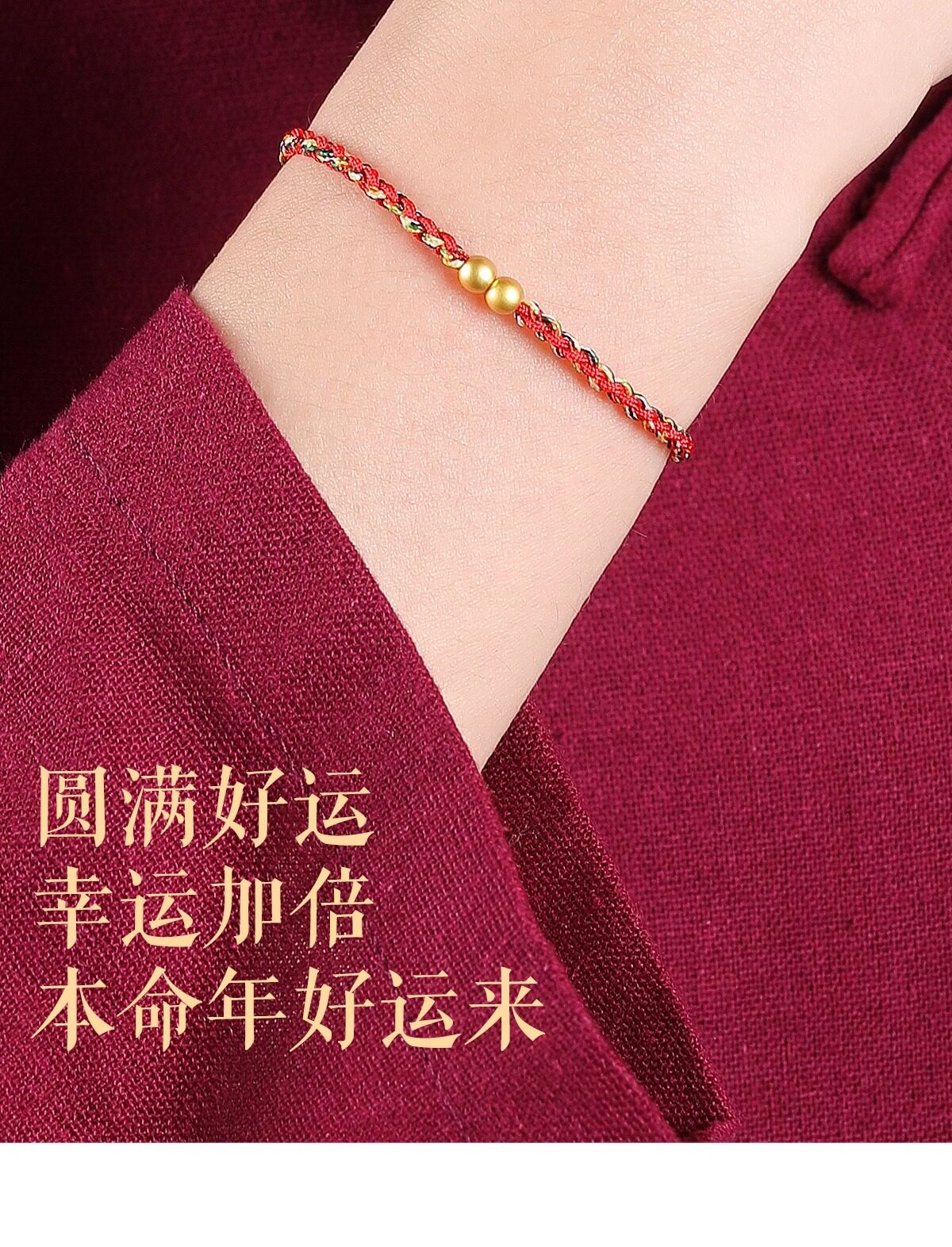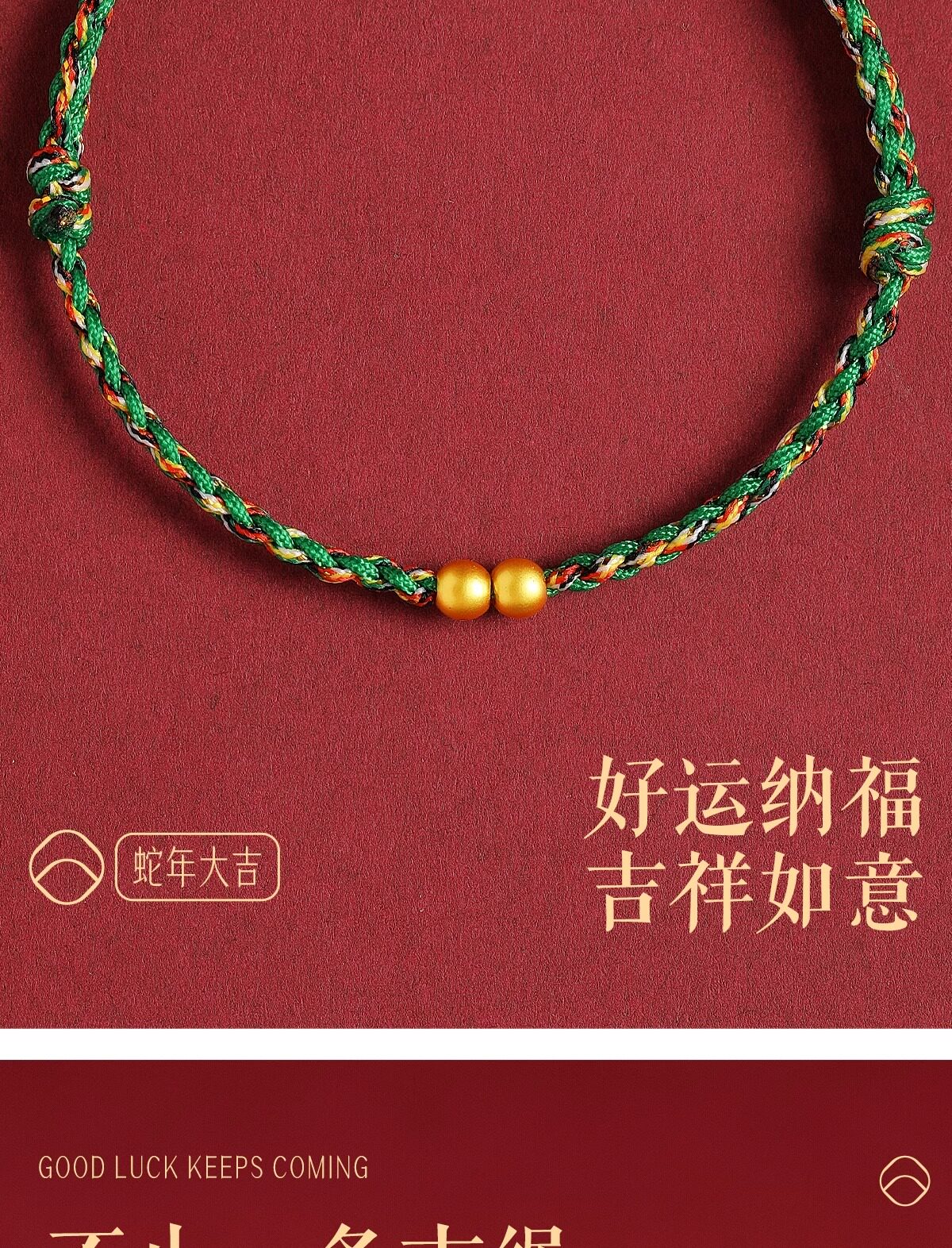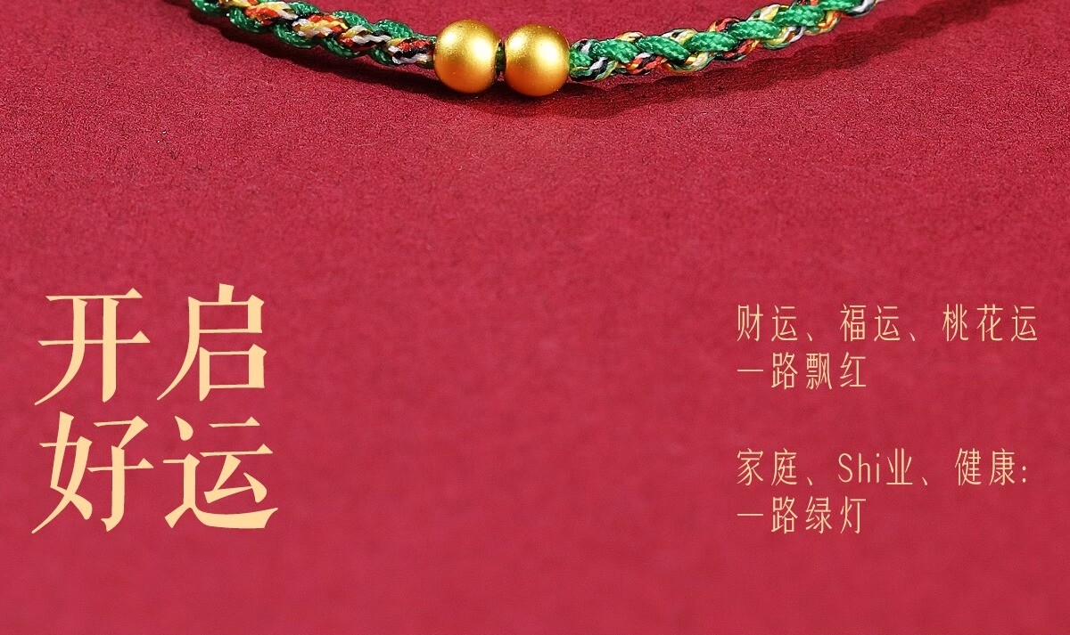 Putuo Mountain 2026 Year of the Horse 999 Pure Gold Red String Bracelet for Women with Gold Fortune Beads and Green Woven Cord